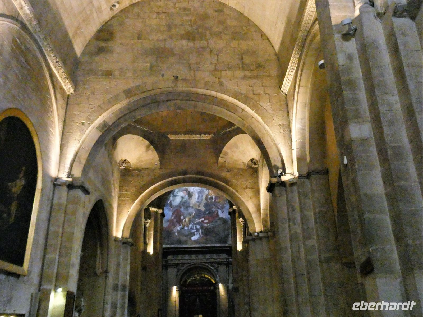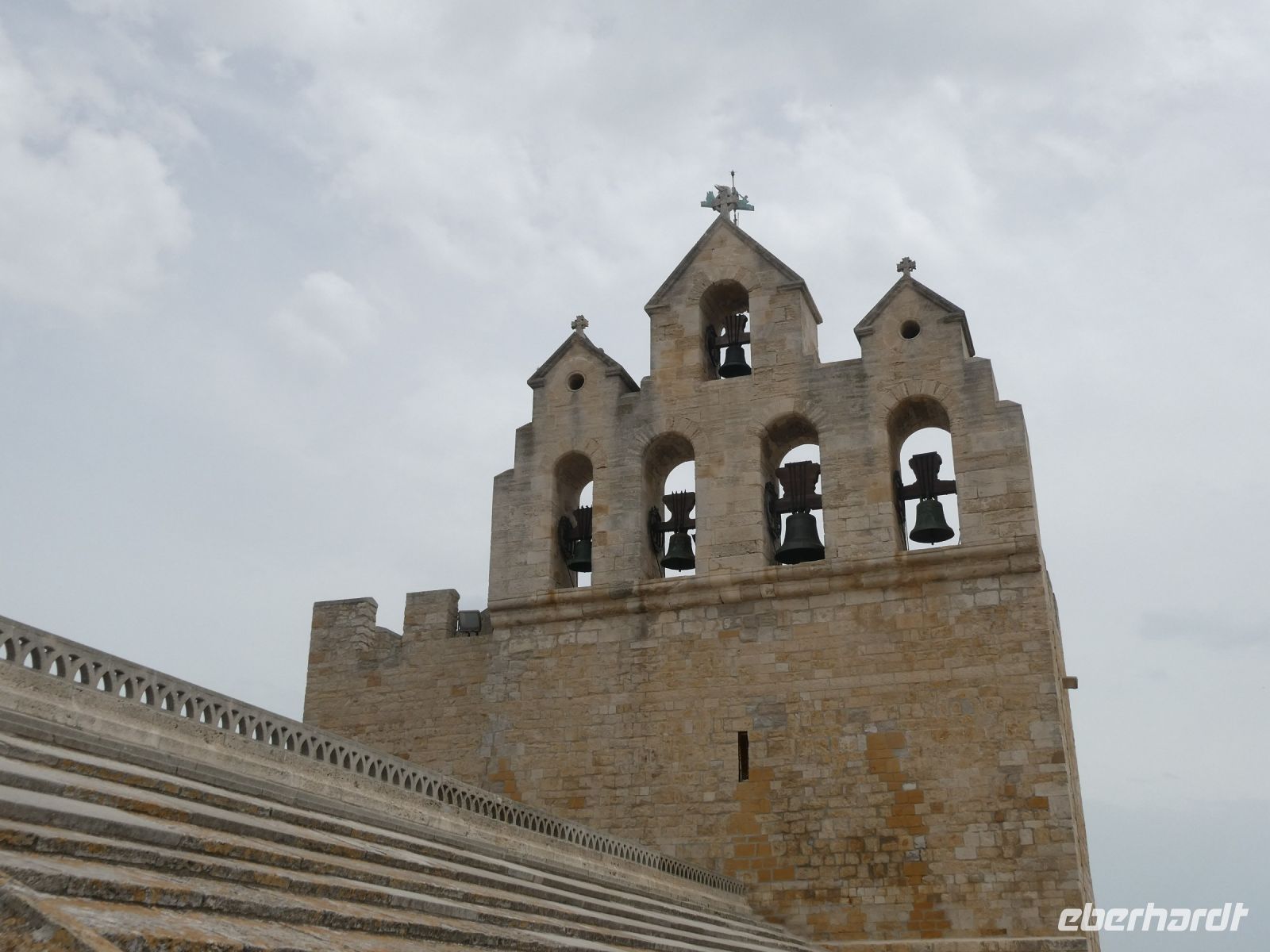 Nur auf das Dach werden wir im Moment nicht gelassen: Mittagspause! Also machen wir auch erst eine Mittagspause und treffen uns um 14.00 Uhr wieder um der Kirche auf das Dach zu steigen. Tatsächlich hat man von dort einen guten Überblick und schaut bis zum Meer. Von dort her kamen oft die sog. Sarazenen oder auch einfach nur Piraten.