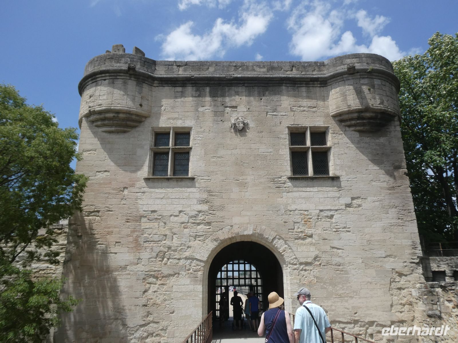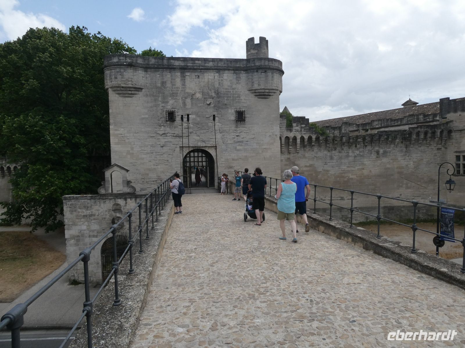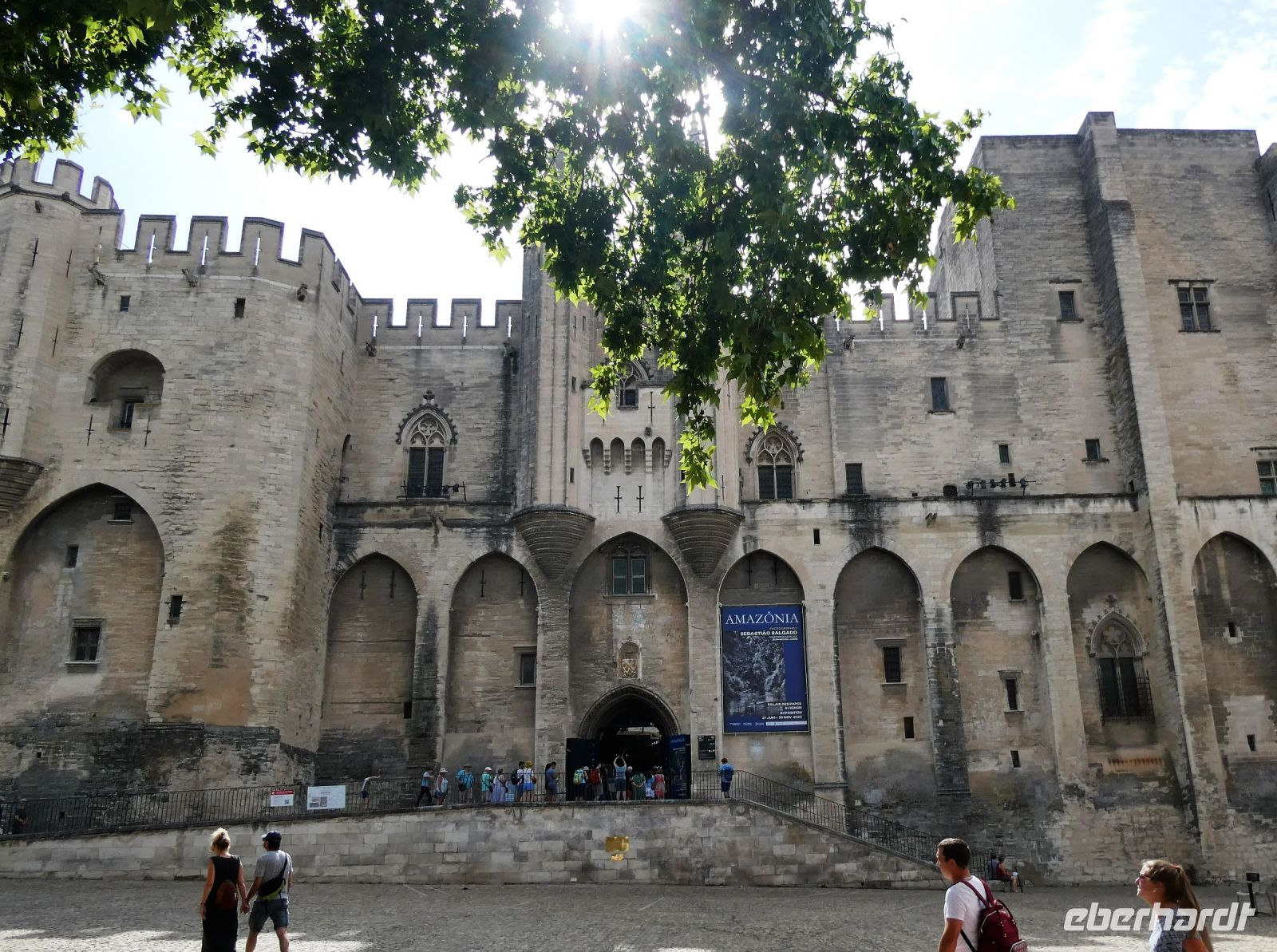 Heute gibt es ein Wiedersehen mit unserem Fahrer Thierry, der uns in die "Stadt der Päpste," nach "Avignon" bringt. Nach nicht allzu langer Fahrt lassen sich im Hintergrund schon die ersten Gebäude von Avignon ausmachen. Von weitem erblickt man den "Rocher-des-Domes" hoch erhoben über der mittelalterlichen Altstadt, die von einer komplett intakten Stadtmauer umgeben ist und die Brücke die "Pont d'Avignon" die wirklich jedes Schulkind in Europa kennt. Schnell sind wir am Parkplatz und nach einer technischen Pause am Eingang der "Pont-St-Benezet" laufen wir gemeinsam zum "Place d'Horloge", benannt nach der Uhr am Rathaus. Gina gibt uns eine Orientierung und erklärt, wie wir zur Markthalle kommen und die Hauptachse der Stadt. Auch zeigt sie uns den Abfahrtsort des "Petit Train" der die Reisenden die nicht so gut zu Fuß sind, für wenig Geld durch die Stadt fährt. Dann gehen wir gemeinsam zum Eingang des Papstpalastes, ein gotisches Bauwerk welches über ca. 70 Jahre die Residenz des Papstes war. 2 Päpste haben dem Palast besonders ihren Stempel aufgedrückt, bzw. ihn bauen lassen: Benedikt XII. und Clemens VI. Ihre Wohnräume können teilweise besichtigt werden. Der Palast galt besonders für Clemens VI. als Schutzschild gegen die "Pest", die im 14.Jahrhundert wütete. Kalt und unwirtlich wirken die dicken Mauern auf uns, oder muss es "unwirklich" heißen? Haben wir nicht unsere Lebenszeit gut gewählt? Auf diese Erkenntnis kommen wir ab und an während der Reise, allerdings mit im Moment einigen Fragezeichen im Gesicht, denn die Nachrichten über die Ukraine machen auch hier in Frankreich nicht vor uns halt.