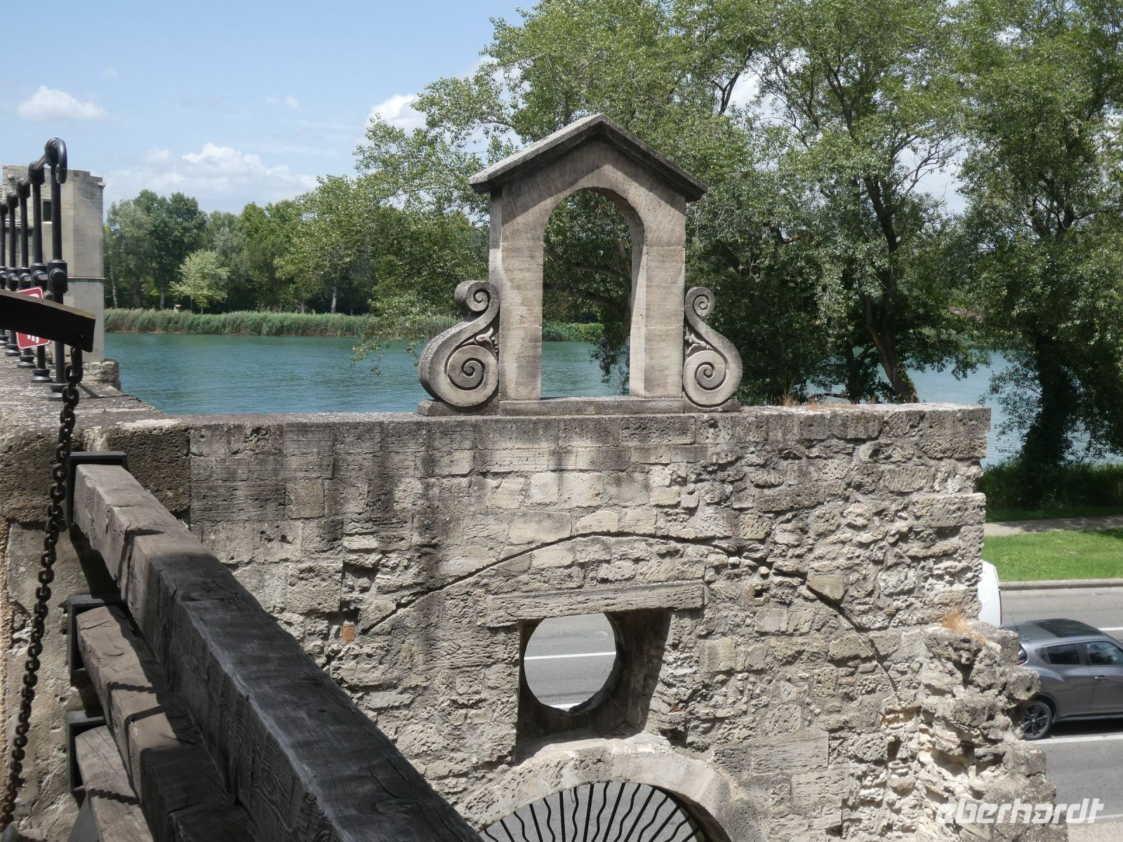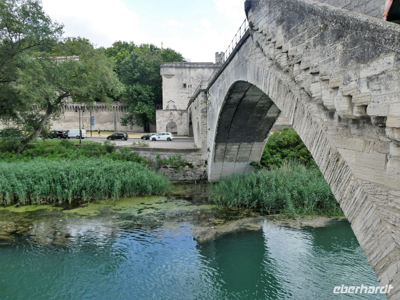 Die Sonne bleibt uns treu und wir vertreiben uns die Zeit indem wir durch die Gassen bummeln, zu Mittag essen oder die Markthalle besuchen. Viele kleine Geschäfte und auch ein kleiner Flohmarkt ziehen das Interesse an. Vor dem klassischen Theater sitzen "Molière" und "Corneille" zwei große französische Theaterautoren in Stein und blicken auf uns herab. Sie belächeln wahrscheinlich die teilweise ausufernden "Mobiltelefonien" der heutigen Zeit. War das schön, als man nur in das Theater ging! Dieses wird allerdings heute wieder ausgiebig genutzt, sei es für Theateraufführungen oder Veranstaltungen im Rahmen des Festivals, das in Avignon stattfindet. Bevor wir uns am Nachmittag wieder am Bus treffen, spazieren wir noch ein wenig über die ...."Brücke von Avignon" und erspähen von Ferne unseren Bus.