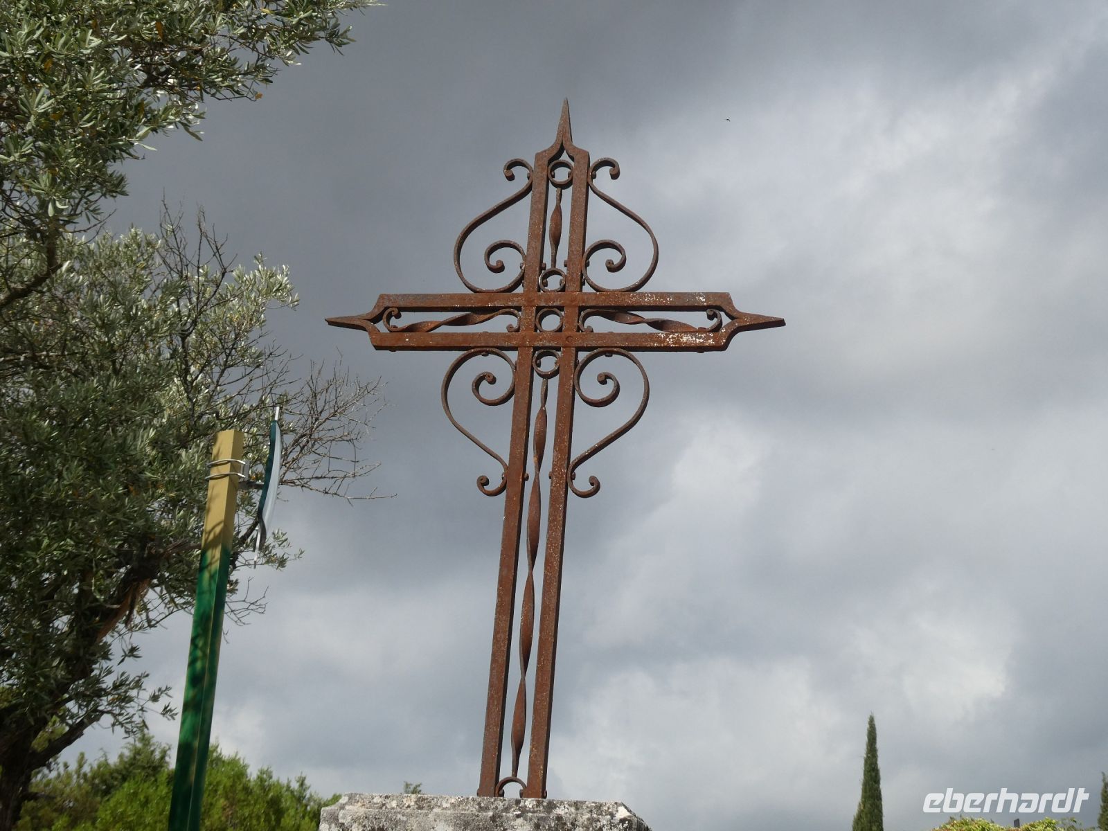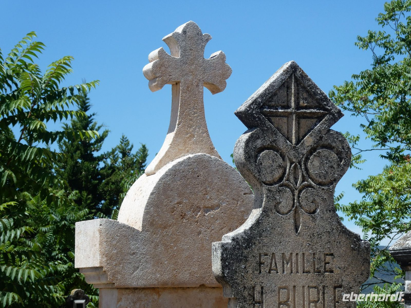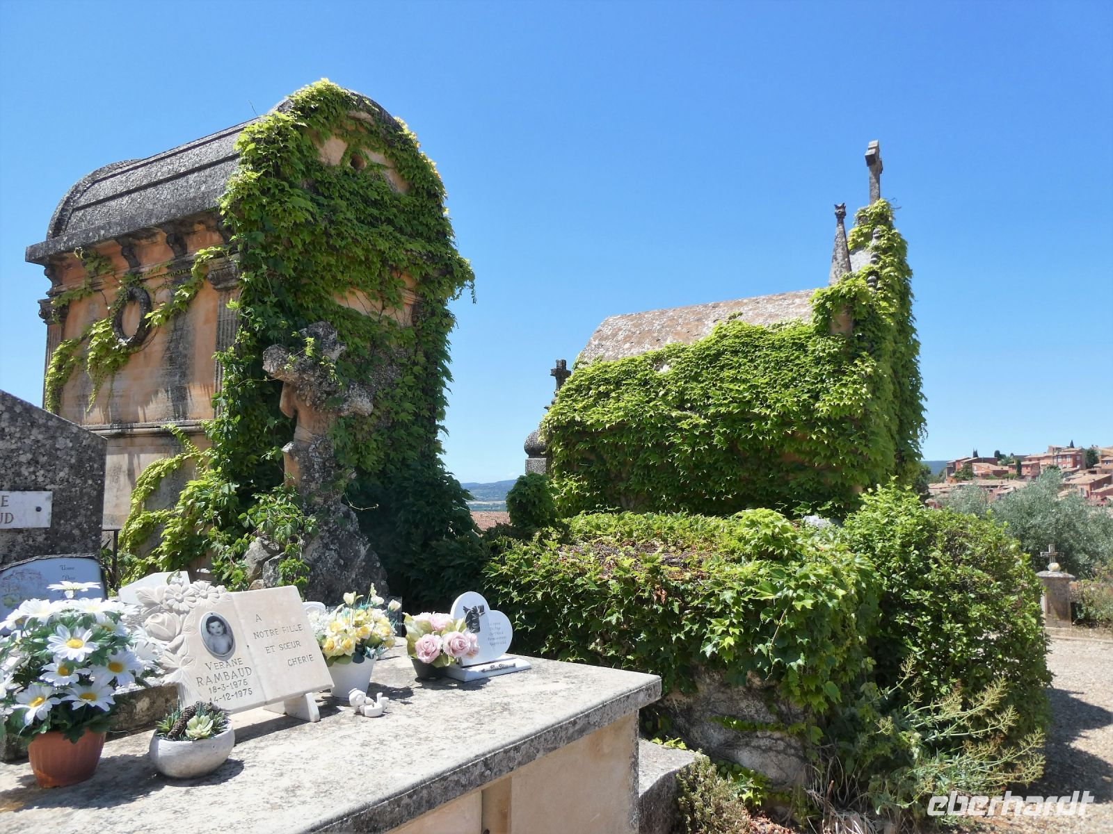 Das Örtchen "Roussillon" hat einen idyllischen Friedhof auf dem sich alte Grabsteine und Familiengräber befinden, ein Ort wie im Bilderbuch. Der Ort lebt heute vom Tourismus, von den Besuchern der "Ockersteinbrüche" und des sog. "Lehrpfades" es gibt aber auch zahlreiche Kunstgalerien die Werke schon bekannter Künstler zu angemessenen Preisen verkaufen. Das geht aber doch dann über das normale Reisebudget hinaus. Allerdings wecken einige der Kunstwerke schon Begehrlichkeiten. Schönheit und echte Kunst hat eben heute ihren Preis und so beschränken wir uns auf Schauen und das eine oder andere kleine Souvenir. Dann lernen wir noch eine andere Seite einer französischen Realität kennen: Unser Bus darf am Parkplatz wo er uns einsteigen lässt, nicht abfahren, da er zu genau dieser Zeit mit parkenden Elternautos besetzt ist, die ihre Kinder von der Schule abholen. Wir werden vom ansässigen Gendarmen genau beobachtet. Also bleiben wir noch 15 Minuten auf die es jetzt auch nicht mehr ankommt. Dann ist auf einmal alles leer und wir dürfen wegfahren!