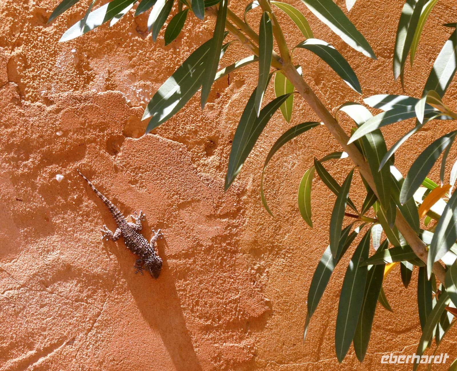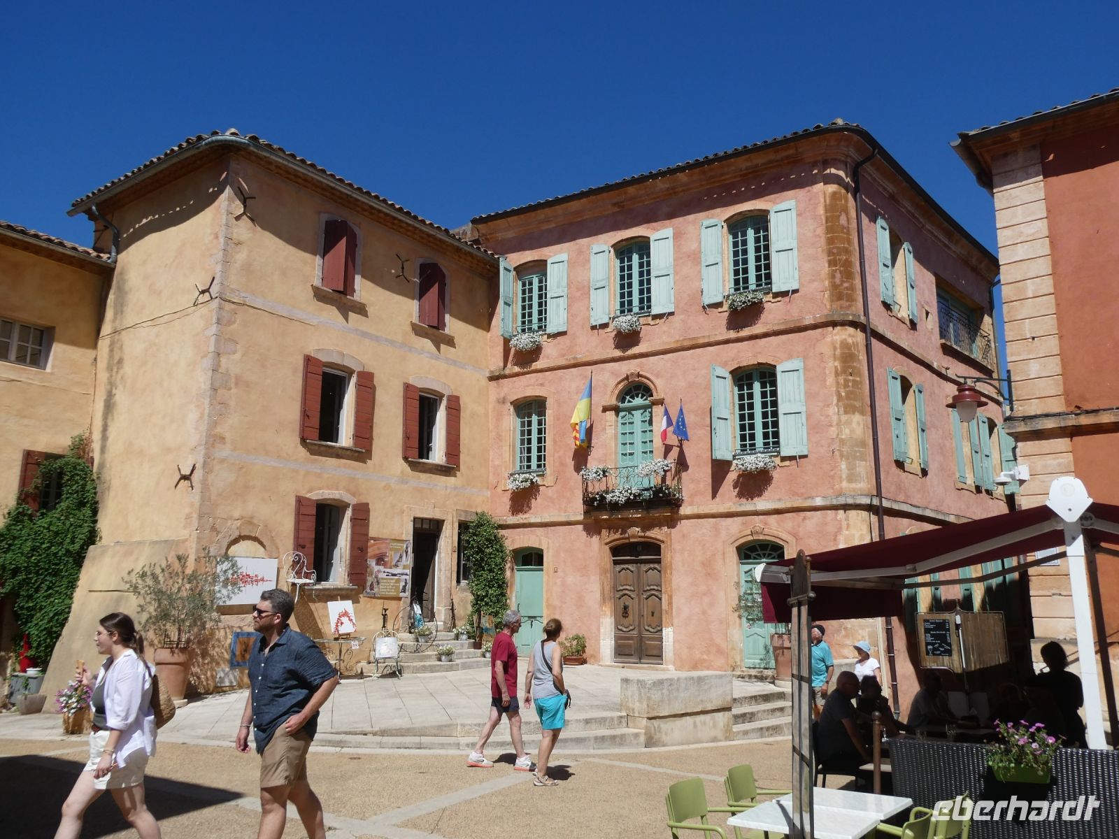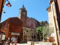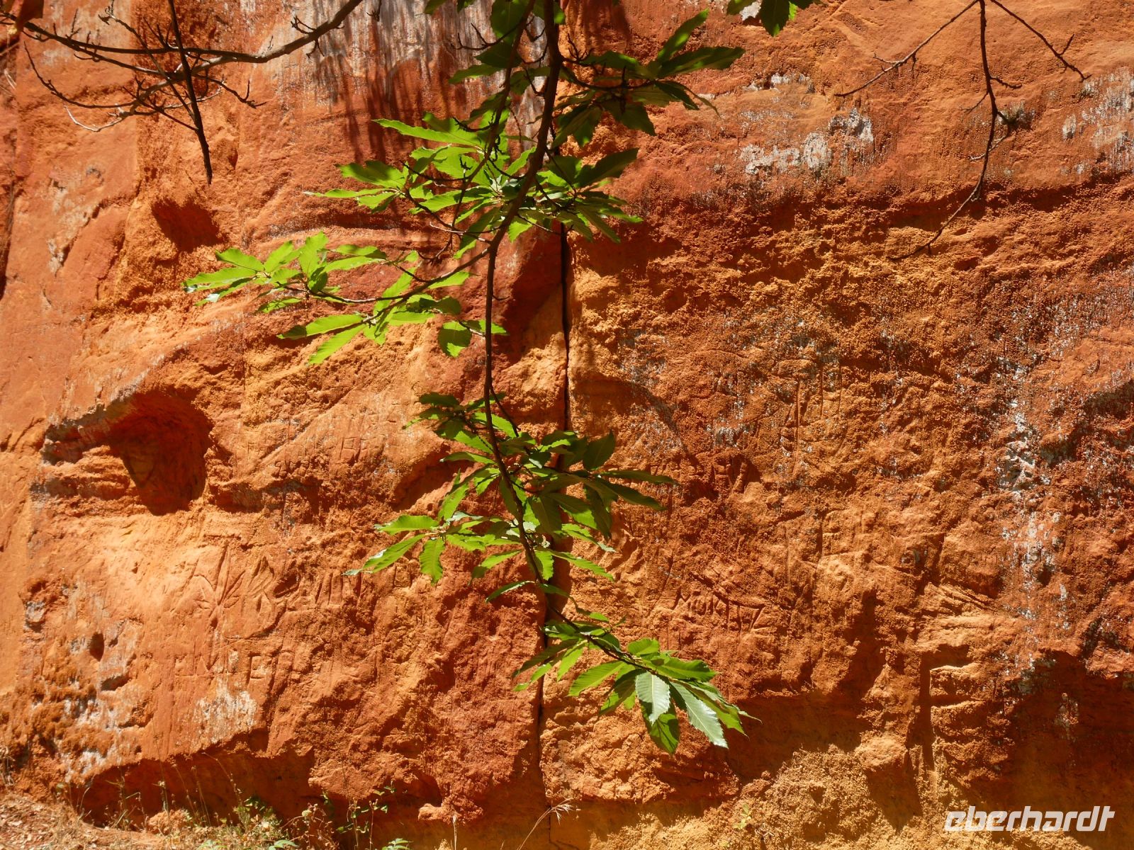 Danach aber geschieht ein Wunder. Waren wir doch ziemlich unsicher bezüglich des "Ockerwanderweges" in Roussillon, der bei Starkregen nicht zu begehen ist. Der Himmel verändert seine Farbe in Richtung Blau und als wir in Roussillon ankommen könnte er blauer nicht sein. Die Bedingungen zum Spazieren gehen sind sogar besser als sonst, bleibt einem doch der rote Feinstaub erspart, der sonst die Kleider bepudert und in alle Ritzen dringt.