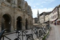 Weiter geht es zur sehr gut erhaltenen Arena von Arles. Auf dem Weg dorthin kommen wir an dem Stadtviertel in dem früher die Familien der sog. Guardiens wohnten vorbei. Guardiens werden die provencalischen Cowboys genannt, die die Rinderherden der Camargue hüteten und auch heute noch für sie zuständig sind.