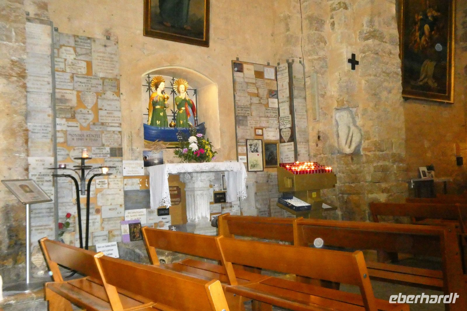 Tatsächlich hat man nach einem steilen Aufstieg über eine Wendeltreppe von dort einen guten Überblick und schaut bis zum Meer. Von dort her kamen oft die sog. Sarazenen oder auch einfach nur Piraten.