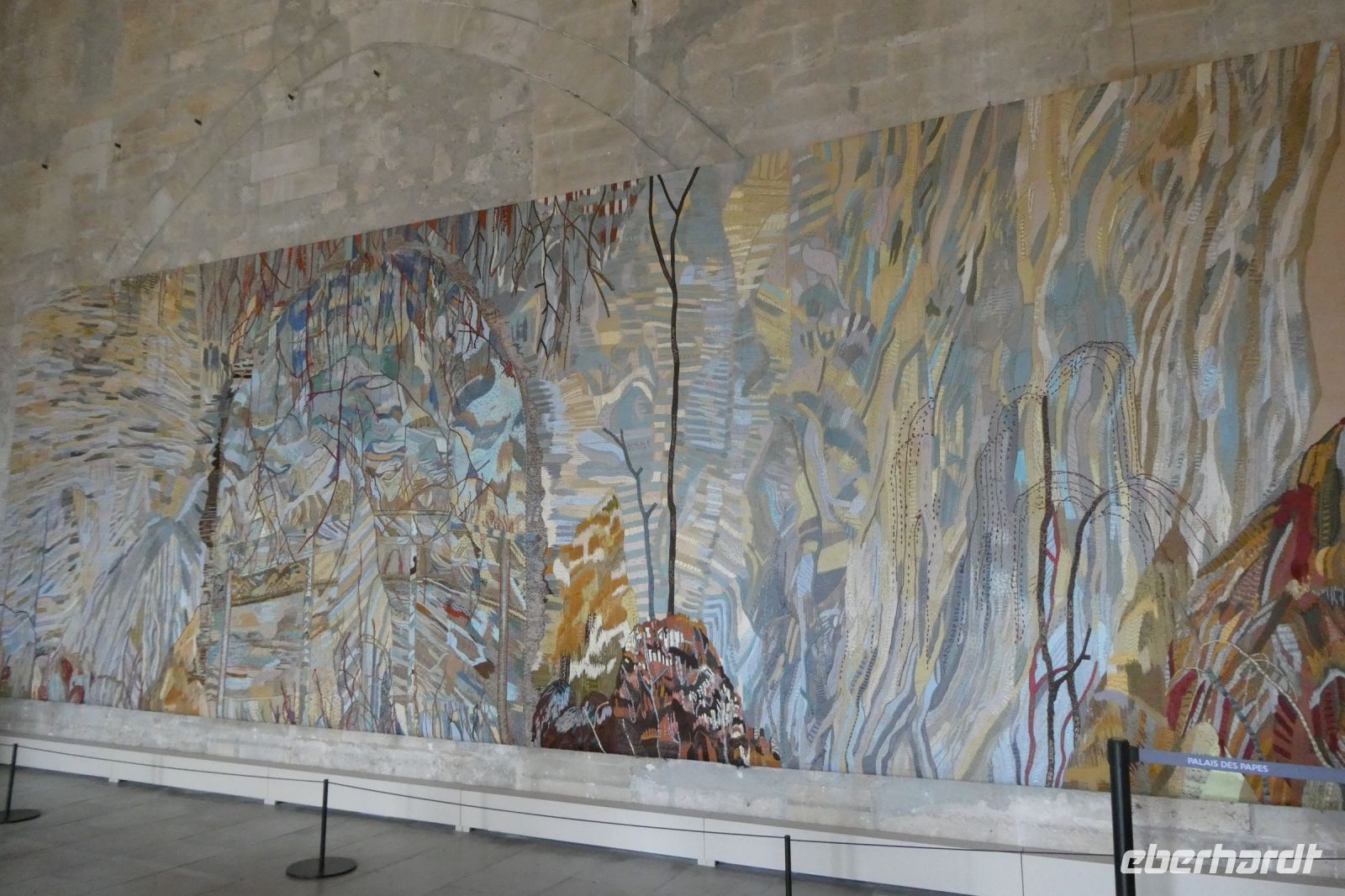 Das Wetter ist heute etwas feuchter. Schnell sind wir am Parkplatz und wir laufen erst einmal gemeinsam zum Eingang des Papstpalastes um das Zeit-Fenster für die Besichtigung einzuhalten. Der Palast ist eines der wichtigsten gotischen Bauwerke Europas und war über ca. 70 Jahre die Residenz des Papstes. 2 Päpste haben dem Palast besonders ihren Stempel aufgedrückt, bzw. ihn bauen lassen: Benedikt XII. und Clemens VI. Ihre Wohnräume können wir teilweise besichtigt. Der Palast galt besonders für Clemens VI. als Schutzschild gegen die "Pest", die im 14.Jahrhundert wütete. Kalt und unwirtlich wirken die dicken Mauern auf uns, oder muss es "unwirklich" heißen?