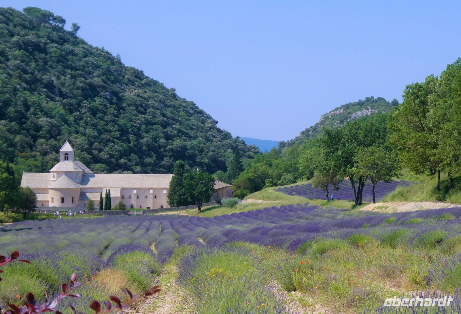 Im Kloster Senanque, einem Zisterzienserkloster welches im 12.Jahrhundert gegründet wurde, ahnt man die klösterliche Strenge anhand der schlichten und geraden Architektur. Eine Besichtigung ist nur im Rahmen einer Führung möglich und so beschränken wir uns auf Fotos und natürlich auf einen Besuch des fast blühenden riesigen Lavendelfeldes und dem Klostershop. Dort gibt es Lavendelseife, Kräuter und Produkte diverser Klöster zu kaufen.