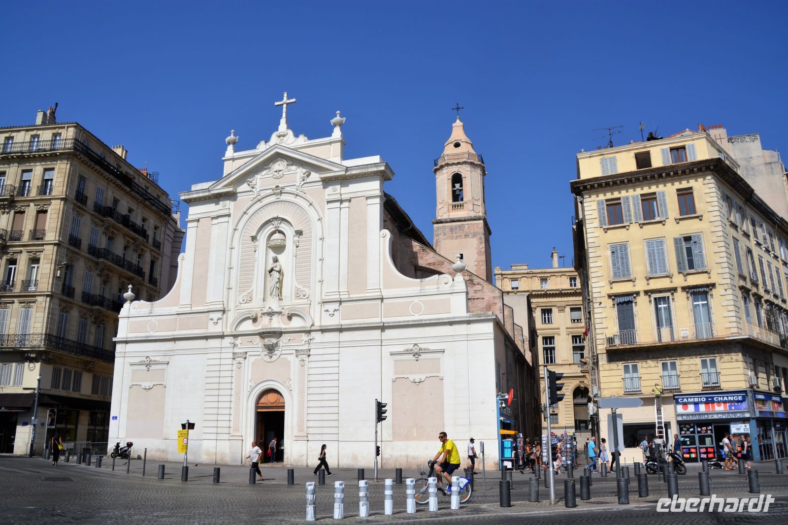 Dadurch verzögert sich unsere Abfahrt ein wenig. Trotzdem sind wir rechtzeitig in Marseille und treffen unsere Stadtführerin Nathalie. Vorbei am Haus von Corbusier der hier in Marseille seine Wohnideen verwirklichen konnte fahren wir entlang des Ufers in Richtung Stadtzentrum und hinauf zum Aussichtpunkt der Kirche St.Saveur. Wir müssen noch etliche Stufen nach oben zu diesem Wahrzeichen Marseilles steigen, welches im 19.Jahrhundert im neobyzantinischen Stil erbaut wurde.