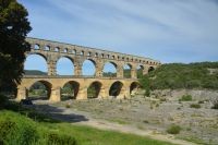 Weiter fahren wir zu einem der wohl berühmtesten römischen Bauwerke der Provence, zur "Pont-du-Gard". Auf dem Weg dorthin überrascht uns ein Wolkenbruch. Na das kann ja heiter werden. So kommen wir nicht trockenen Fußes zur Brücke, die Teil einer 50 km langen Wasserleitung war welche von Uzès bis nach Nimes führte. Sie ist eines der wichtigsten erhaltenen Brückenbauwerke der antiken Welt. Aus konservatorischen Gründen ist heutzutage das Begehen verboten, was nicht verwundert angesichts der Menschenmassen die sich jedes Jahr hierher bewegen.