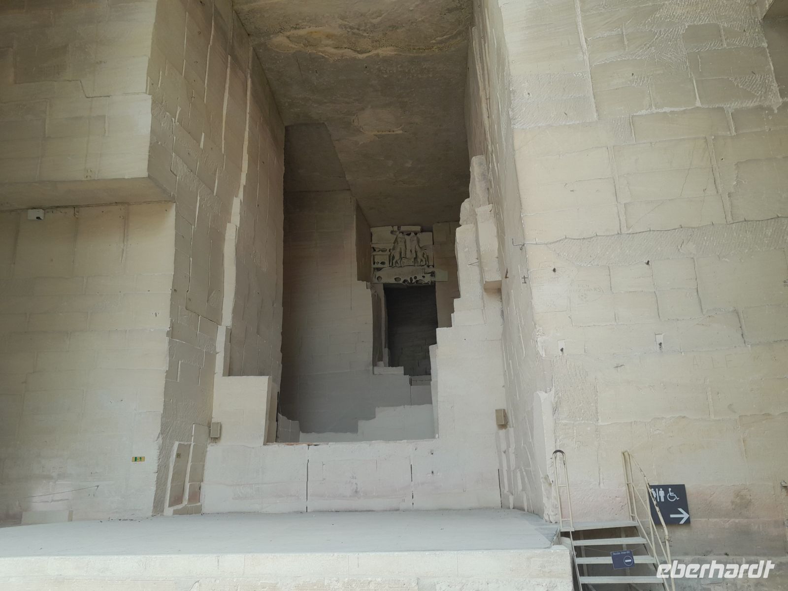 Nur schwer reißen wir uns los aber bei "Les-Baux de-Provence" sind für eine besondere Vorführung in den ehemaligen Bauxit-Steinbrüchen Eintrittskarten für uns gebucht. Hier werden Multimediashows zu verschiedenen Themen angeboten. Man überlegte einst, was man mit verlassenen Steinbrüchen anfangen könnte und ersann diese Idee. Es existiert in Frankreich eine besondere Neigung zu Lichtspektakeln und es gibt eine gewisse Offenheit für die multimediale Welt.