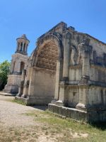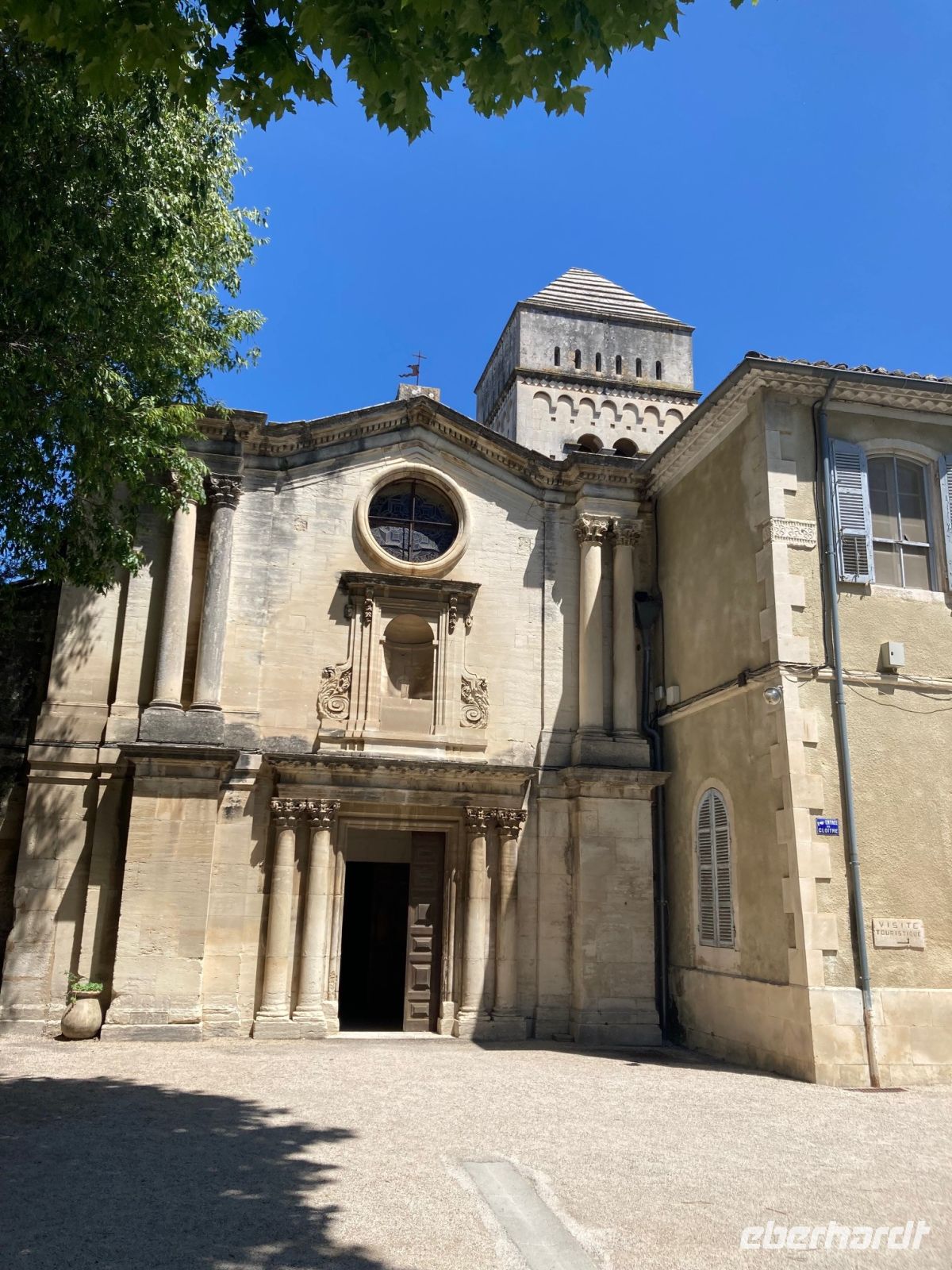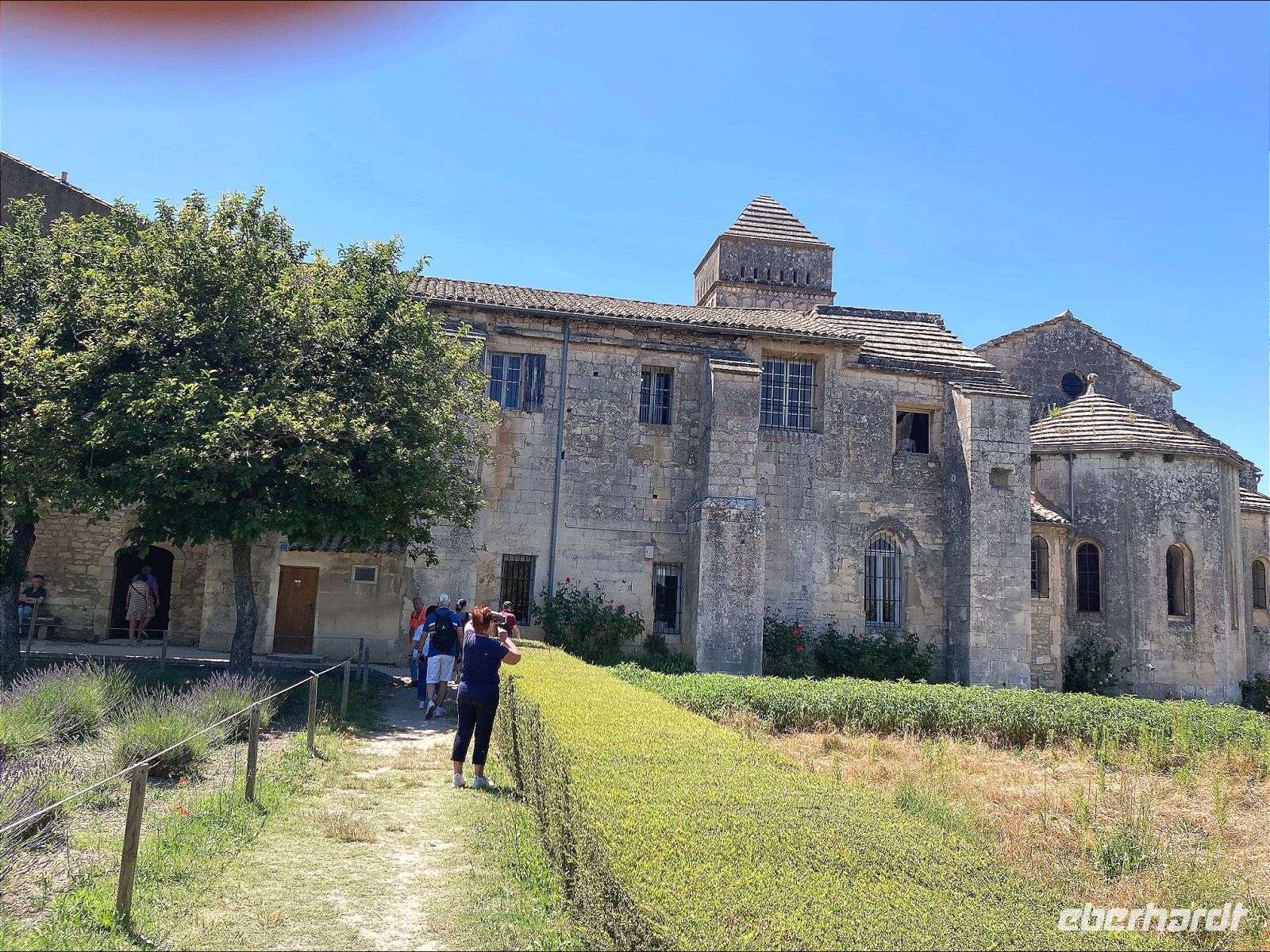 Nach der Mittagspause besteigen wir den Bus von David, unserem Fahrer für die nächsten fünf Tage, und tuckern nach St. Remy. Dort beschließen wir unsere Antikenschau mit der Besichtigung des Kenotaphs der Augustusenkel und des kleinen Triumphbogens, ehe wir unsere Van Gogh-Studien fortsetzen und uns in die nahe gelegene Nervenklinik von St Paul de Mausole begeben, in die sich der sensible Künstler selbst eingewiesen hat. Wir sehen seine beiden Zimmer, aber auch Arzt- und Behandlungsräume sowie den schönen Klostergarten.