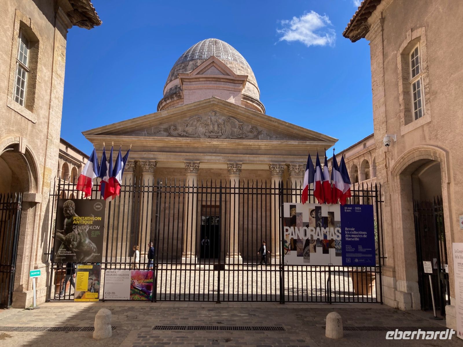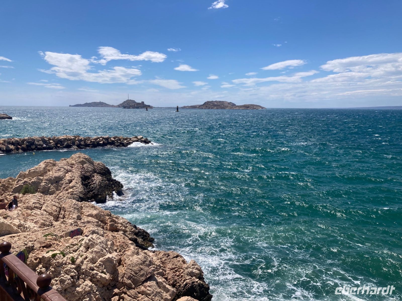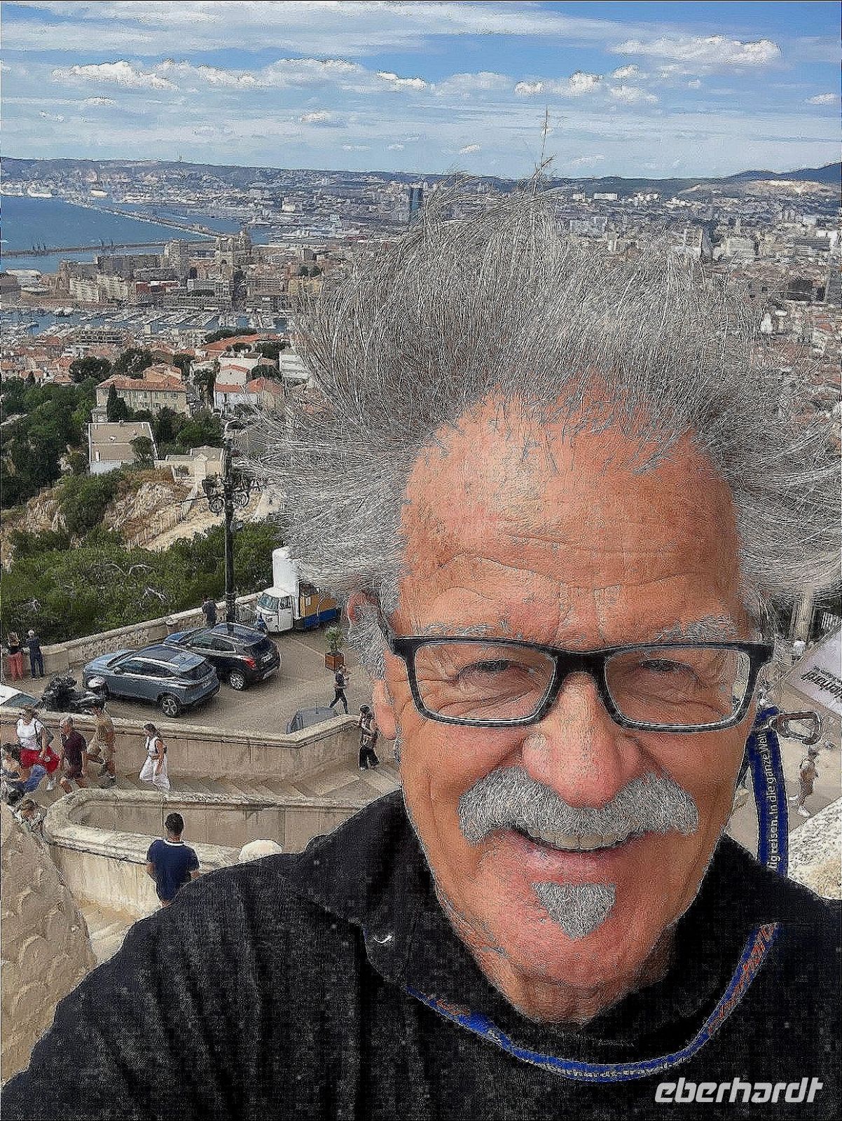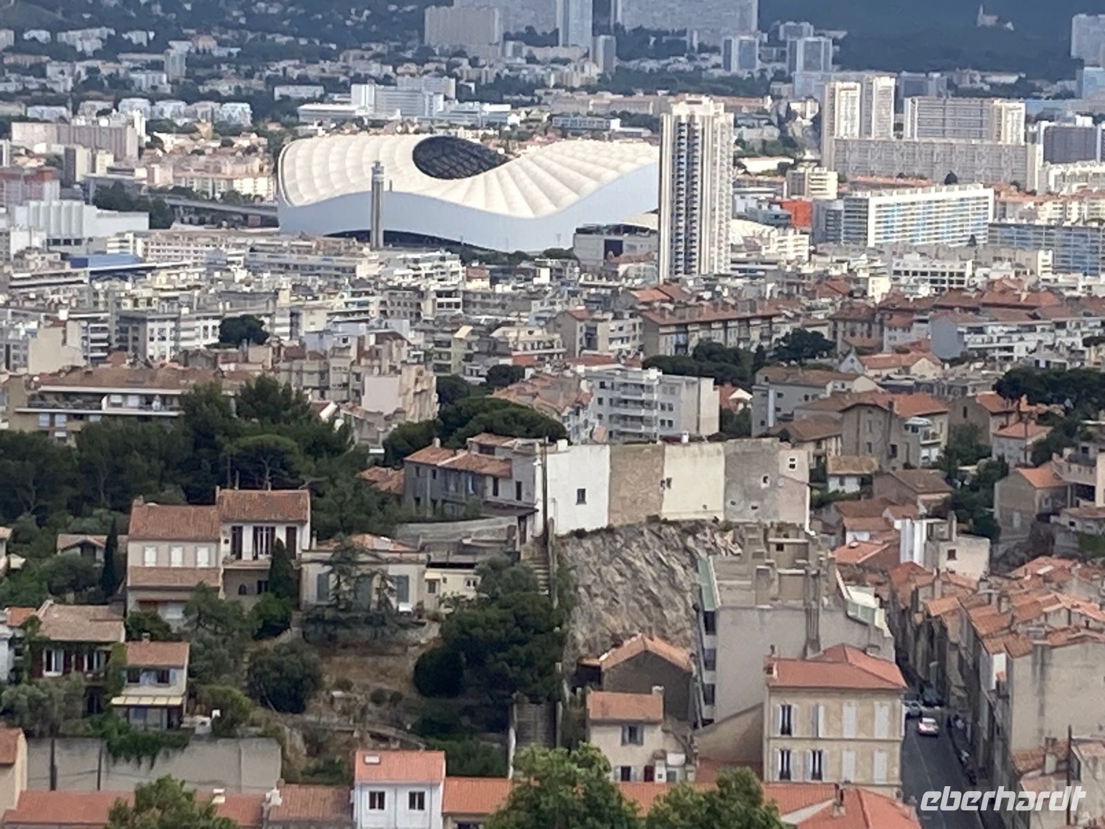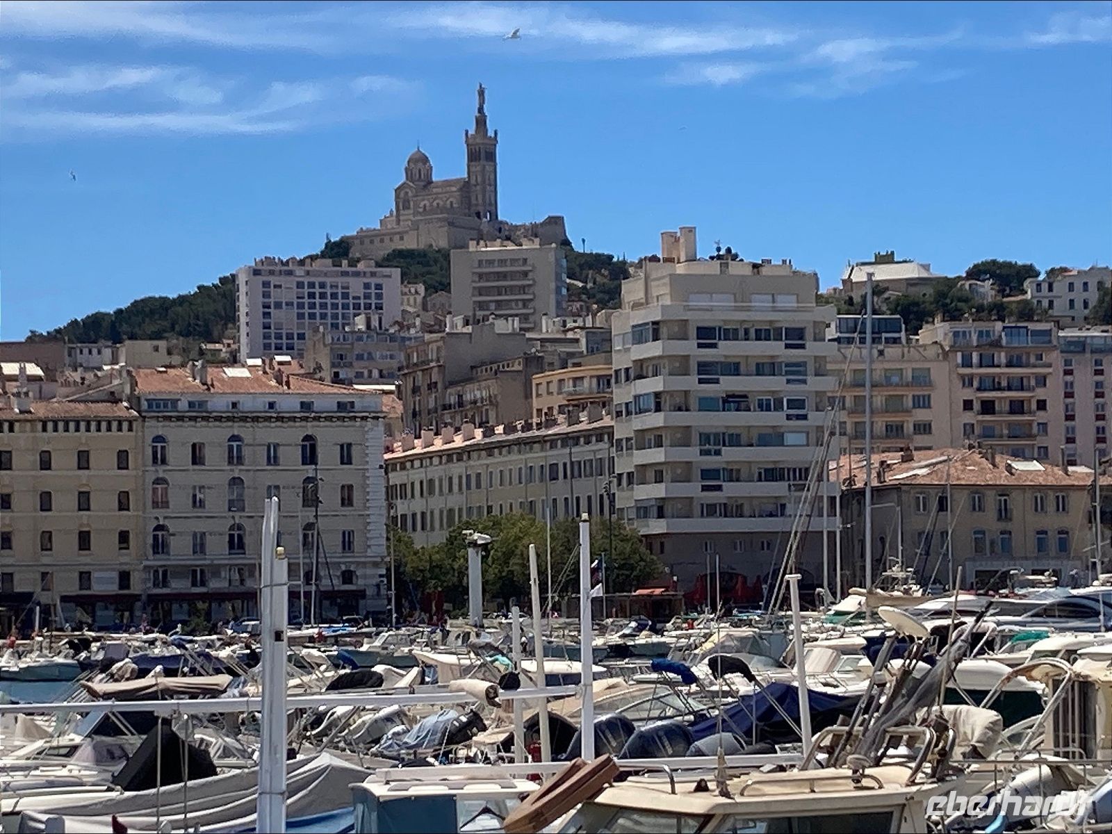 Danach geht es per Bus, gesteuert von Fabrice, unserem neuen Busfahrer, nach Marseille, wo wir auf unsere örtliche Reiseleiterin Natalie treffen, die uns ihre Stadt zeigt. Vor allem Fabrice ist es zu verdanken, dass diese Rundfahrt zu einem harmonischen Erlebnis gerät, da er sein tonnenschweres Fahrzeug gekonnt durch kleine Gassen hoch zur imposant gelegenen Kathedrale Notre Dame bugsiert und uns so geld- und zeitraubende Momente erspart. So können wir den phantastischen Ausblick nach allen Seiten genießen, wenn auch die Frisur durch den inzwischen sehr kräftigen Mistral etwas leidet.