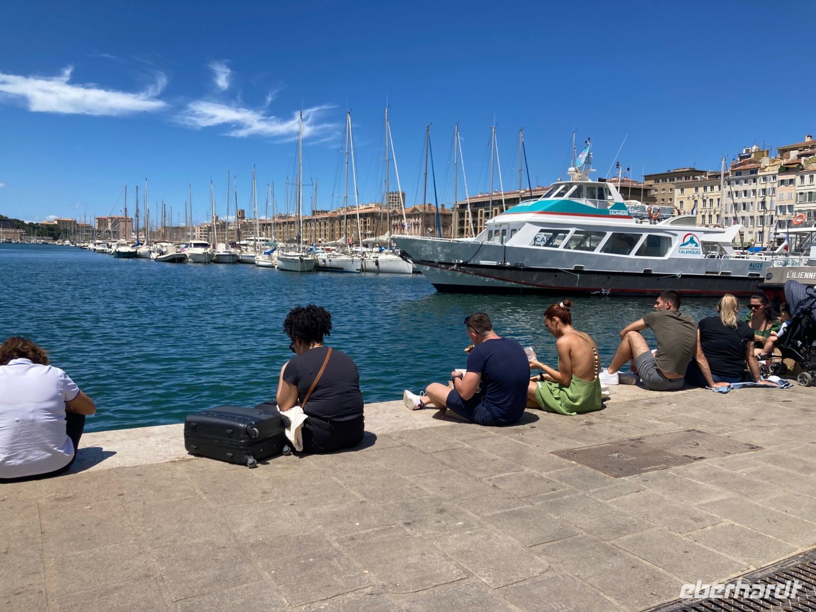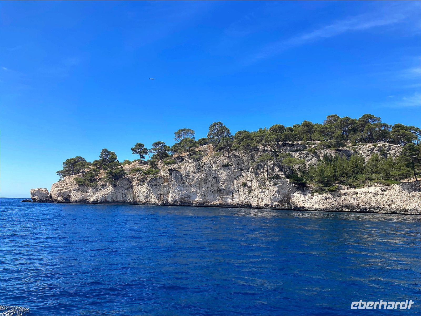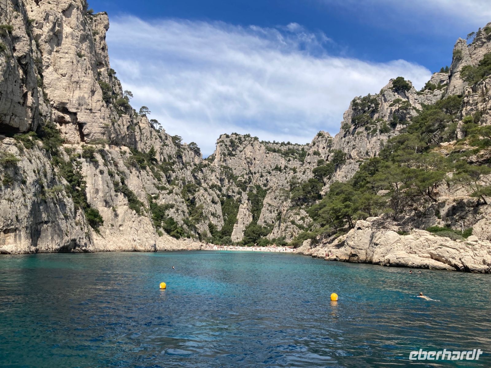 Doch zuerst steht noch ein weiteres Highlight an, die Bootsfahrt entlang der Calanques. In Cassis können wir ob der Enge, die im Touristendorf herrscht, mit unserem Bus nicht operieren, sodass wir auf einen kitschigen Touristenzug angewiesen sind, der von einer schneidigen, befehlsgewaltigen Polizistin gemanagt wird. Der bringt unser zu unserem Ausflugsboot, das uns zu drei malerischen Buchten im Nationalpark führt und das erfolgreich gegen die immer stärker werdenden Wellen kämpft, die durch den sich immer mehr aufbauenden Mistral gebildet werden.