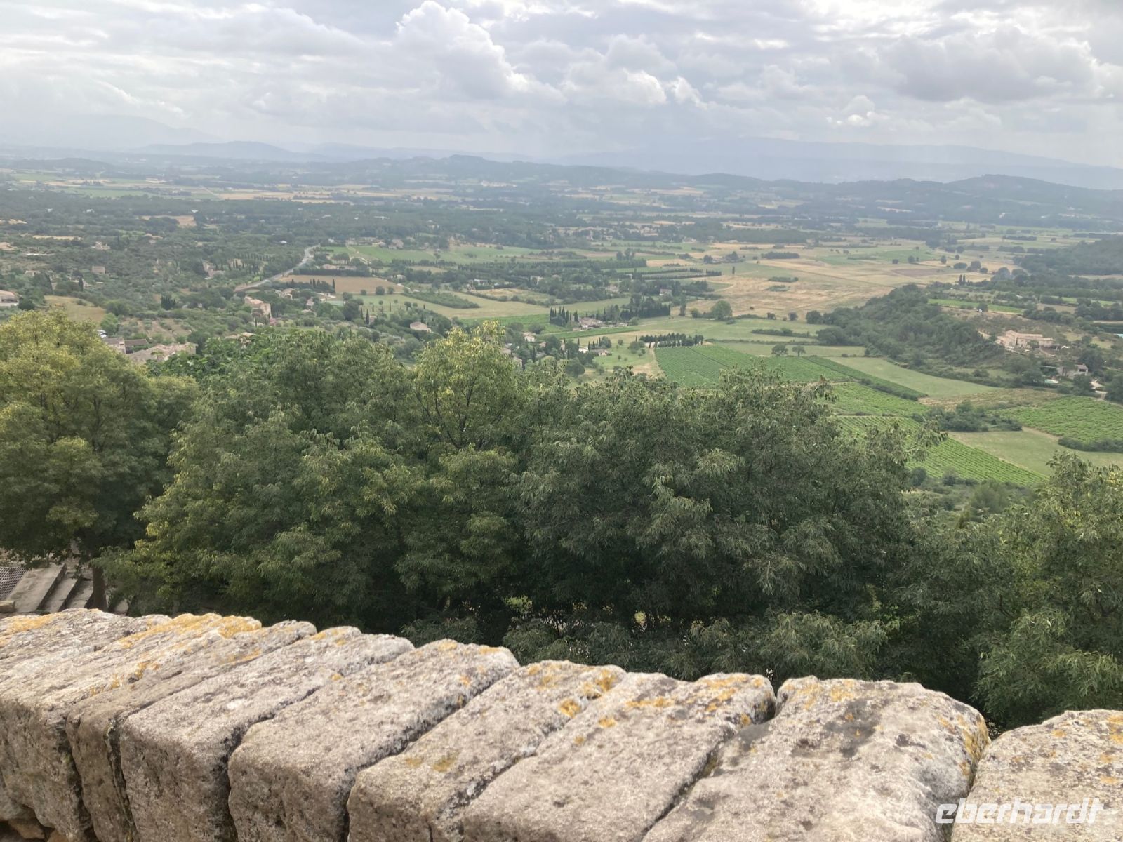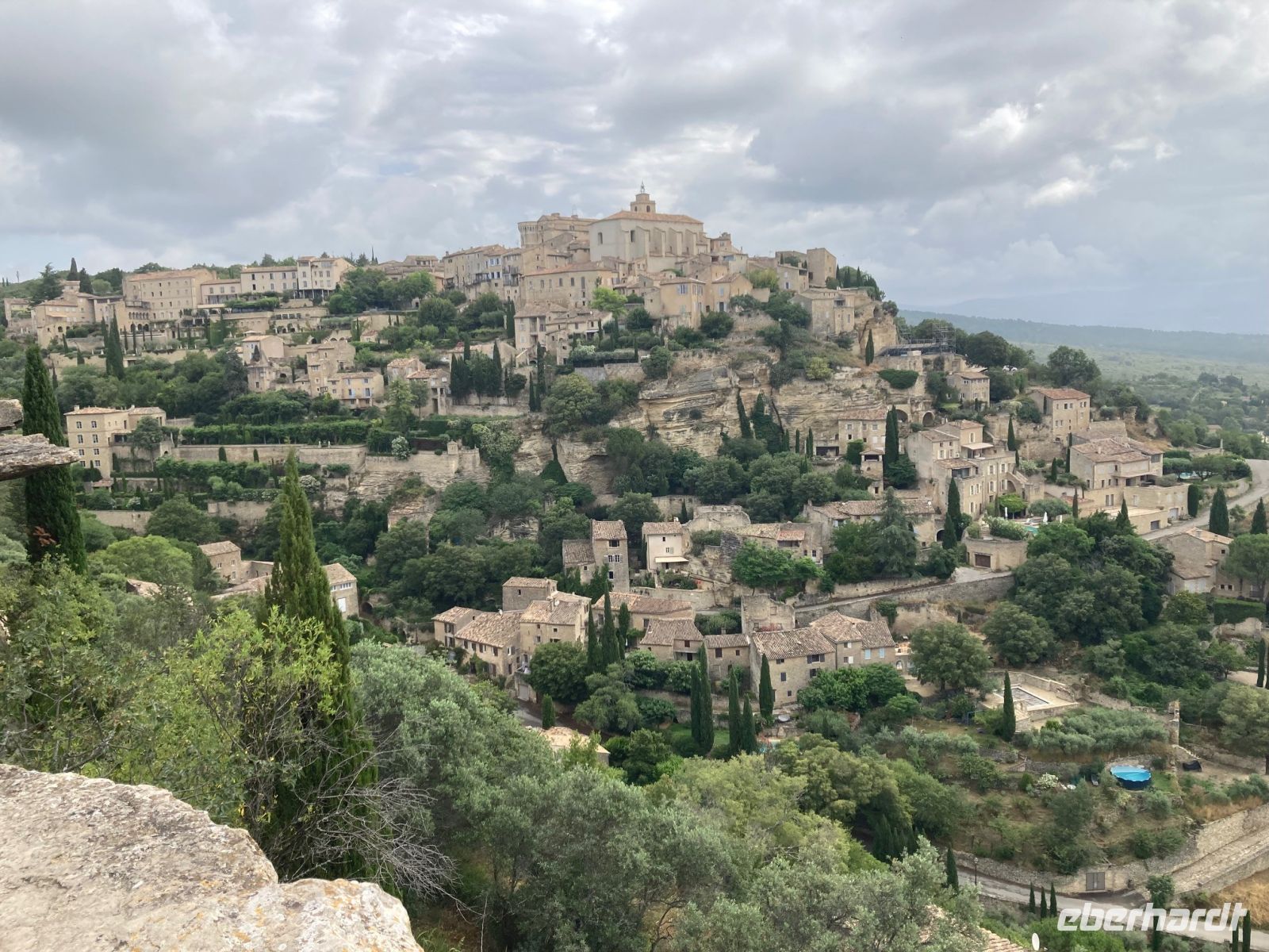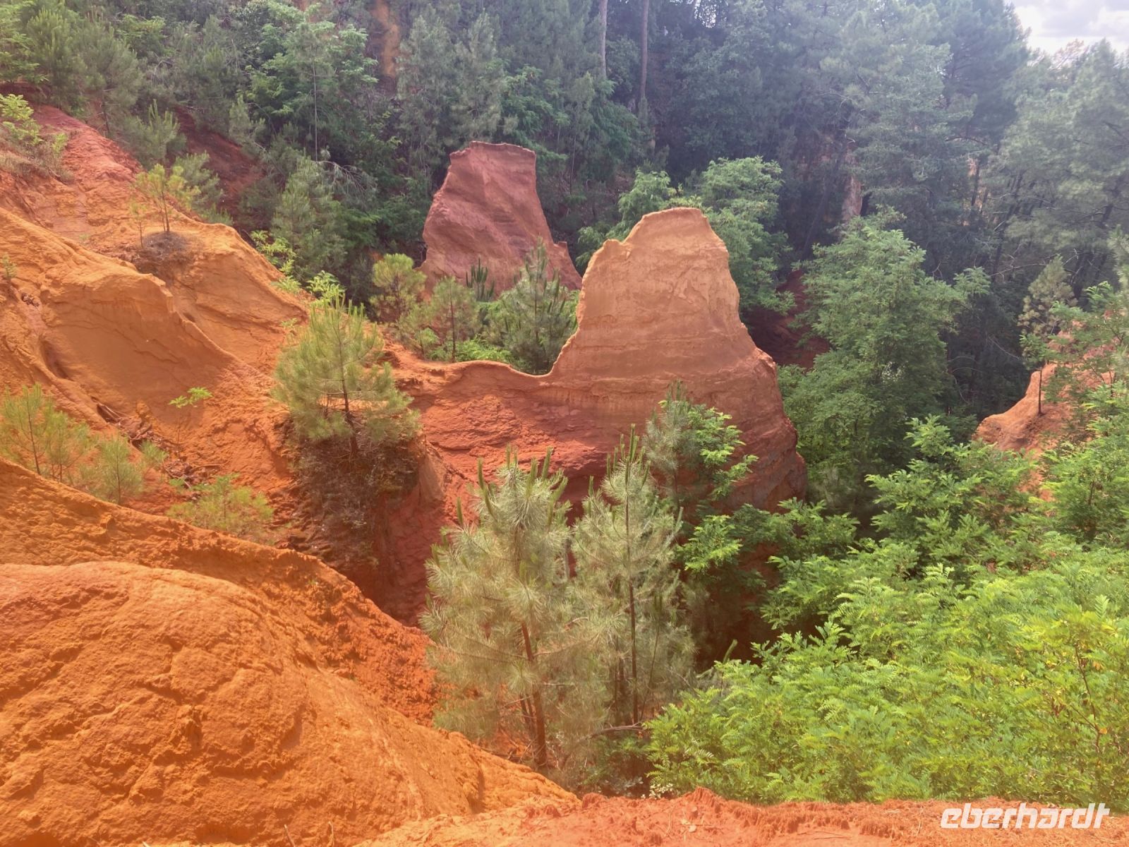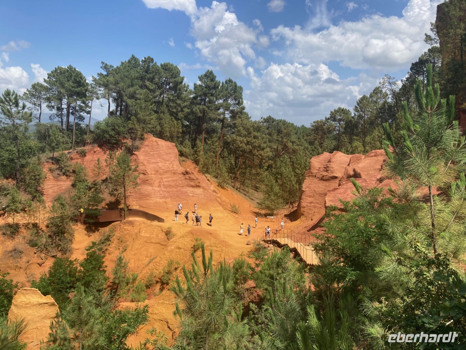 Gut gestärkt nehmen wir dann die dritte Perle dieser anmutigen Gegend in Angriff und wandern über den berühmten Ockerpfad bei Roussillon. Befürchtungen, dass die blütenweißen Sneakers der Gäste durch den aufgeweichten Boden nicht mehr zu entfernende Flecken bekommen, bewahrheiten sich nicht, sodass dem Erleben dieser bizarr anmutenden Landschaft nichts im Wege steht.