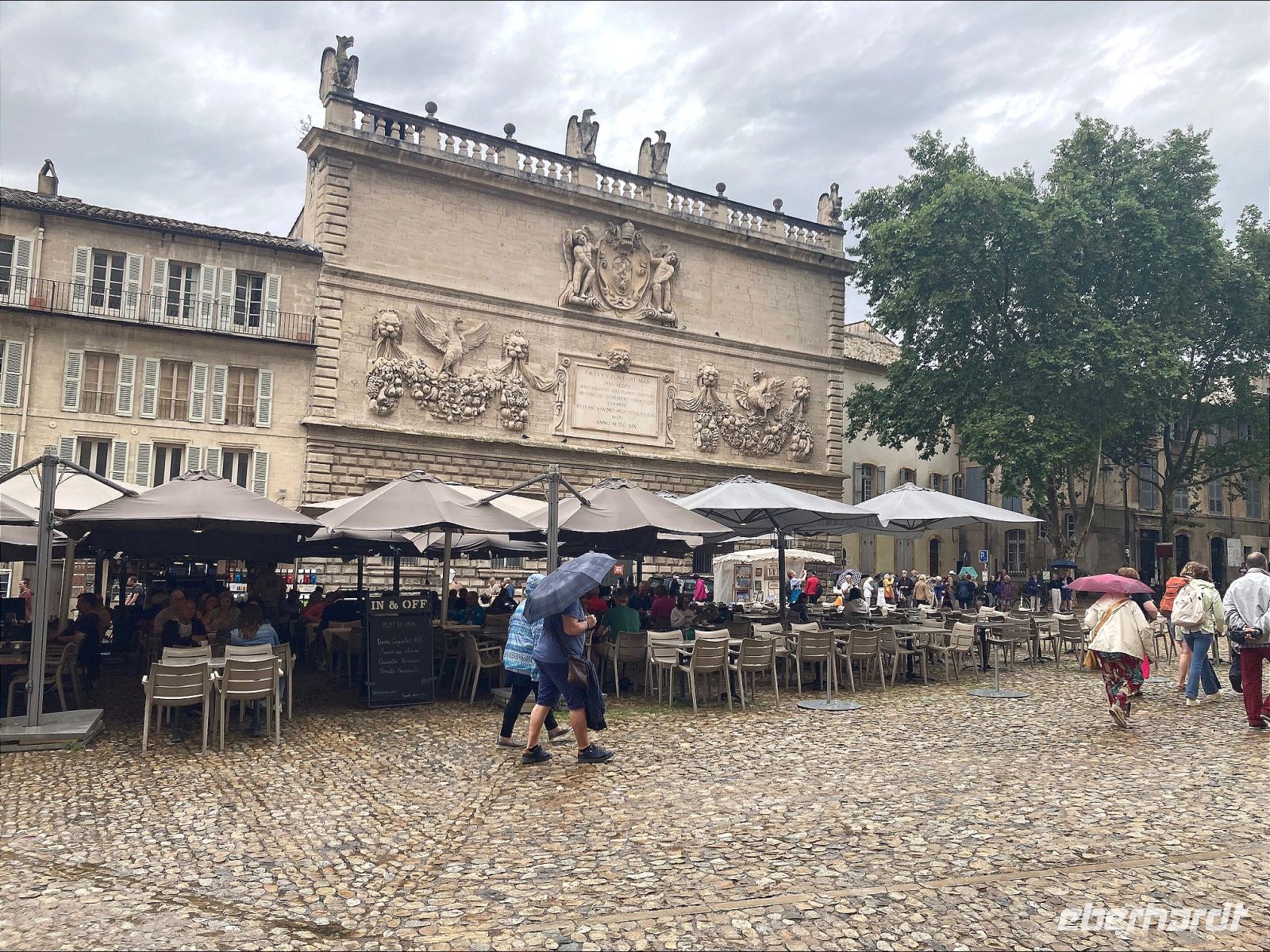 Allerdings wird unsere Hoffnung , nach dem Besuch im Papstpalast auf besseres Wetter zu treffen, enttäuscht, sodass wir uns den allseits besungenen Brückentorso von St. Benezet im Regen anschauen müssen, ehe alle in die schutzgewährenden umliegenden Restaurants flüchten.