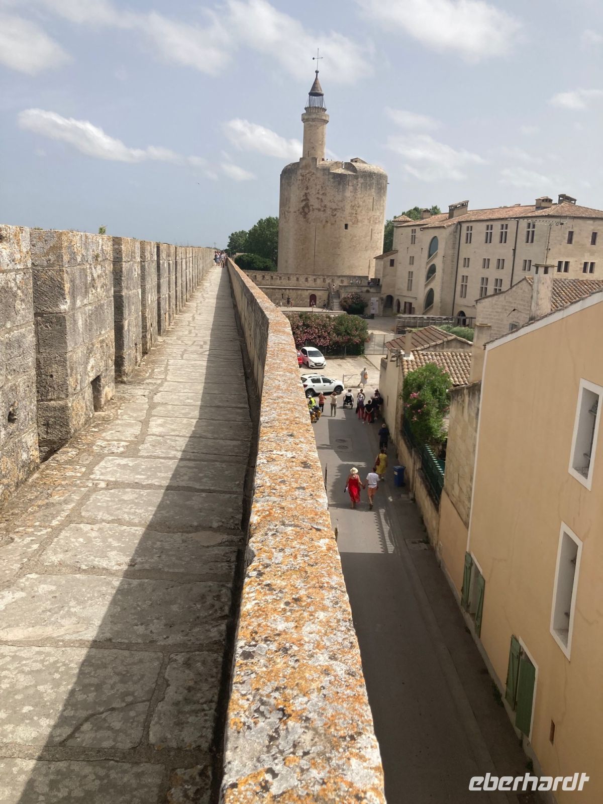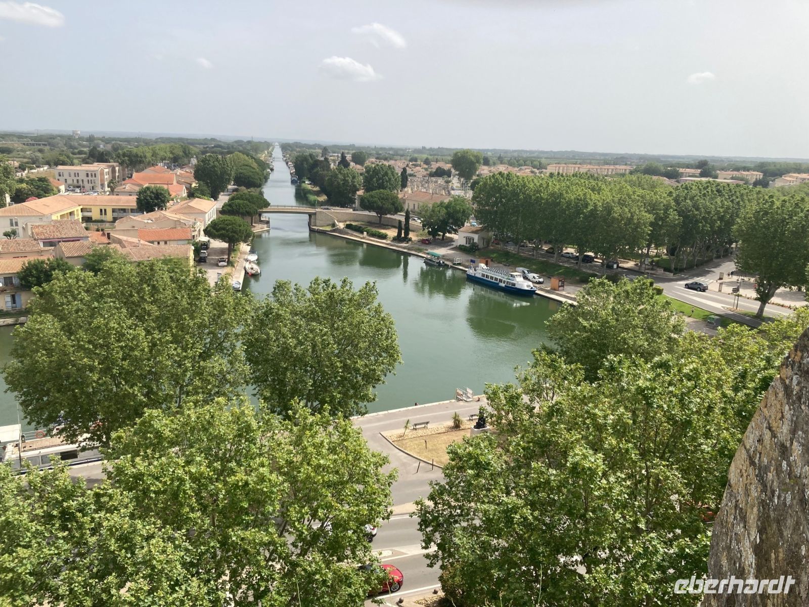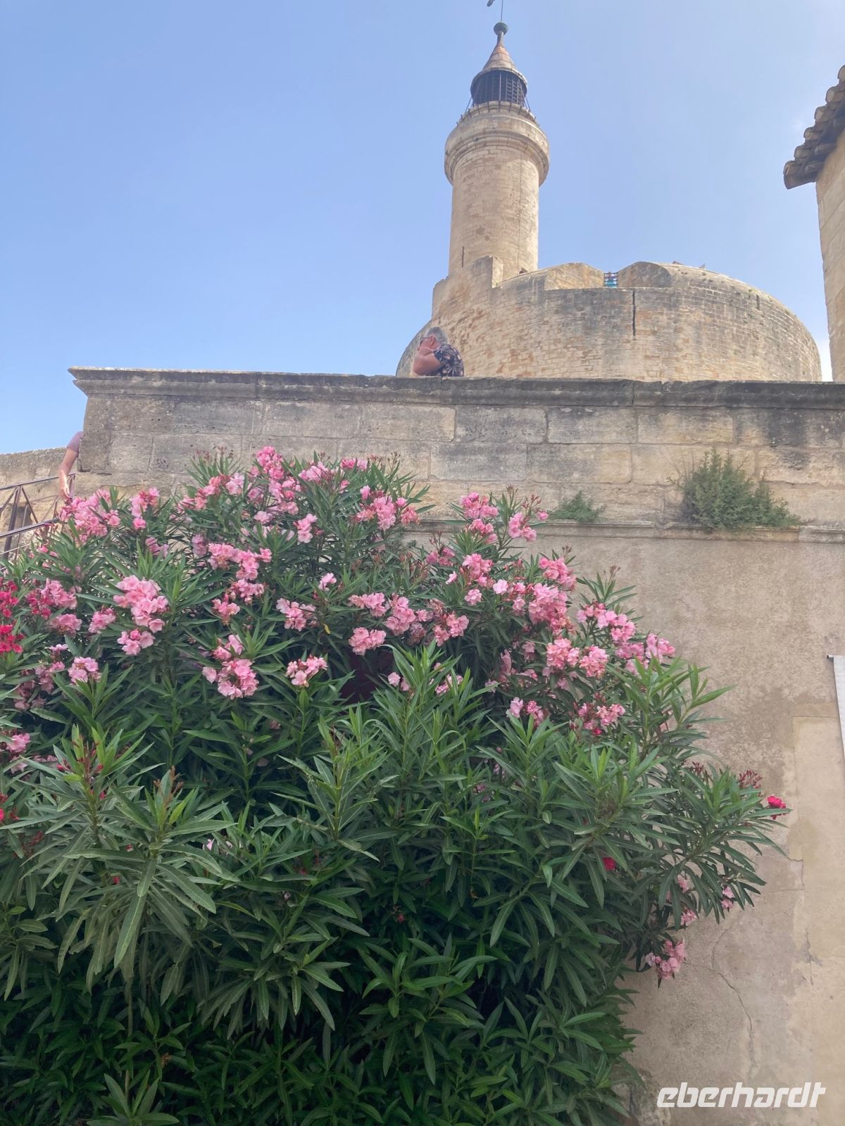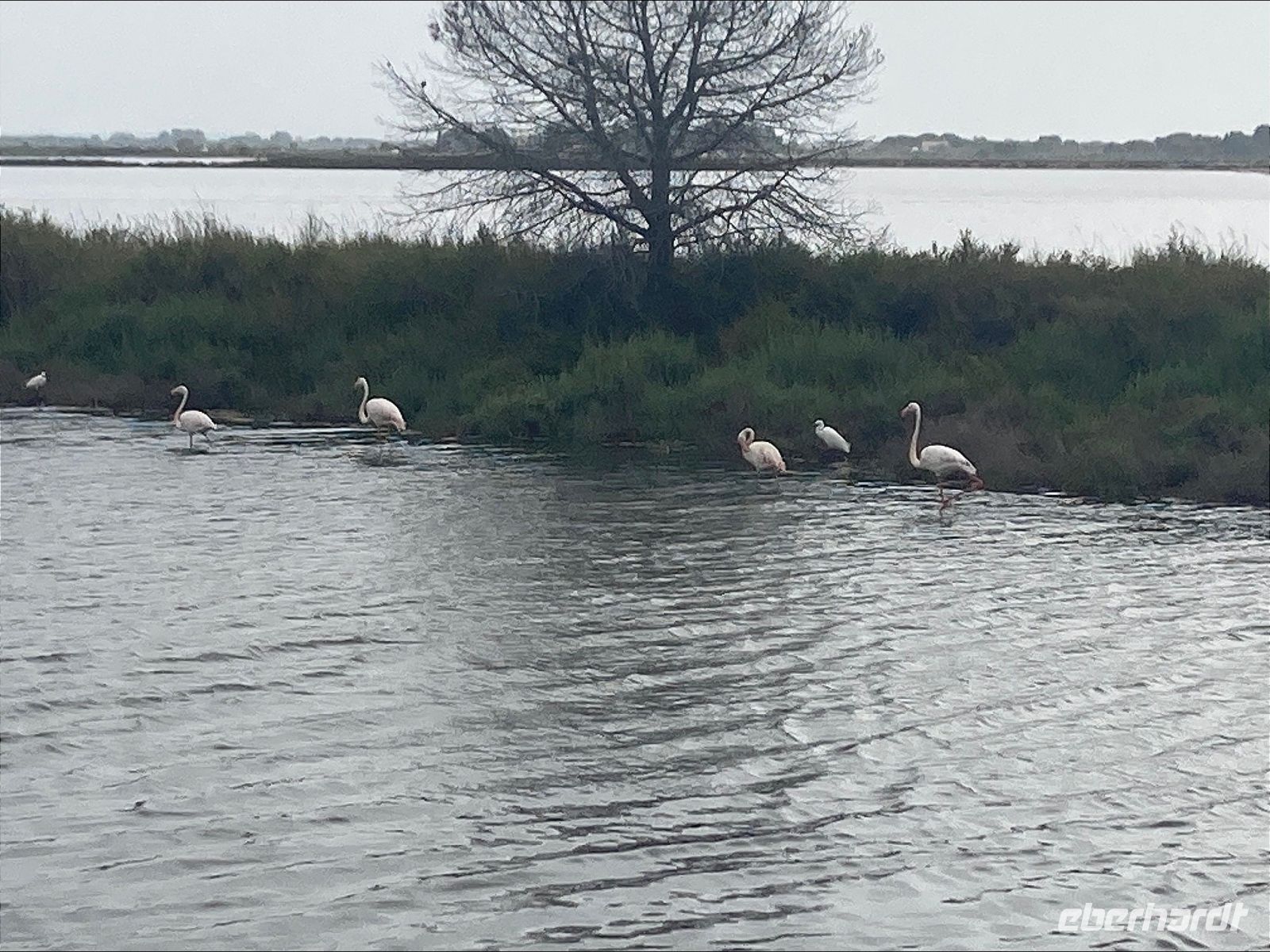 Nach so vielen Stadtbesichtigungen wollen wir heute in die Landschaft des Rhonedeltas, die Camargue, eintauchen. Zuerst lassen wir uns von David zu einem der Brackwasserseen in der Nähe von Le-Grau-du-Roi fahren, an dem fast immer rosarote Flamingos zu sehen sind, und werden auch dieses Mal nicht enttäuscht. Und dann ist es nicht weit nach Aigues Mortes, dem Inbegriff einer mittelalterlichen Stadt. Umgeben von einer vollständig intakten, trutzigen Stadtmauer diente sie einst dem französischen König Ludwig IX. als Ausgangspunkt für seine Kreuzzüge. Auf die obligatorische Stadtführung, die am zentralen Platz mit der Statue des Königs endet, lässt der Reiseleiter für die Wissbegierigen noch einen Rundgang durch den Tour Constance und über die komplette Stadtmauer folgen, was in der zur Verfügung stehenden Zeit nur knapp zu schaffen ist.