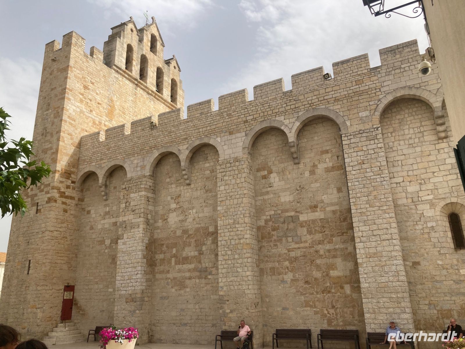 Doch erholt von der anschließenden Busfahrt durch das abwechslungsreiche Schwemmland mit den weißen Pferden und den schwarzen Stieren können sich alle dem nächsten Höhepunkt des Tages zuwenden. Im legendären Küstenort Stes. Maries-de-la-Mer besuchen wir zunächst die schroffe, burgähnliche Wehrkirche, die einige Reliquien mit den entsprechenden Geschichten für uns bereithält. Die der Marien sind hoch oben in der Kapelle für uns nicht zu erreichen, doch die der schwarzen Dienerin Sara können wir in der Krypta in Augenschein nehmen. Sie, die Heilige der „Gitanes“, der Sinti und Roma, wird zweimal im Jahr in einer vielbeachteten Prozession durch die Stadt und das Meer getragen. Und dass sie helfen kann, bezeugen die vielen, oft sehr aufwändig gestalteten Votivgaben, die überall in der Kirche zu sehen sind.