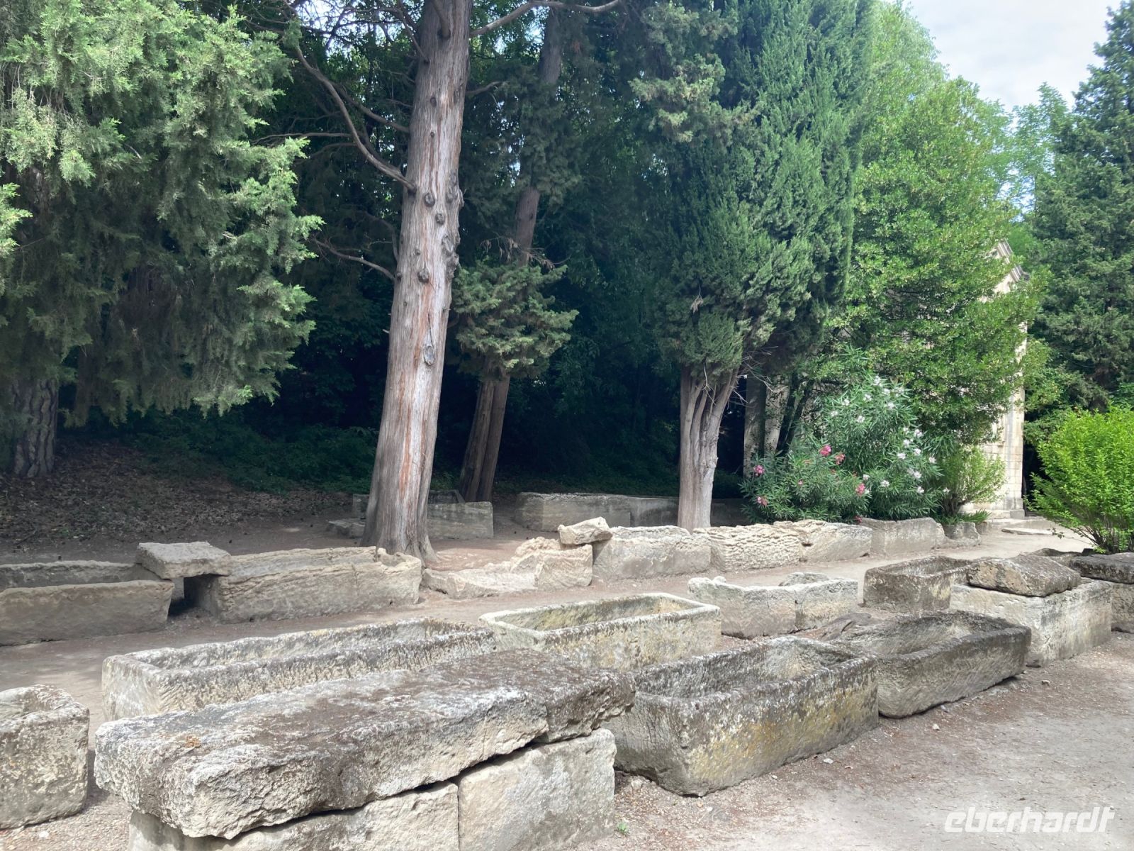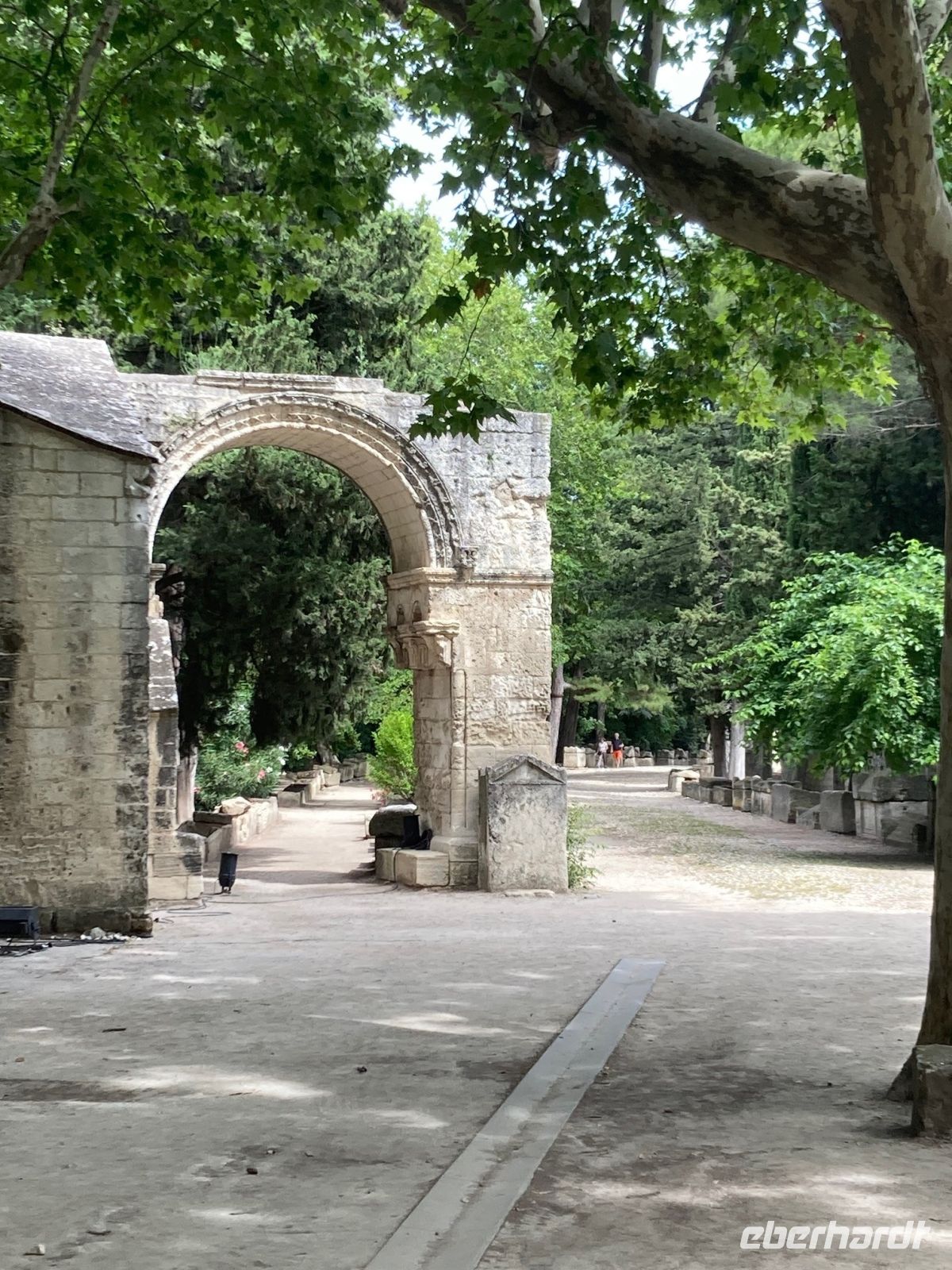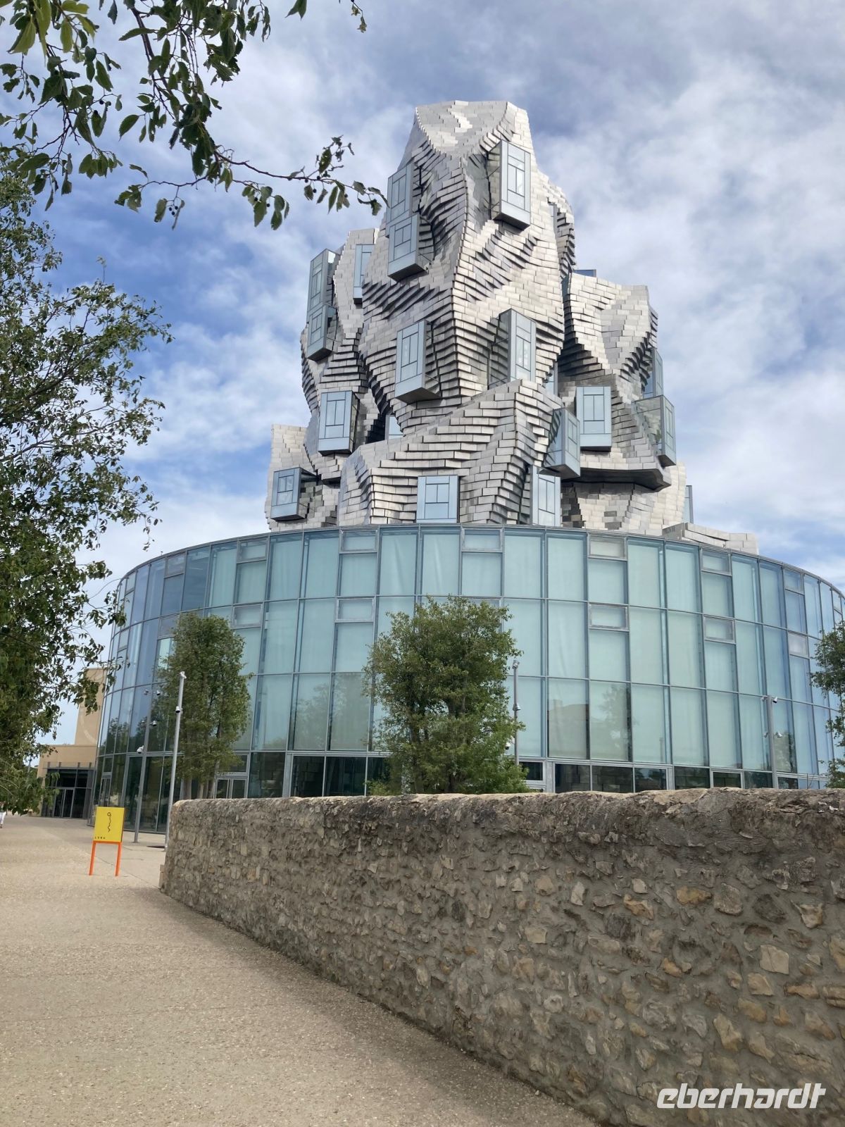 Die relativ zeitige Rückkehr am frühen Abend ermöglicht es einigen Interessierten, bei der Ankunft in Arles den modernen Luma-Komplex anzuschauen. Doch leider hat dieses futuristische Bauwerk des Stararchitekten Frank Gehry seine Pforten neben dem obligatorischen Montag auch am Dienstag geschlossen, sodass es beim Nase-Plattdrücken an den Glasscheiben bleibt. Als Alternative bietet der Reiseleiter einen Besuch in der nahegelegenen antiken Gräberstraße Alyscamps an, dessen romantische Atmosphäre im sanften Abendlicht sogar kostenlos zu erleben ist.