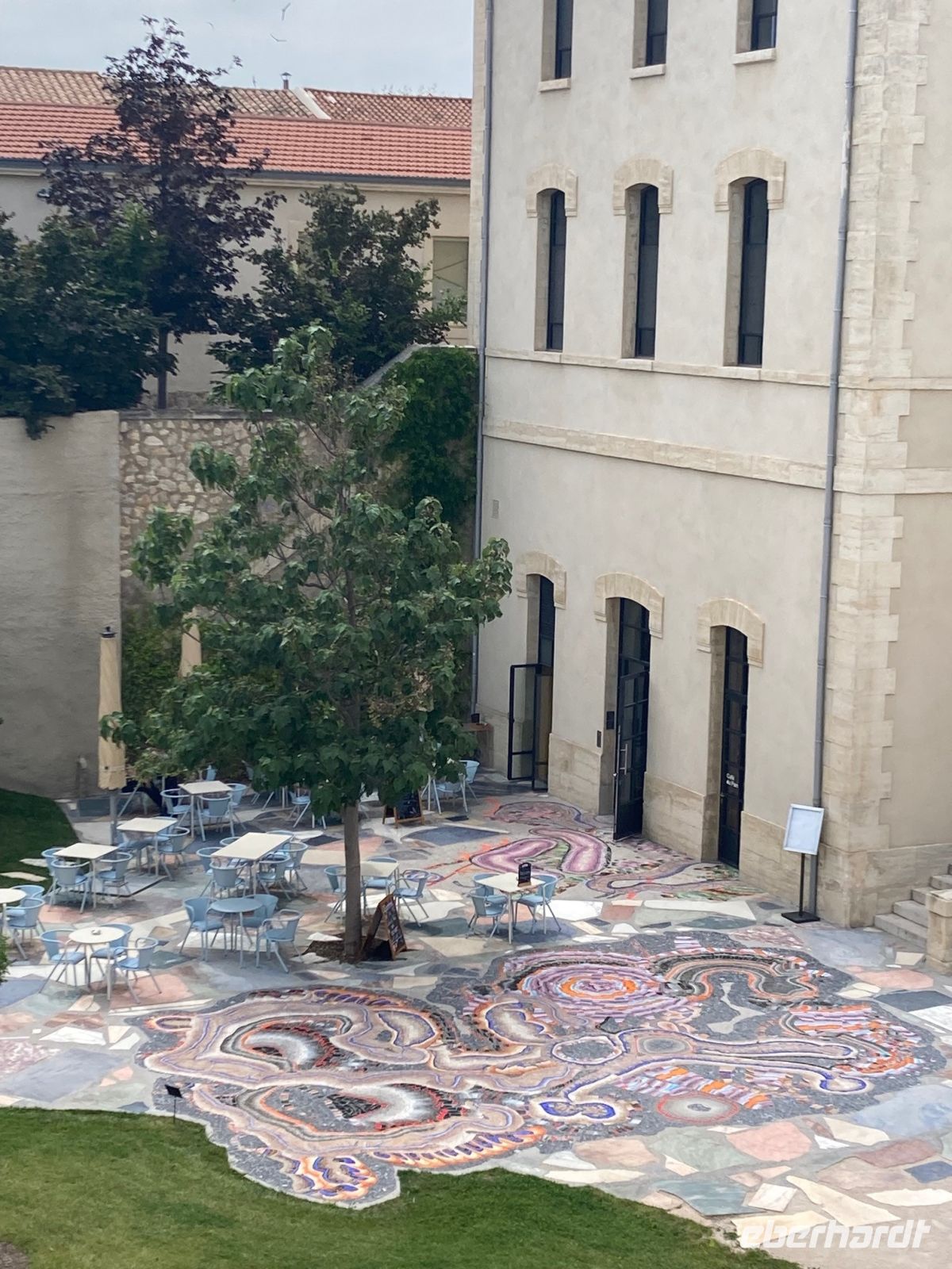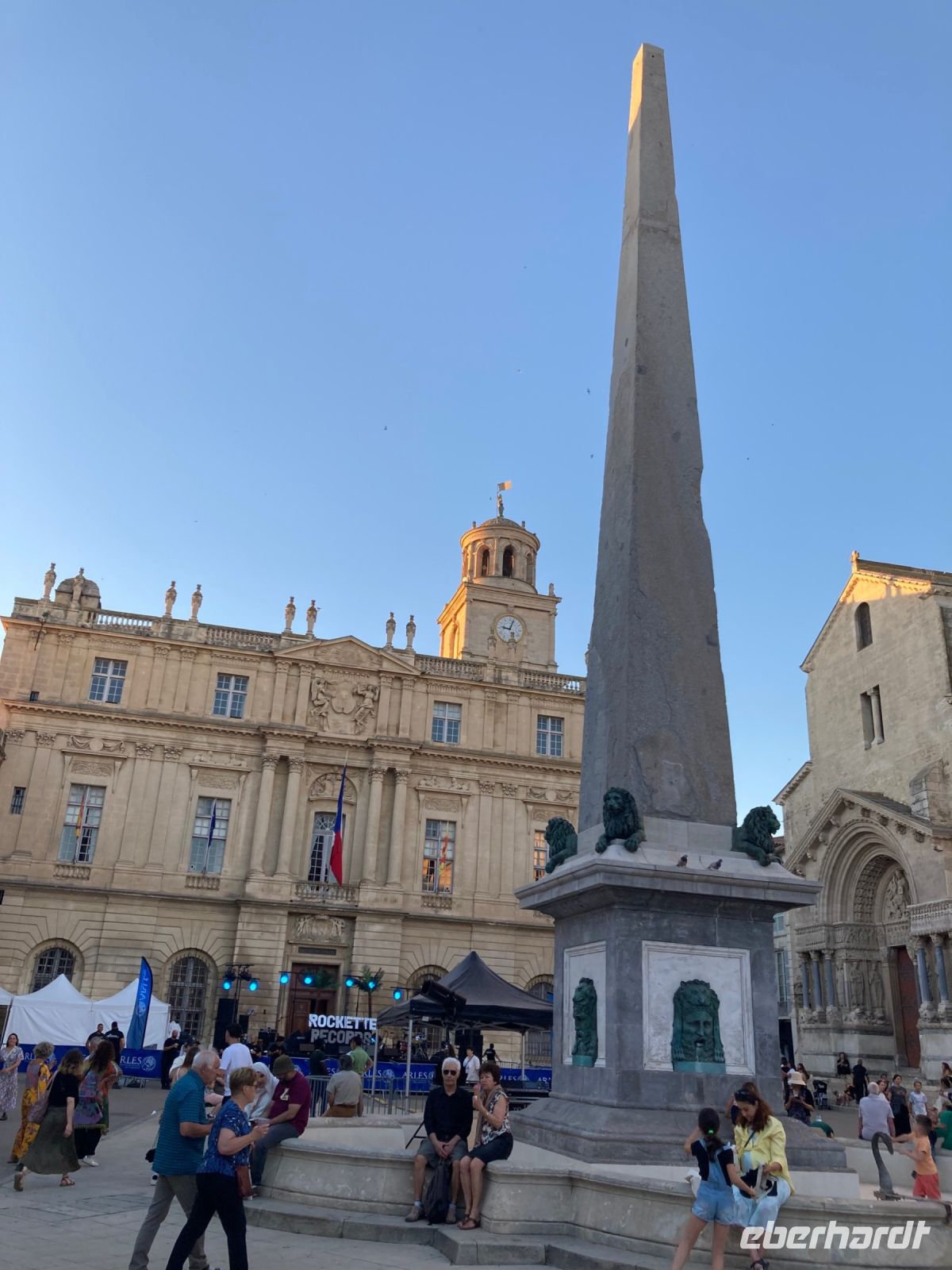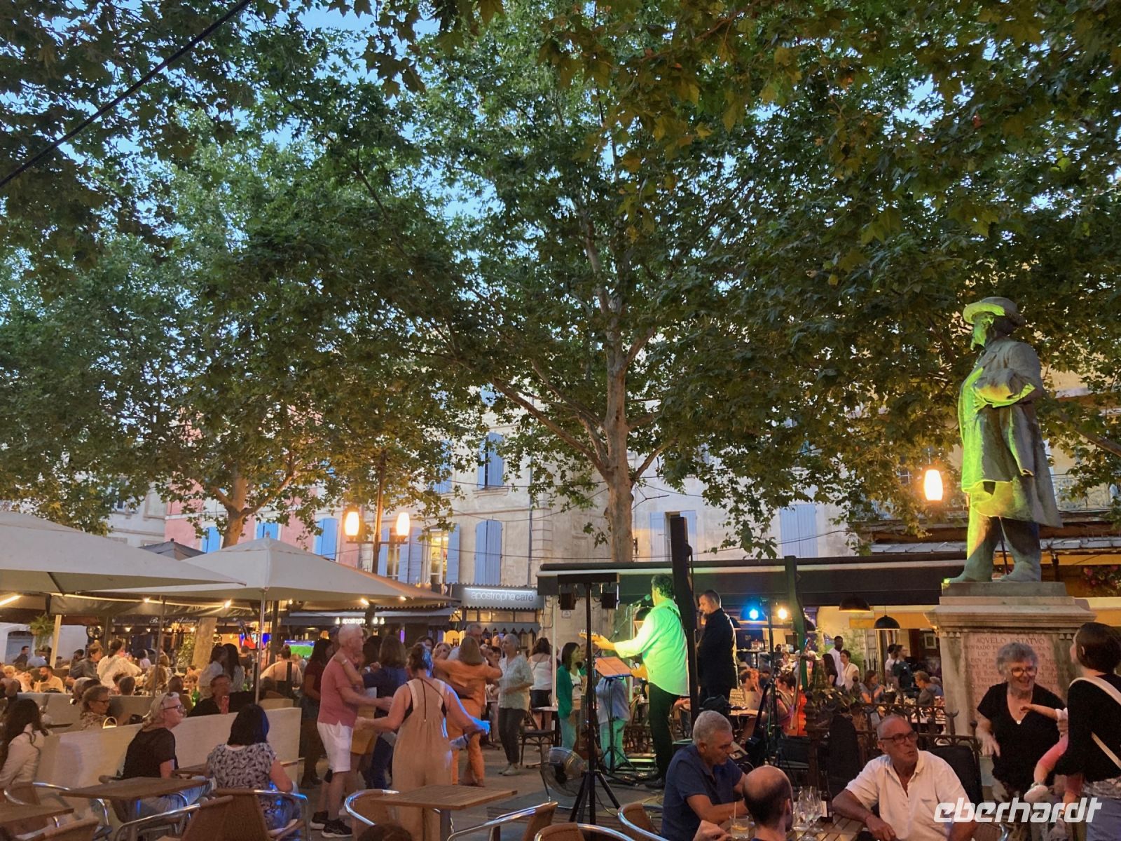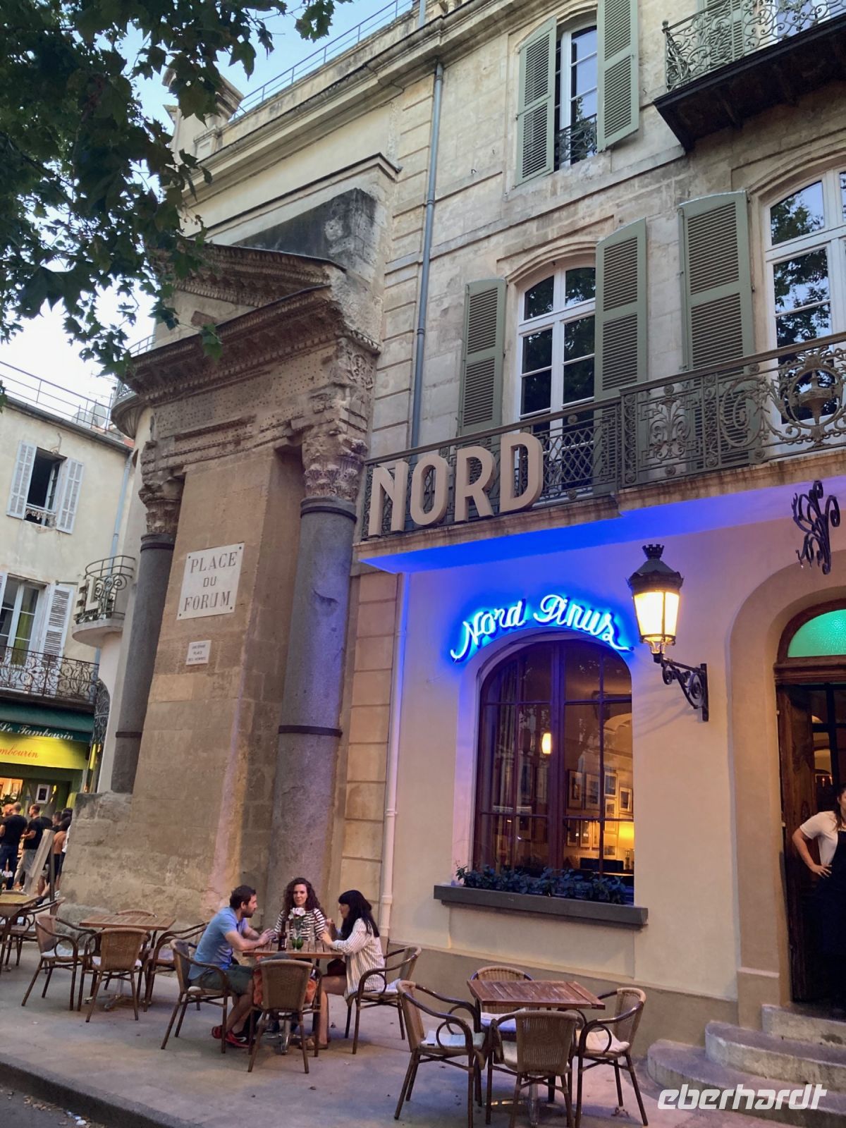 Weitaus heiterer geht es dann auf dem Place du Forum zu, der neben dem etwas heruntergekommenen Cafe la Nuit, das Vincent van Gogh so trefflich in Szene gesetzt hat, vor allem das noble Hotel Nord Pinus aufweist, in dessen Fassade zwei römische Säulen mitsamt Architrav eingearbeitet sind. Und über allem wacht auf seinem Podest der große Dichter und Erneuerer der provenzalischen Sprache Frederic Mistral.