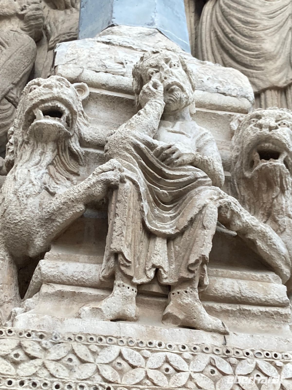 Dann setzen wir die Besichtigung des Klosterkomplexes von St. Trophime fort, indem wir uns den berühmten Kreuzgang zu Gemüte führen, der seiner langen Bauzeit wegen jeweils zwei romanische und zwei gotische Seiten aufweist und durch die Doppelsäulen mit den herrlichen Figurenkapitellen sehr elegant wirkt.