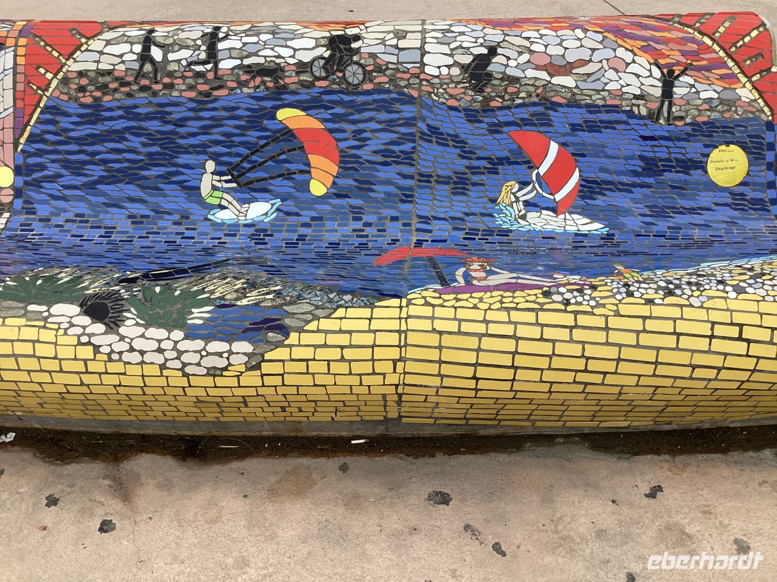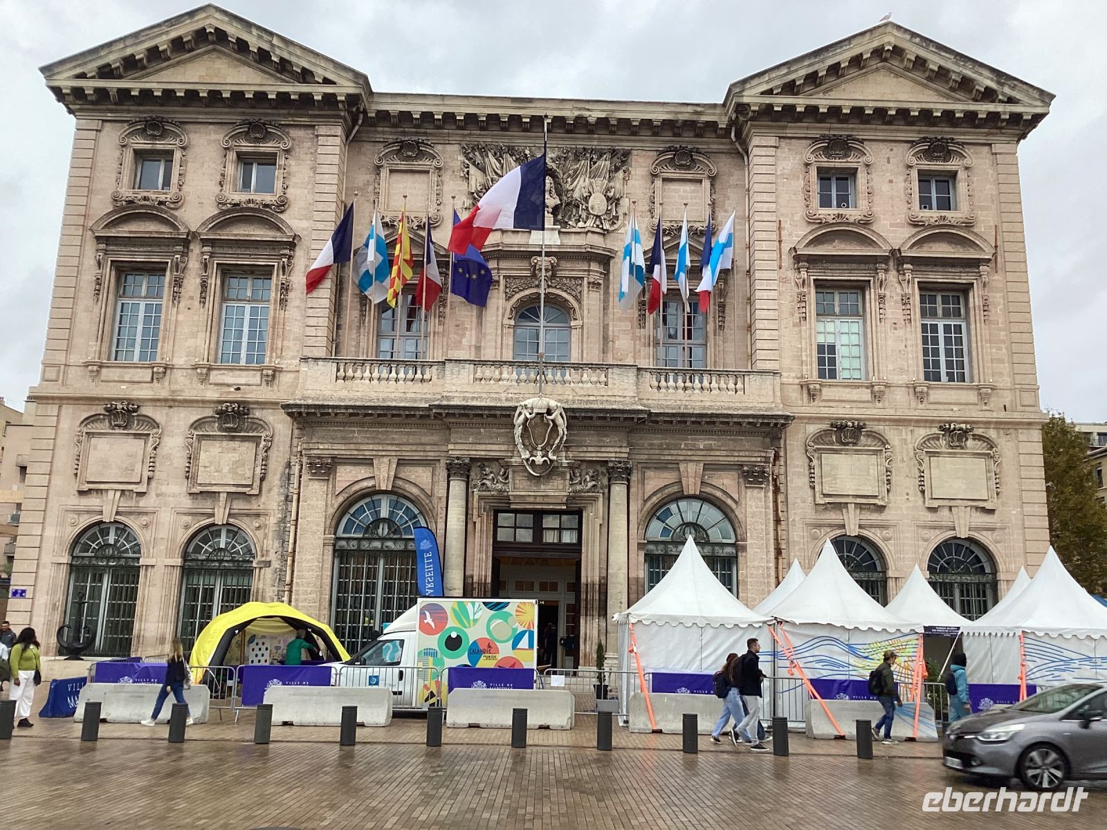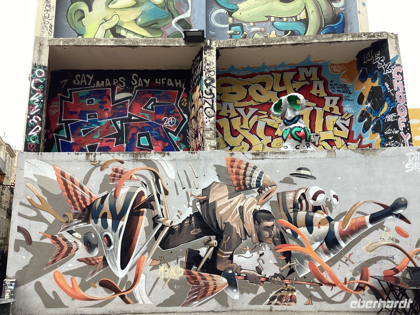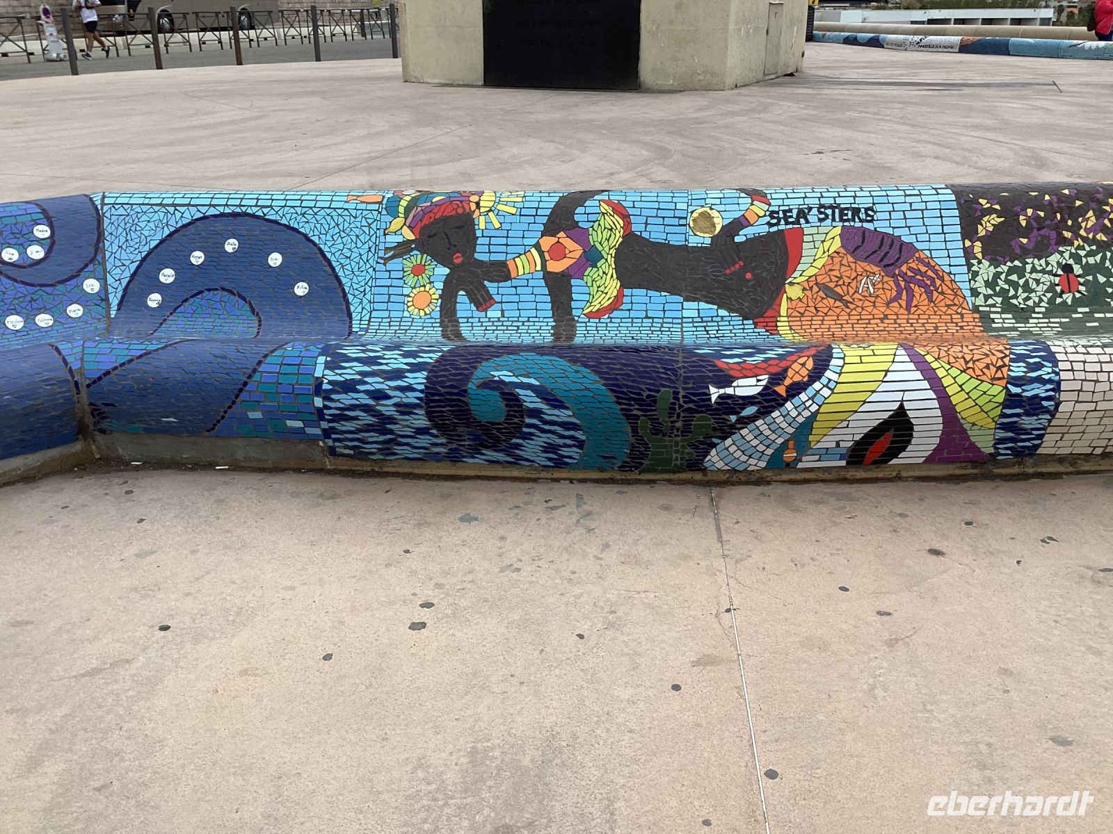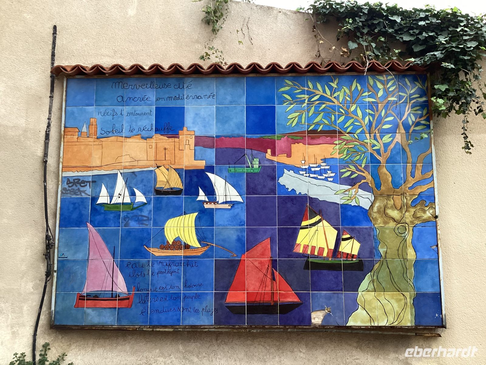 Ein bisschen wackelt unser Boot schon, aber der Kapitän hat alles im Griff. Wieder festen Boden unter den Füßen geht es mit der Bahn wieder zum Bus und dann nach Marseille. Wir fahren über die Küstenstraße und treffen dann auf Nathalie. Sie besteigt den Bus und wird uns nun Wissenswertes über diese besondere Stadt erzählen. Ihr Hafen ist einer der ältesten des Mittelmeeres und der neue Hafen ist ein begehrtes Ziel für Kreuzfahrten. So leider auch heute: Fünf Kreuzfahrtschiffe liegen im Hafen und auch wenn die Stadt gut mit vielen Menschen umgehen kann, für uns ist der Nahkontakt mit so vielen Menschen nach einer gemütlichen Woche doch gewöhnungsbedürftig. Bedauerlicherweise schließt auch die Basilika Nôtre Dame de la Garde auch früher ihre Tore um für die nötige Ruhe für den Gottesdienst zu sorgen. Auch wenn nun wieder Regen einsetzt, wollen wir doch noch einen schönen Teil der Stadt kennenlernen - le Panier. Kaum zu glauben, das dieses Quartier tatsächlich abgerissen werden sollte. Heute ist hier viel renoviert worden und es wird auch weiter erneuert. Heute Freiluftgalerie ist die Streetart, die hier überall bunt auf den Häuserwänden zu sehen ist. Nun sind wir aber doch etwas durchfeuchtet und fahren zu unserem Hotel, welches sich mitten im Zentrum befindet. Unsere Zimmer sind schnell bezogen und nun bleibt ein wenig Zeit zum Ausruhen, schließlich geht es zum Abendessen in ein Restaurant mit einem kleinen Fußweg.