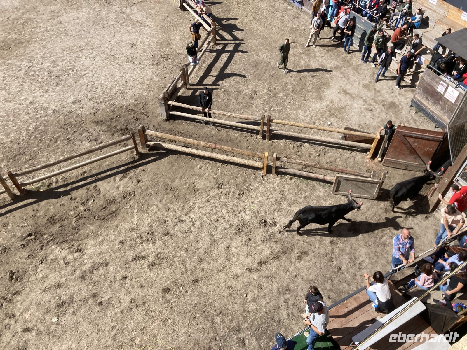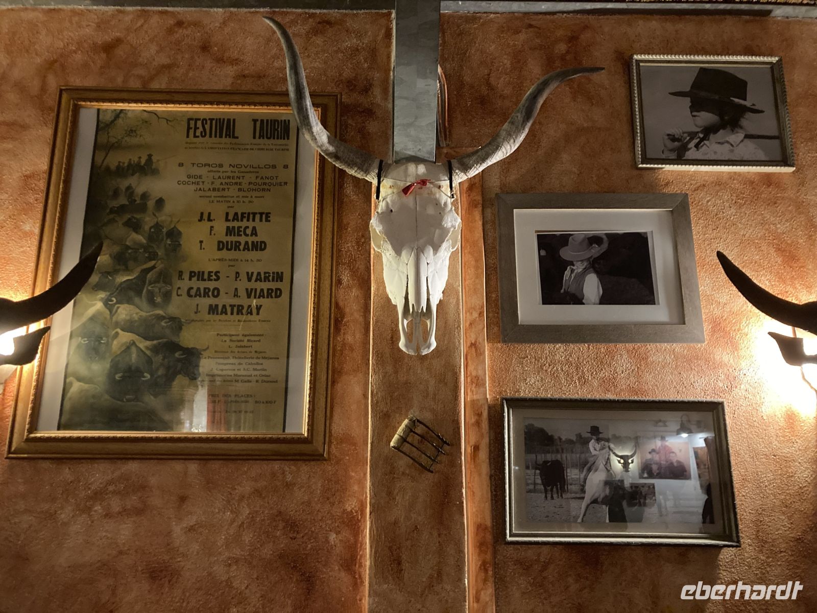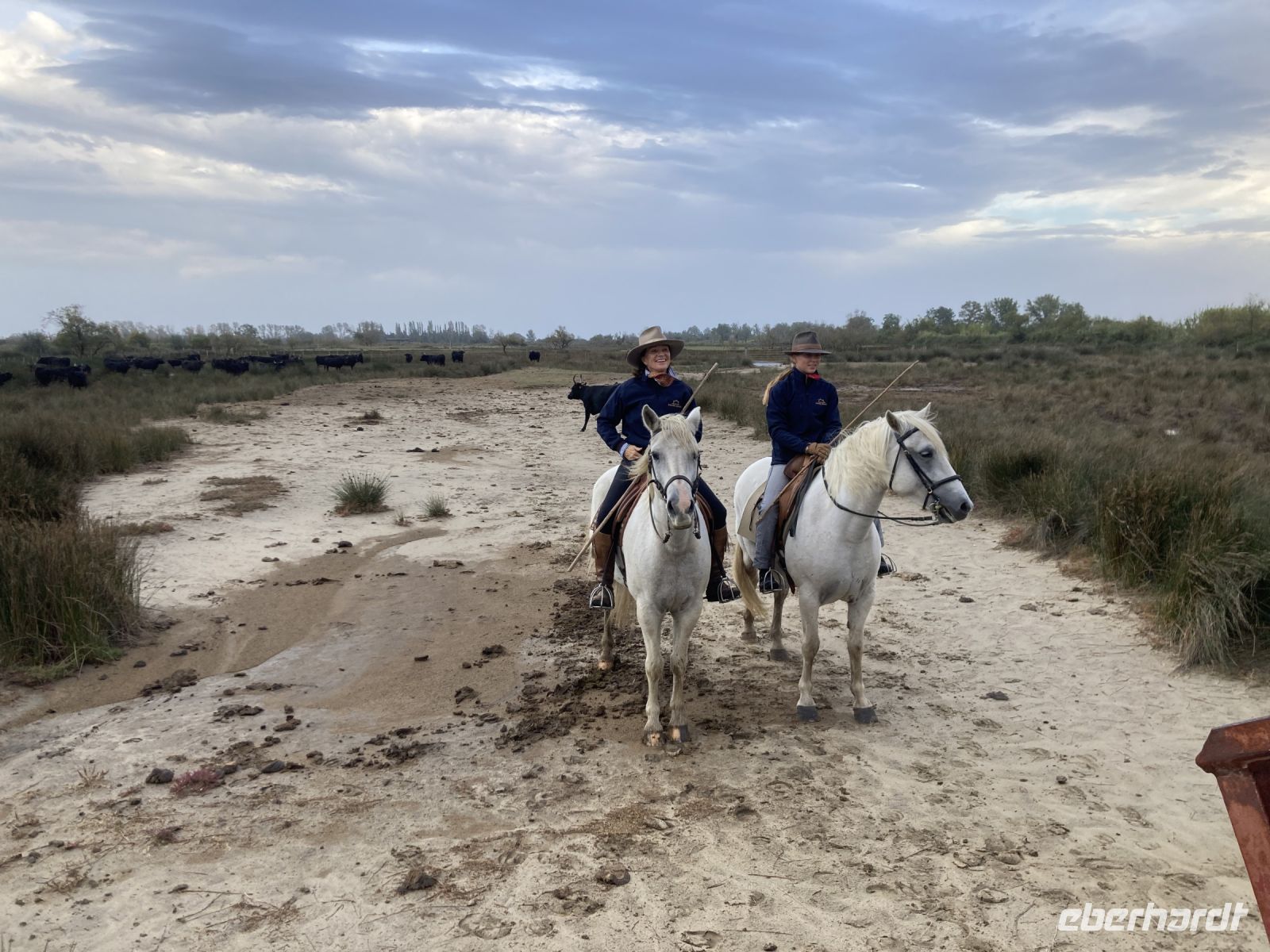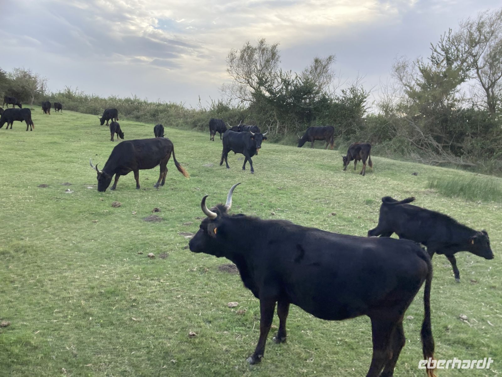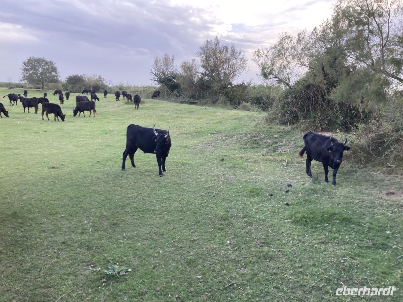Wir verlassen das freundliche Städtchen am Meer um zu einer Manade zu fahren. Näher können wir den Stieren nicht kommen. 150 Manaden gibt es in der Camargue. Diese Stierzuchten sorgen für die Aufzucht von 18.000 bis 20.000 Tiere. Es handelt sich um eine besondere Rasse. Die Tiere sind kleiner als ihre Kollegen in Spanien und ihre Hörner zeigen gerade nach oben. Respekt sollte im Umgang mit Stieren gezeigt werden, aber die beiden Frauen, die uns hoch zu Ross zeigen, wie Frau mit den Tieren umgeht, haben die Tiere im Griff. Nicht alle Stiere eignen sich jedoch für den Stierkampf und die Zucht, weshalb wir als krönenden Abschluss auch ein Stierragout genießen dürfen.