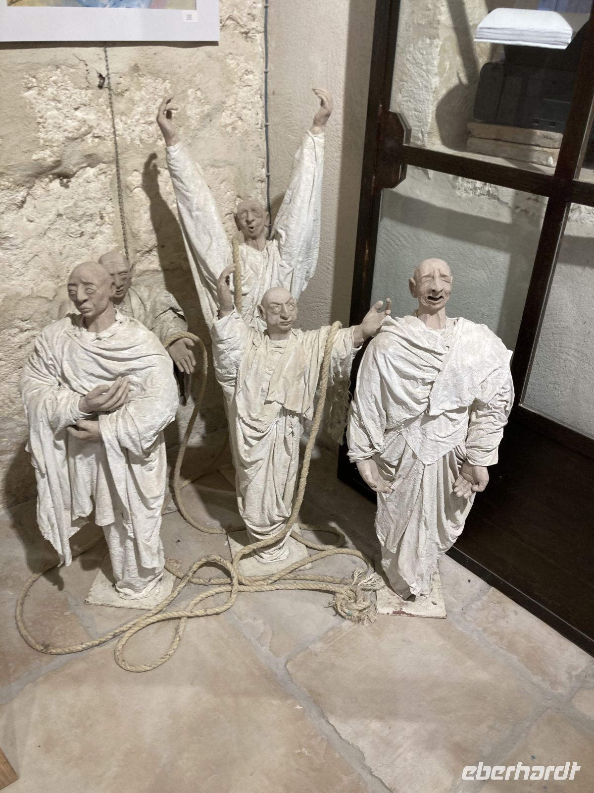 Der Name „Baux“ stammt vom provenzalischen Wort „baou“, was „steiler Felsen“ bedeutet und der Ort macht seinem Namen alle Ehre. Doch damit nicht genug: Die mittelalterliche Geschichte des Ortes birgt eine faszinierende Legende: Einer der Heiligen Drei Könige, Balthasar, soll dem Stern von Bethlehem bis nach Les Baux-de-Provence gefolgt sein. Wir würden uns schon über etwas Sonne freuen, um die mächtige Anlage, die heute eine Ruine ist, zu besichtigen. Aber die Reste geben uns doch einen Eindruck von der Größe und Wehrhaftigkeit. Wir verlassen den Ort um zu den Steinbrüchen zu gelangen. Ein aufgelassen Steinbruch wird hier auf eine besondere Weise genutzt. Mittels Lichtshow werden wir zunächst nach Ägypten entführt, um sodann eine Gemäldesammlung der Orientalisten zu sehen - ein beeindruckendes Erlebnis. Kunst wird uns auch auf unserem nächsten Ziel begleiten. In Saint-Remy versuchen wir Vincent van Gogh etwas näher zu kommen. Ein Jahr von Mai 1889 bis 1890 wird Vincent in Saint-Paul-de-Mausole verbringen. Auch wenn er viele Wochen nicht in der Lage sein wird zu malen, so werden doch 300 Zeichnungen und Gemälde hier entstehen. Die Einrichtung galt in der damaligen Zeit durchaus als fortschrittlich. Und doch vermittelt sie ein beklemmendes Gefühl, nicht zuletzt, wenn wir die Zwangsjacken betrachten.