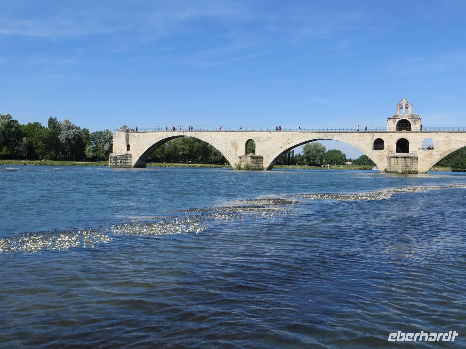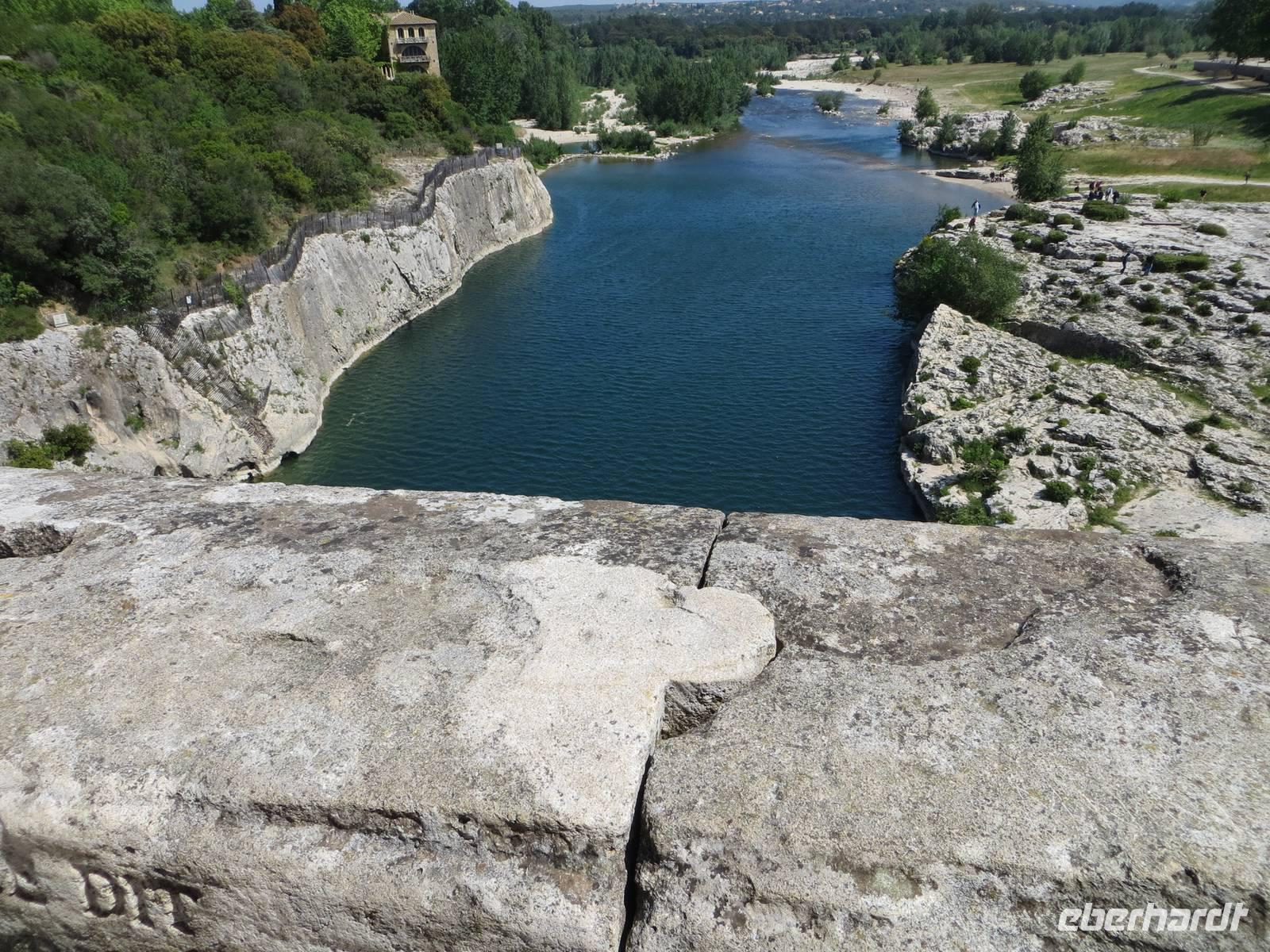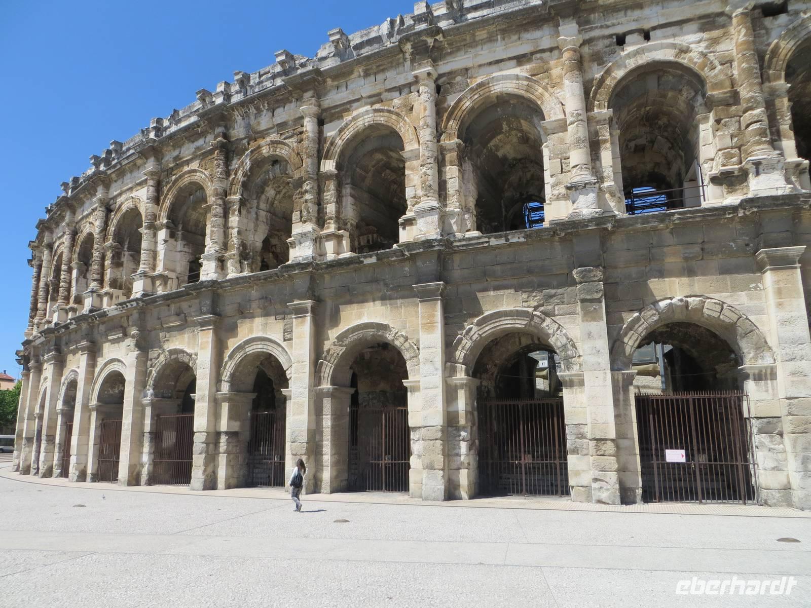 Vorbei an Weinflächen und einer Ölmühle ging es durch dörfliches Gebiet um St. Bonnet. Von einem kleinen Kalksteinhang konnten wir uns einen ersten Eindruck von typisch provencialischer Landschaft machen. Bald führte der leichte, etwas schottrige Weg durch Steineichen hinab zum Fluss Gard. Bereits im Wald hatten wir einen Rest des Wasserleitungsviaduktes gesehen. Bals schon standen wir in der Nähe der zweitausend Jahre alten Pont du Gard.Ist schon die Größe faszinierend, so wohl noch mehr die Tatsache, dass hier vor zweitausend Jahren über ein 50 Kilometer langes System Wasser geleitet wurde. Ein modernes und sehr informatives Museum am linken Flussufer berichtet anschaulich von der Zeit der Römer vor zweitausend Jahren. Den Nachmittag verbrachten wir in Nimes und konnten am Amphitheater - der Arena - ein wenig die Größe des Römischen Reiches nachvollziehen. Ein kleiner Stadtbummel führte uns durch die Innenstadt am römischen Tempel vorbei zum Park der Fontaines. Am Abend trafen wir dann in Avignon ein, wo wir für fünf Nächte im ibis-Hotel Süd Quartier bezogen.