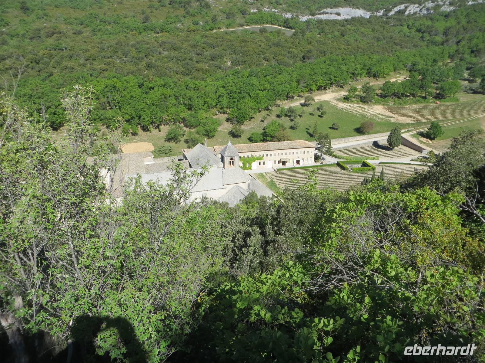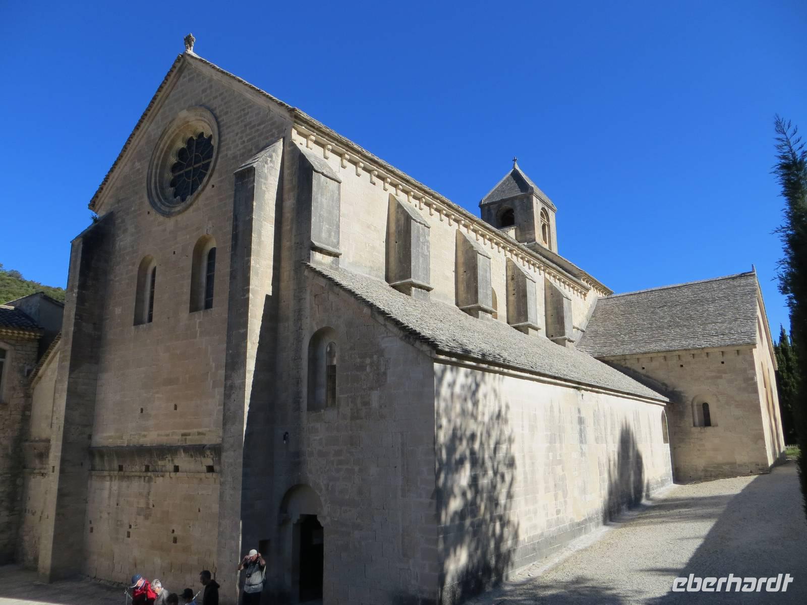 Erst seit dem 20. Jahrhundert ist das Zisterzienserkloster Senanque an das Straßennetz angeschlossen; für Busse heißt dies einem Einbahnstraßennetz zu folgen. So starteten wir die Tour am Kloster Senanque und schickten unseren Bus schon auf der Umfahrungsstrecke nach Gordes. Vor Beginn der Wanderung war so Zeit für die Suche nach den besten Fotomotiven am Kloster, wenn auch der Lavendel ringsum noch nicht seine blaue Blütenfarbe entfaltet hatte. Leicht aufwärts folgten wir einem Weg und konnten vom Hügel noch besser die Lage des Klosters im Tale erkennen. Bald schon ging es durch Trockenmauern hindurch, hinter denen sich einige Borries - kegelartige Häuschen aus geschichteten Steinen - verbargen, nach Gordes. Eines der schönsten Dörfer Frankreichs liegt unterhalb einer alten Burganlage auf einem Felsensporn. Heut wird das gut rekonstruierte Dorf durch Künstler, vor allem aber durch Touristen und die Diner am Touristen bestimmt. Am Nachmittag besuchten wir - durch einen Zwischenstopp am Hotel wieder frisch gemacht - die provencialische Hauptstadt Avignon. Jeder hatte ausreichend Freiraum zum Bummeln in den Gassen, einem Besuch im Papstpalst , dem Kleinen Palais mit Gemäldegalerie oder einem Gang zur „Brücke von Avignon".