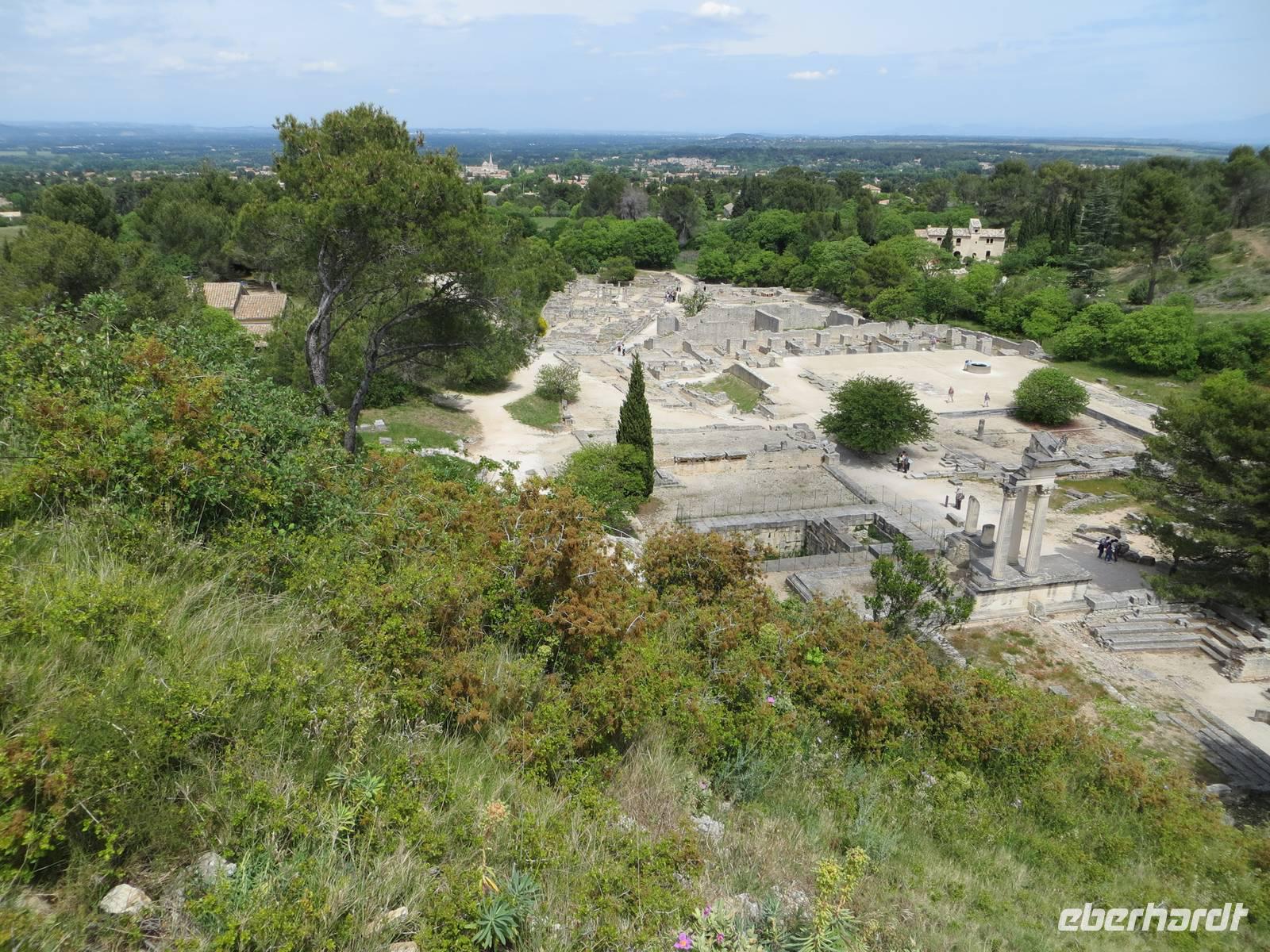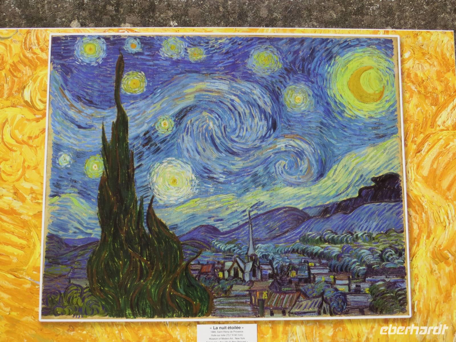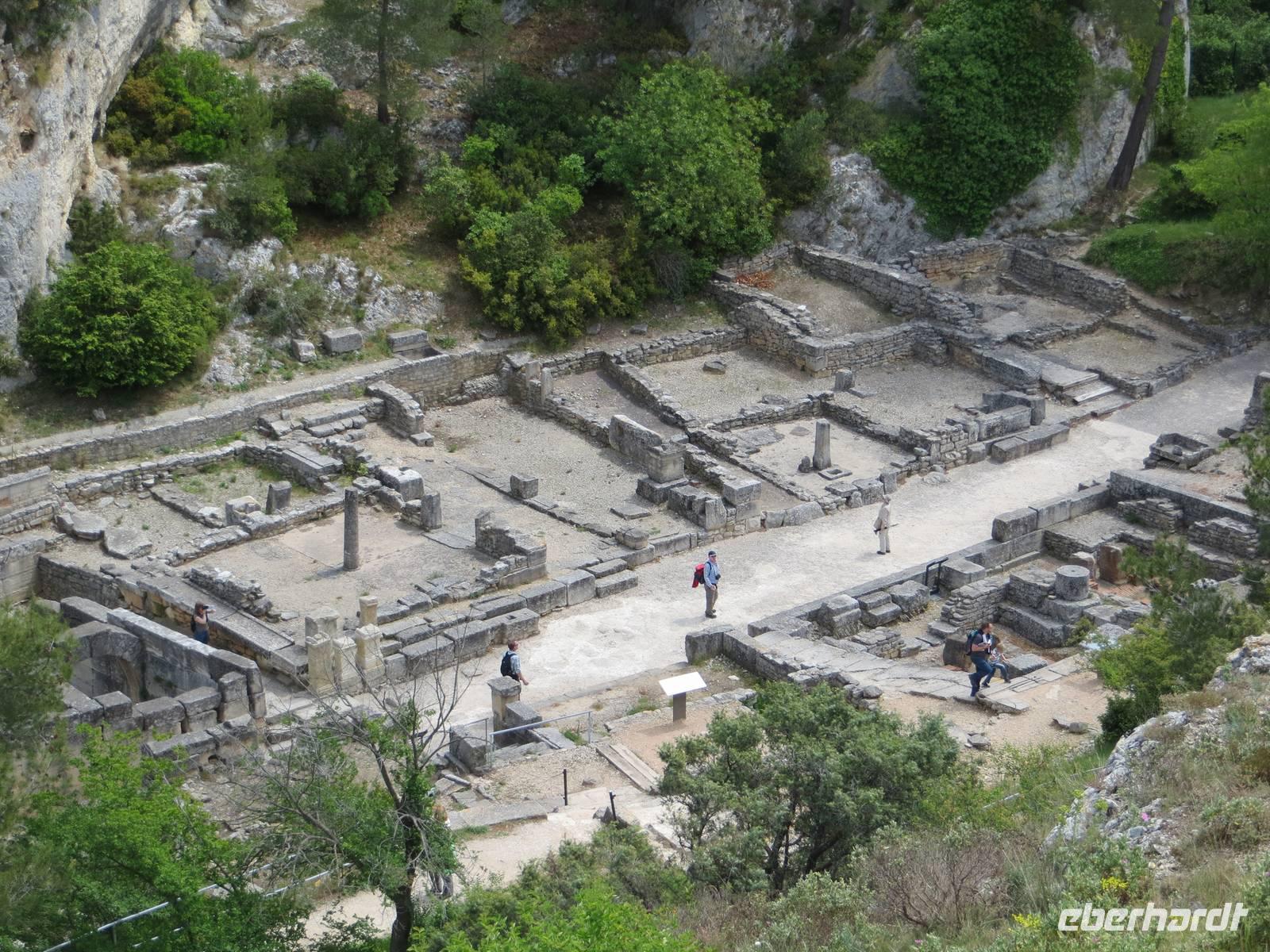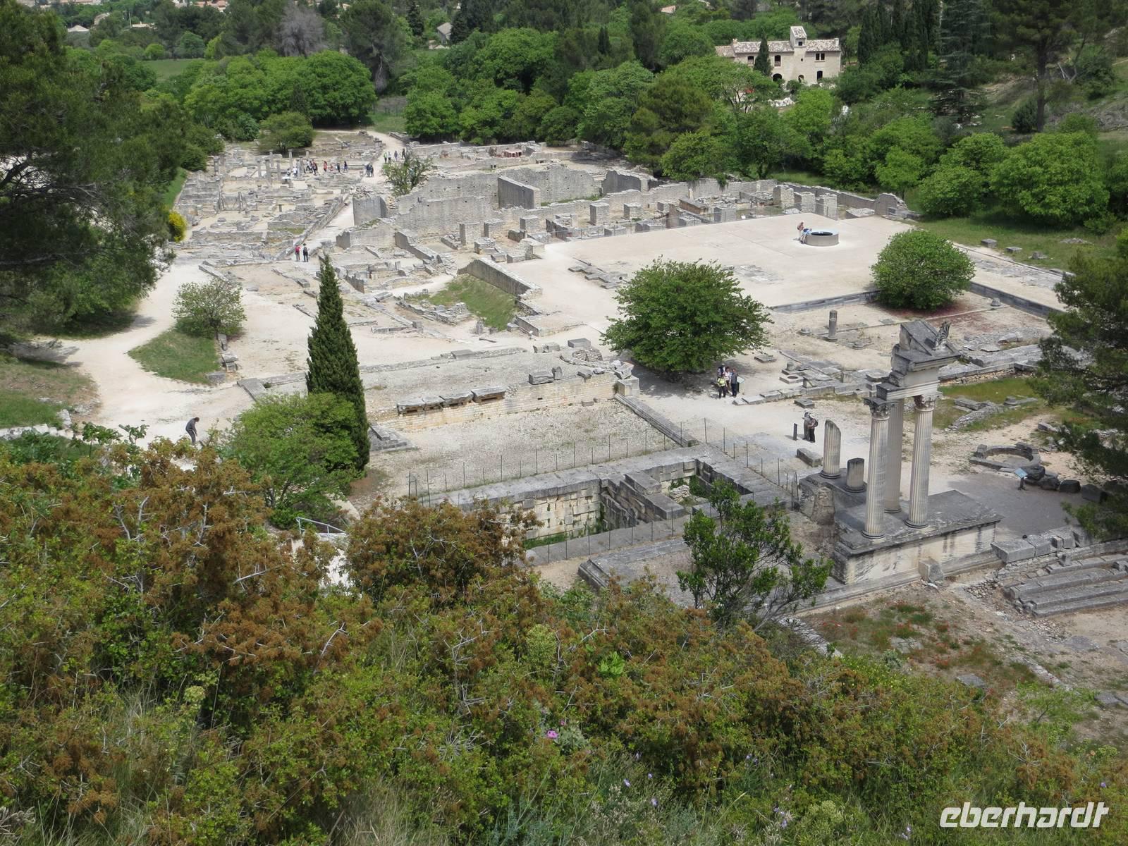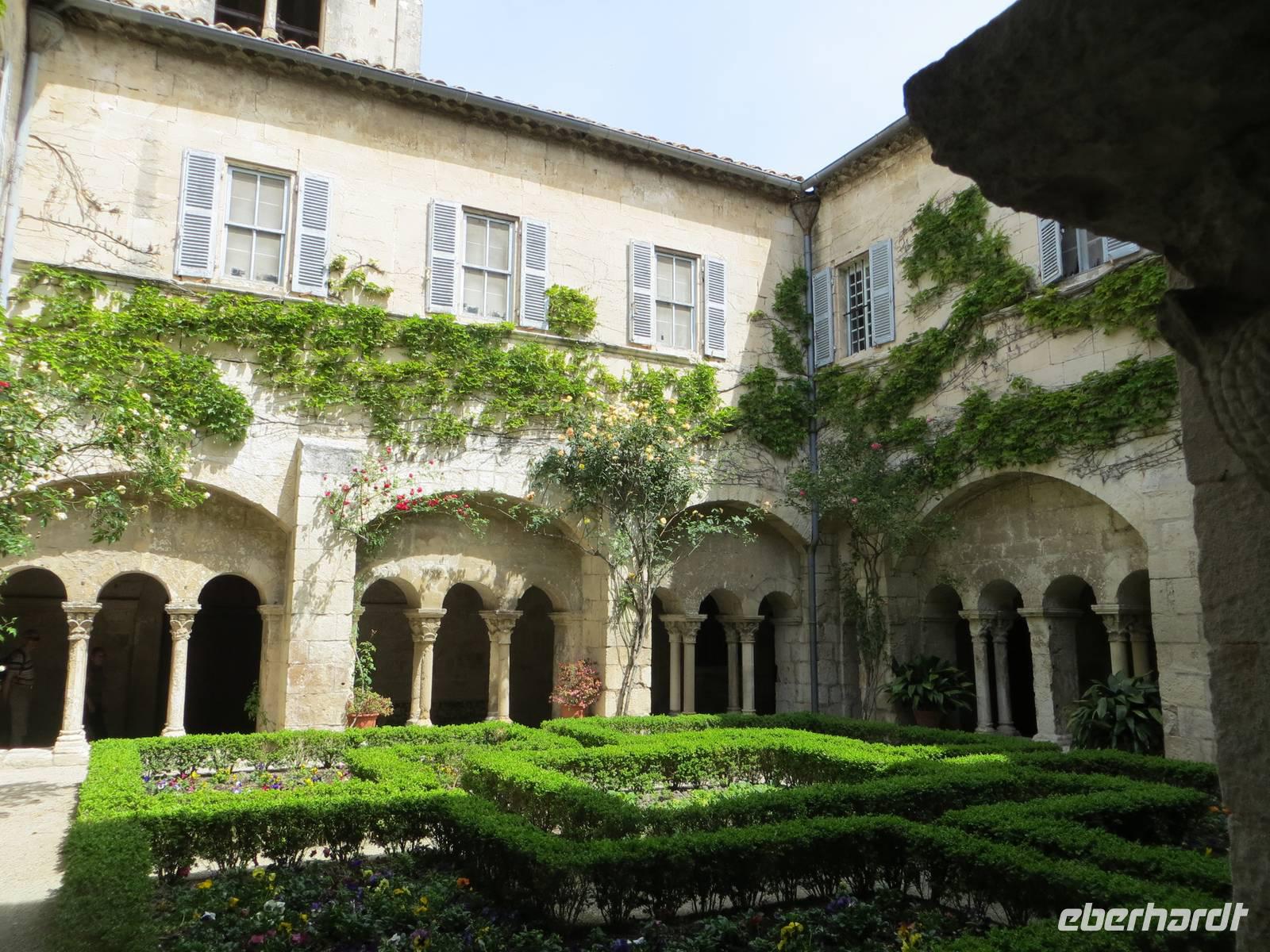 Am Vormittag erwartete uns eine der größten Burganlagen Frankreichs, Le Baux, die sich seit 1641 im Besitz der Grimaldis, des monegassischen Fürstenhauses, befindet. Von unten betrachtet, glaubt man kaum, in welcher Größe diese Burganlage den Felsen einnimmt. Mit Audioguide bewaffnet reichte kaum die Zeit, um all die historischen Texte zu hören, zu schauen und zu fotografieren. Auch das sich an den Felsen anpassende Dorf ist hübsch anzuschauen und ein Blick in die Ebene und in den Höhenzug der Alpilles ist wichtig für den Landschaftseindruck. Gegen Mittag erreichten wir am Stadtrand von St. Remy das kleine Kloster St. Paul, wo 1889/90 Vincent van Gogh sich aufhielt und den damaligen Auffassungen entsprechend psychiatrisch behandelt wurde. Bereits auf dem Zugang zum kleinen Museum wurde mit Bildern van Gogh in der Landschaft auf hier entstandene Gemälde aufmerksam gemacht: der Olivenhain direkt im Olivenhain, die Iris über einer Pflanzung von (leider bereits verblühten) Iris; natürlich auch der Sternenhimmel bei St. Remy, das bekannte Selbstbildnis Selbstbildnis und andere. Im Klostergebäude mit schönem Kreuzgang ist das einstige Zimmer van Goghs aufgebaut - ein perfekter Eindruck über das Schaffen des großen Impressionisten. Anschließend besichtigten wir „Les Antiques" - Mausoleum, Triumphtor und dann die Ausgrabungen der alten Römerstadt - entstanden vor mehr als zweitausend Jahren, als die „Provincia" zum Römischen Reich gehörte.