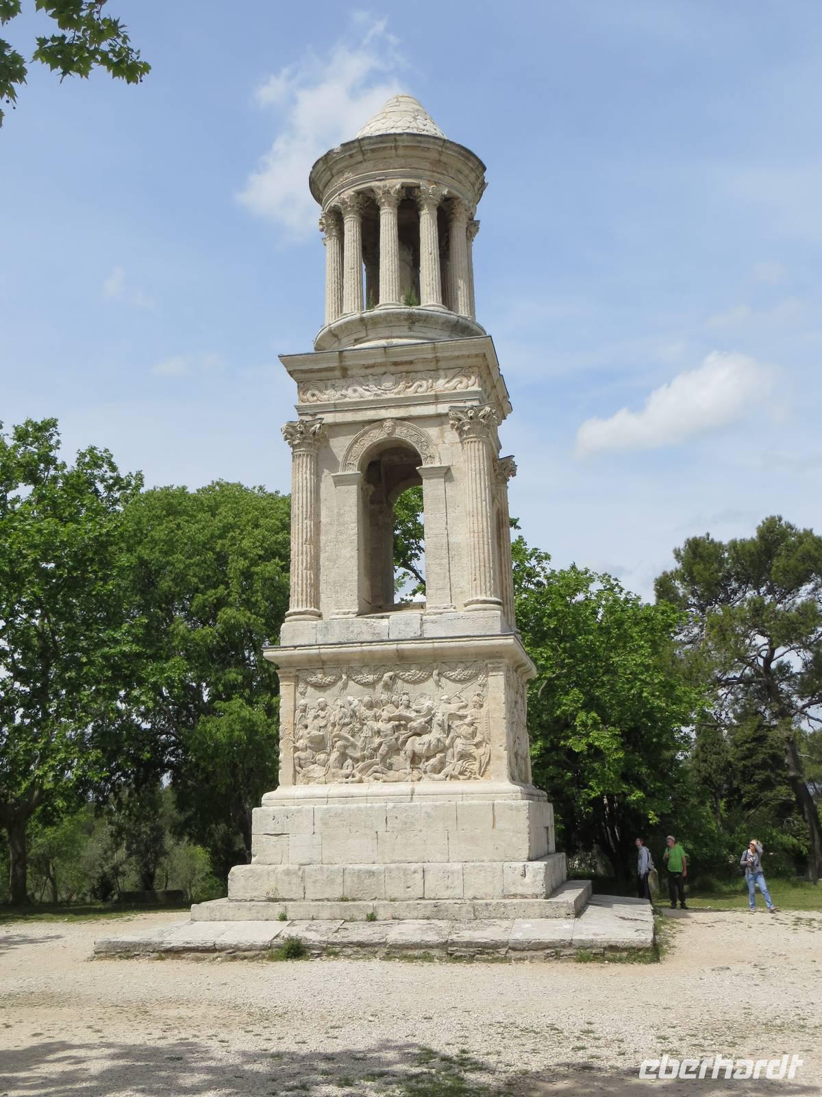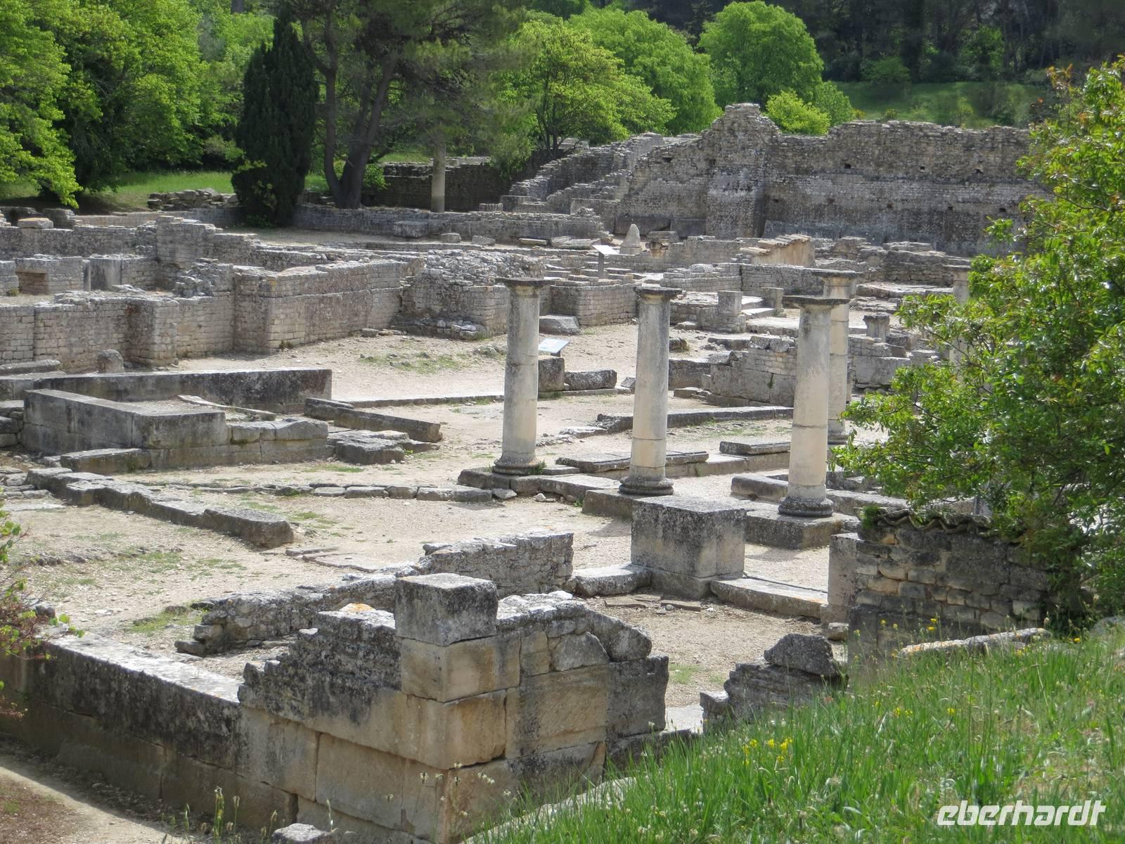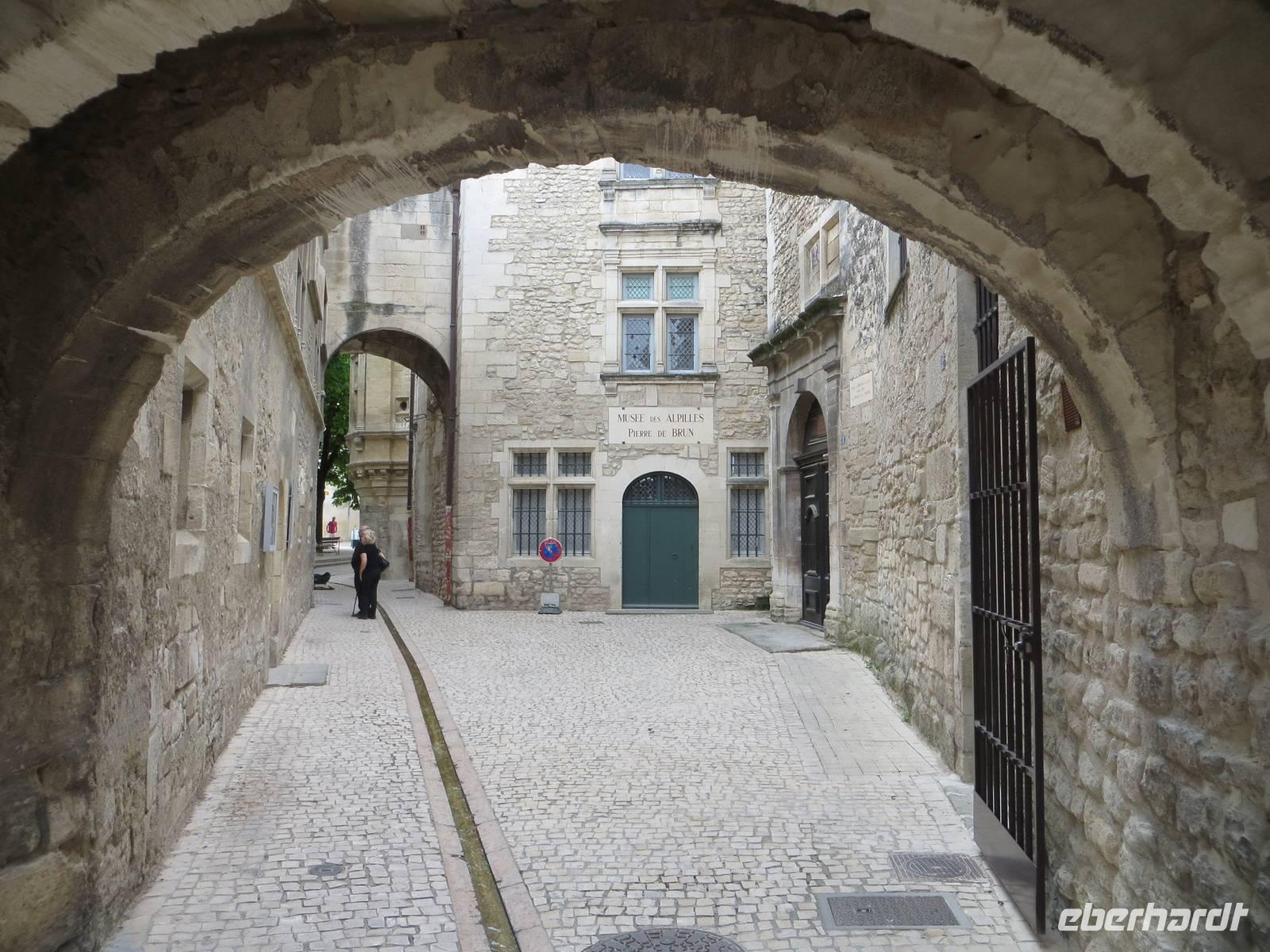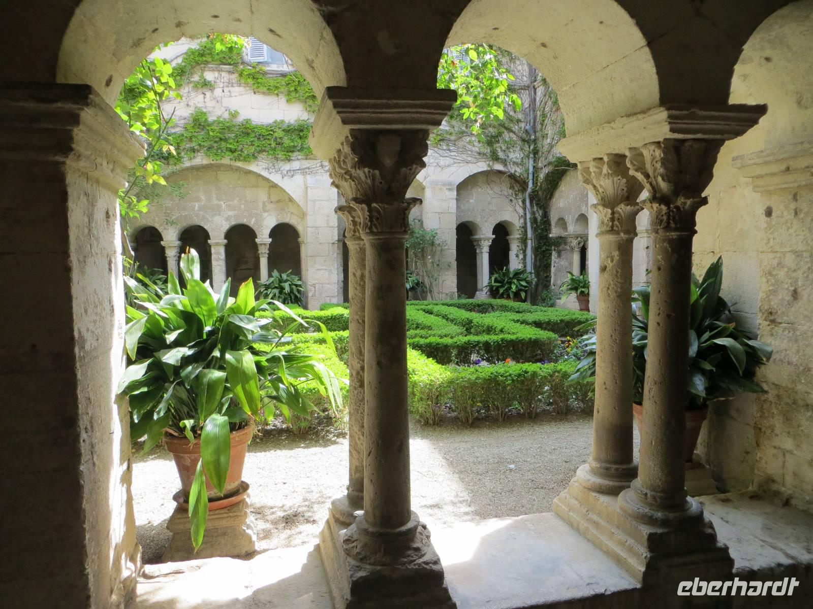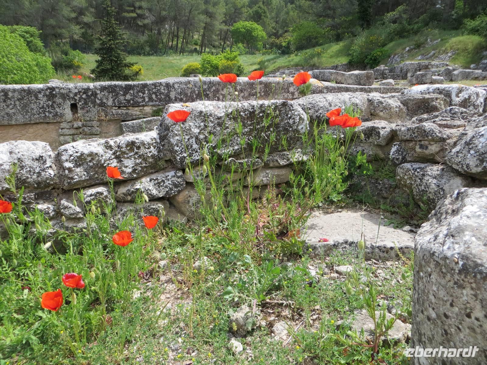 Am Vormittag erwartete uns eine der größten Burganlagen Frankreichs, Le Baux, die sich seit 1641 im Besitz der Grimaldis, des monegassischen Fürstenhauses, befindet. Von unten betrachtet, glaubt man kaum, in welcher Größe diese Burganlage den Felsen einnimmt. Mit Audioguide bewaffnet reichte kaum die Zeit, um all die historischen Texte zu hören, zu schauen und zu fotografieren. Auch das sich an den Felsen anpassende Dorf ist hübsch anzuschauen und ein Blick in die Ebene und in den Höhenzug der Alpilles ist wichtig für den Landschaftseindruck. Gegen Mittag erreichten wir am Stadtrand von St. Remy das kleine Kloster St. Paul, wo 1889/90 Vincent van Gogh sich aufhielt und den damaligen Auffassungen entsprechend psychiatrisch behandelt wurde. Bereits auf dem Zugang zum kleinen Museum wurde mit Bildern van Gogh in der Landschaft auf hier entstandene Gemälde aufmerksam gemacht: der Olivenhain direkt im Olivenhain, die Iris über einer Pflanzung von (leider bereits verblühten) Iris; natürlich auch der Sternenhimmel bei St. Remy, das bekannte Selbstbildnis Selbstbildnis und andere. Im Klostergebäude mit schönem Kreuzgang ist das einstige Zimmer van Goghs aufgebaut - ein perfekter Eindruck über das Schaffen des großen Impressionisten. Anschließend besichtigten wir „Les Antiques" - Mausoleum, Triumphtor und dann die Ausgrabungen der alten Römerstadt - entstanden vor mehr als zweitausend Jahren, als die „Provincia" zum Römischen Reich gehörte.