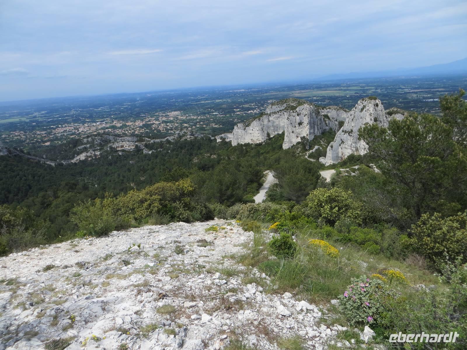 Von Glanum starteten wir zu unserer kleinen Wandertour in die Alpilles. Durch ein Tälchen ging es zweihundert Höhenmeter hinauf, um dann nochmals zu einem Aussichtspunkt aufzusteigen. Die überaus lohnenswerte Rundumsicht über die Provence war der Wanderhöhepunkt des Tages. Am Col erwartete uns Alf mit dem Bus und brachte uns zum individuellen Nachmittagsbummeln nach St. Remy de Provence, einer hübschen Kleinstadt, in der auch Nostredamus im 15. Jahrhundert lebte.