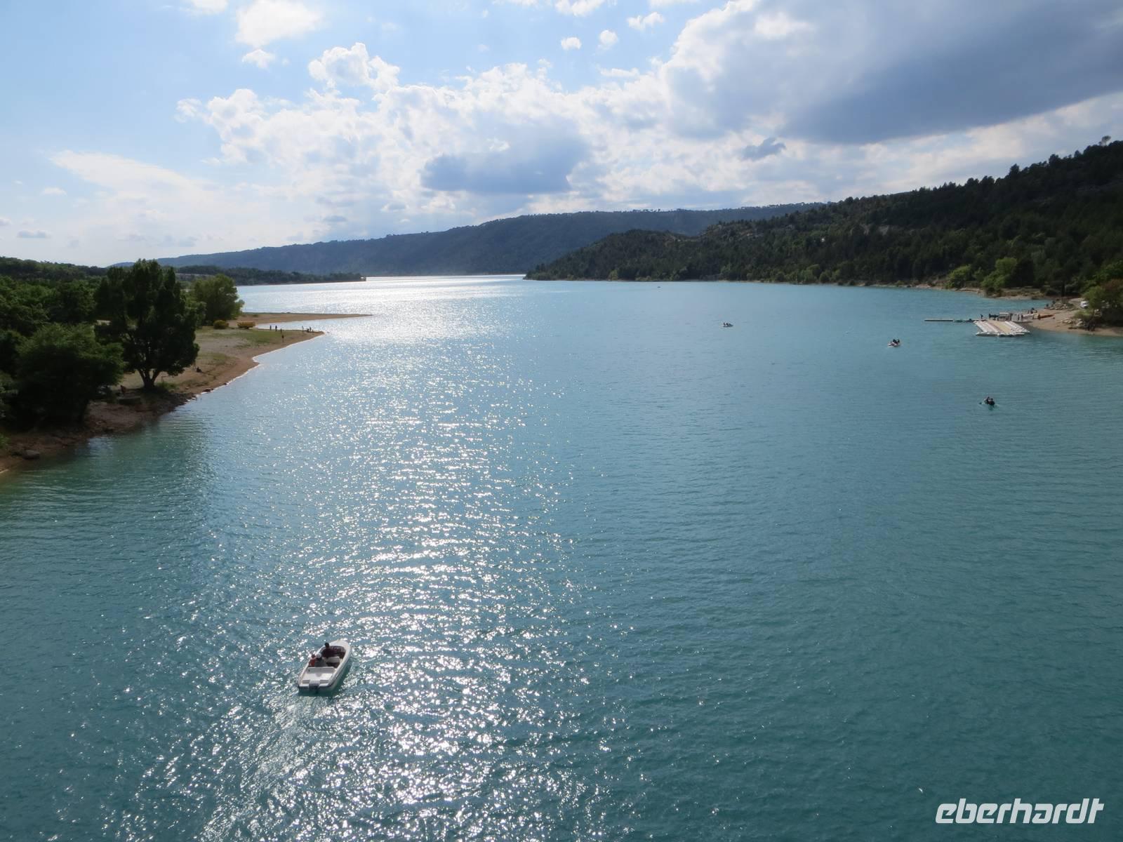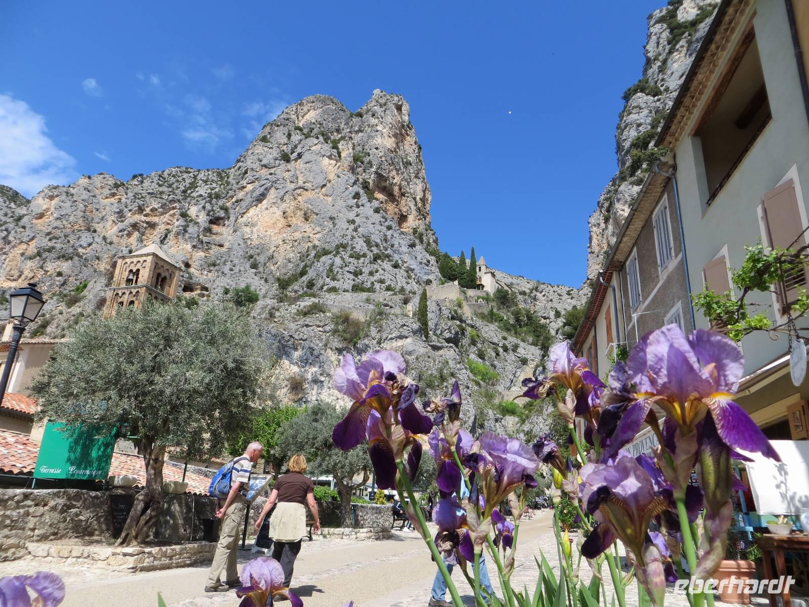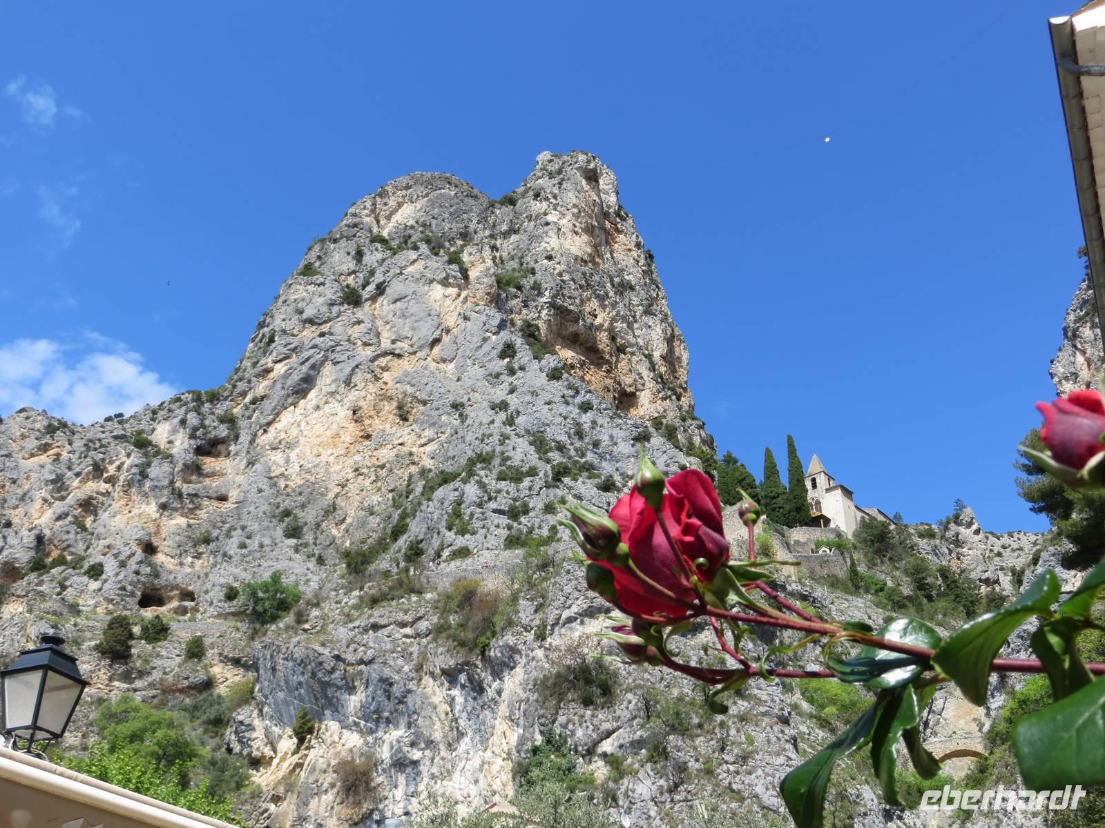 Wir lagen bei unserer Fahrt in den Osten der Provence gut in der Zeit und konnten einen zusätzlichen Stopp in Moustier St. Marie einlegen. Bereits aus der Ebene fasziniert dieses kleine Dörfchen am Felsenrand mit seiner Kapelle hoch oben in den Felsen. Zeit für einen Aufstieg, einen Kaffee im Ort oder die Suche nach einem Souvenir. Schönstem Spätnachmittagslicht machten wir dann noch einen Fotostopp an der Einmündung des Verdon in den Stausee Lac Croix. Zeitiges Kommen sicherte heute noch allen, die es wollten einen Bummel an den See bevor es zum Abendessen ging. Auf dem Weg ins Bett begleitete ein später Lichtschein hoch oben in den Felsen des Naturparkes Verdon.