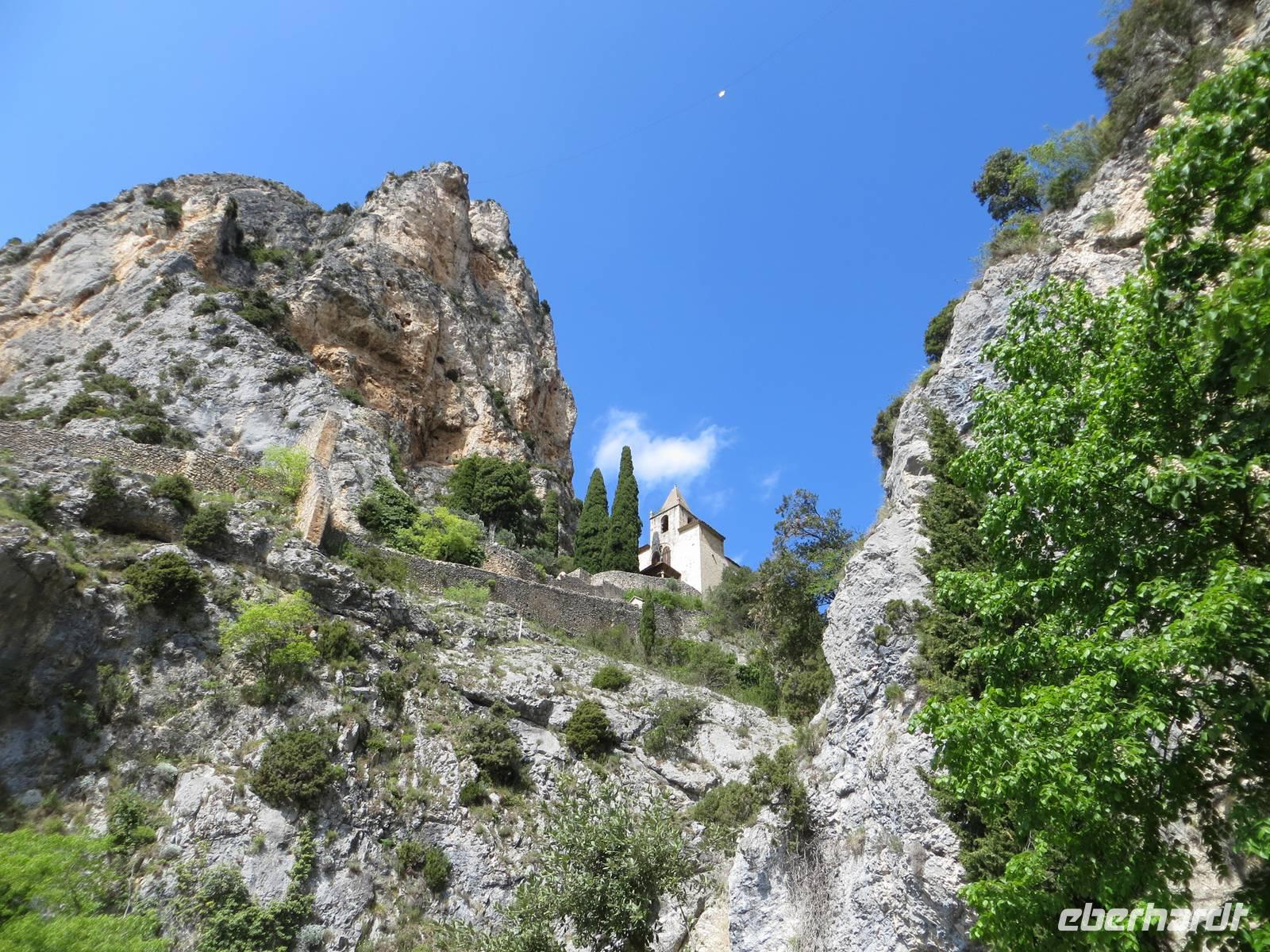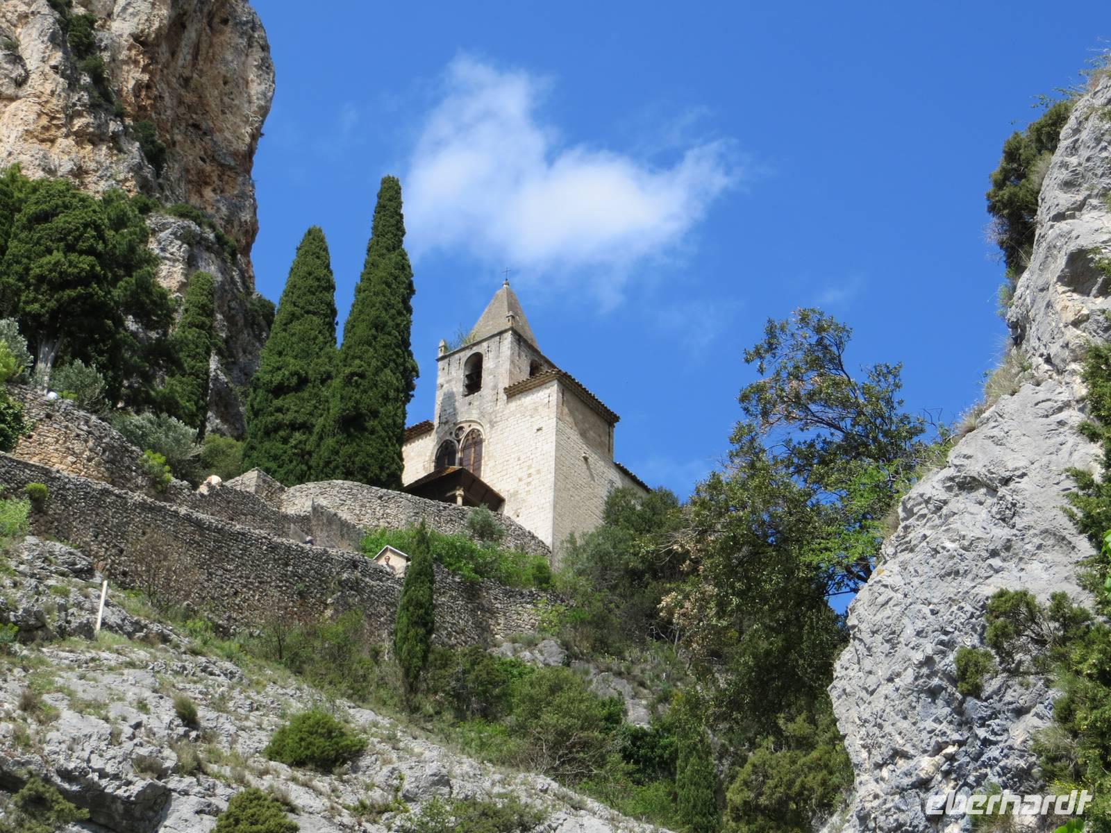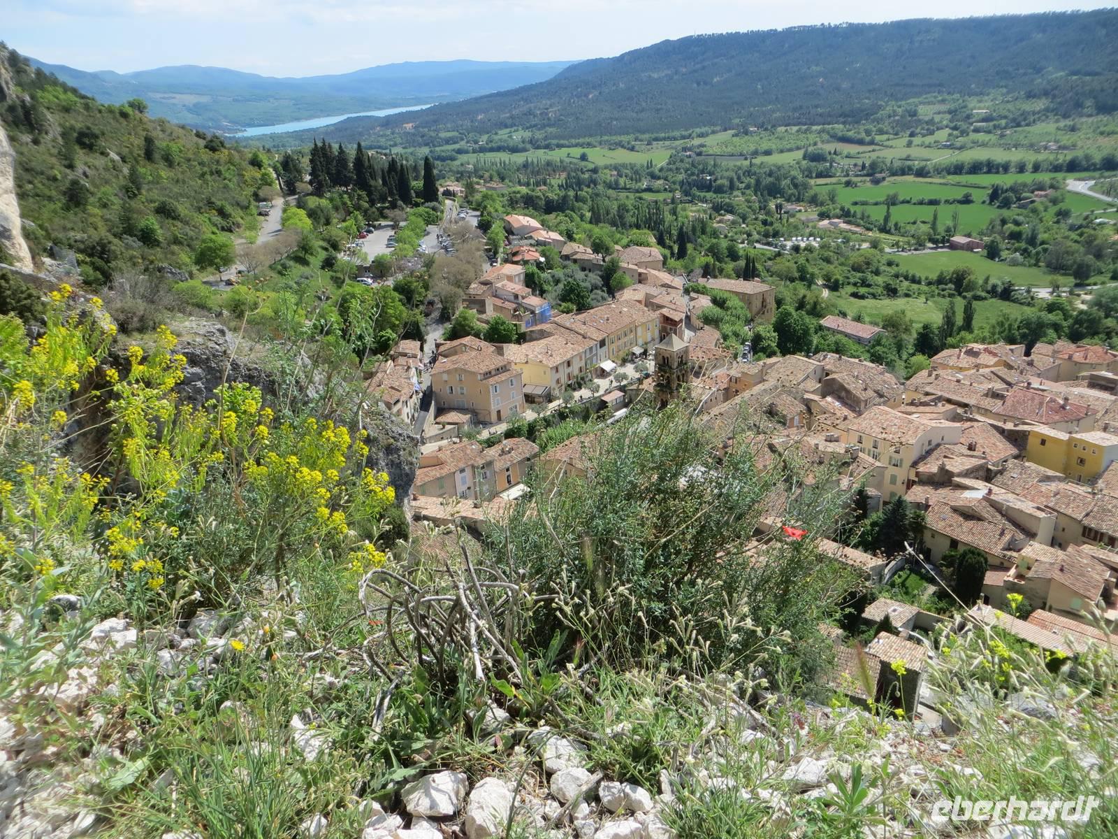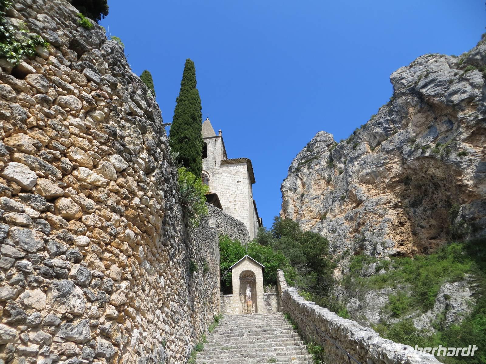 Wir lagen bei unserer Fahrt in den Osten der Provence gut in der Zeit und konnten einen zusätzlichen Stopp in Moustier St. Marie einlegen. Bereits aus der Ebene fasziniert dieses kleine Dörfchen am Felsenrand mit seiner Kapelle hoch oben in den Felsen. Zeit für einen Aufstieg, einen Kaffee im Ort oder die Suche nach einem Souvenir. Schönstem Spätnachmittagslicht machten wir dann noch einen Fotostopp an der Einmündung des Verdon in den Stausee Lac Croix. Zeitiges Kommen sicherte heute noch allen, die es wollten einen Bummel an den See bevor es zum Abendessen ging. Auf dem Weg ins Bett begleitete ein später Lichtschein hoch oben in den Felsen des Naturparkes Verdon.