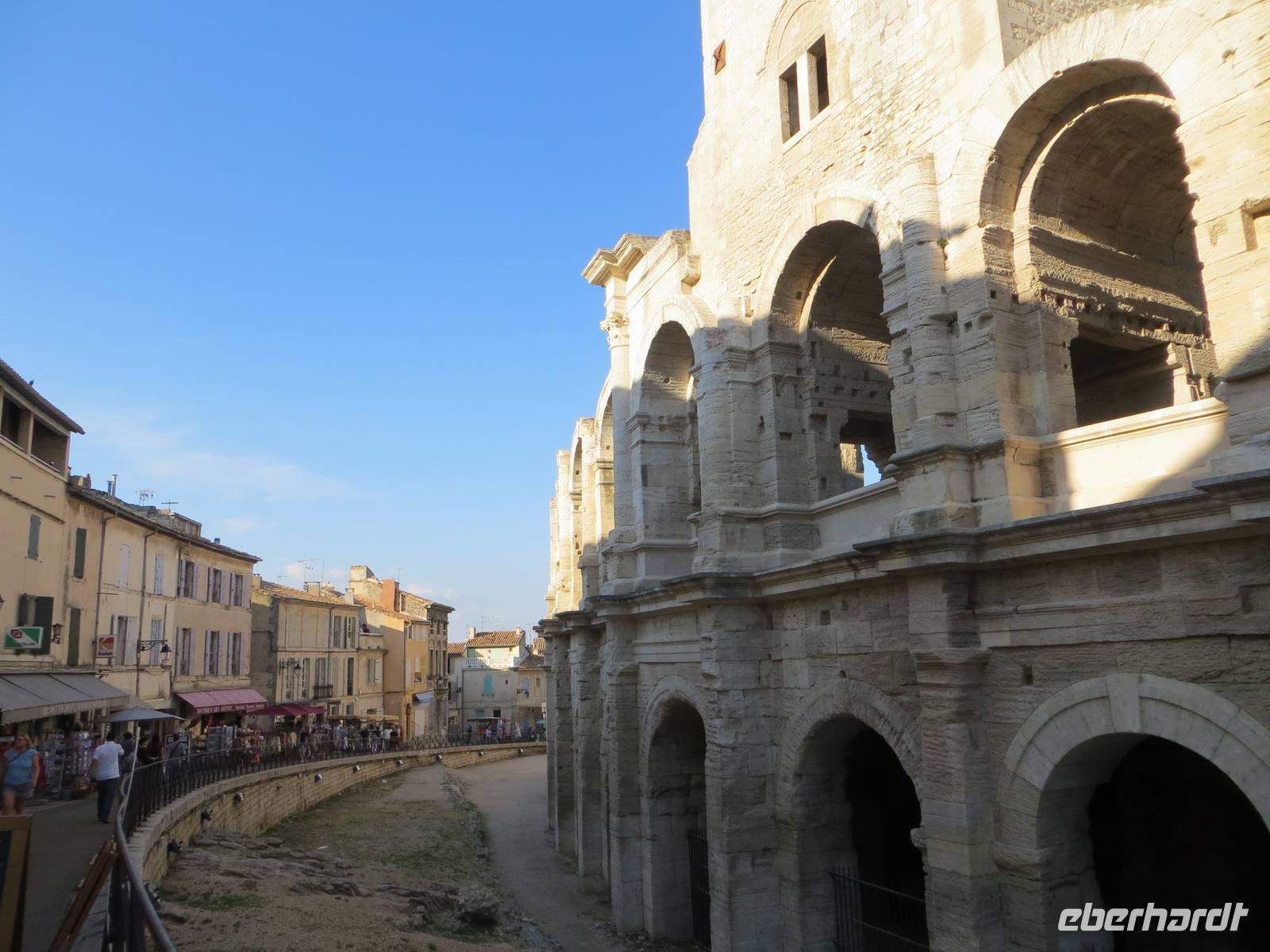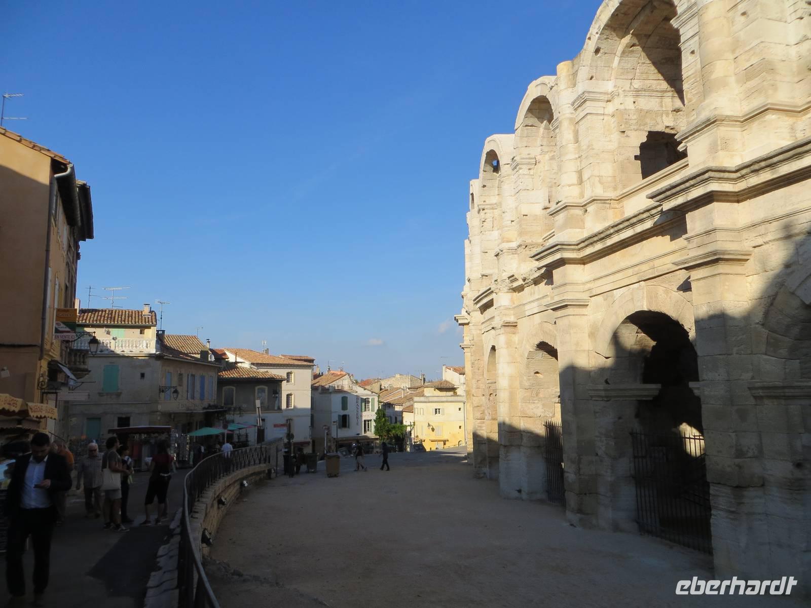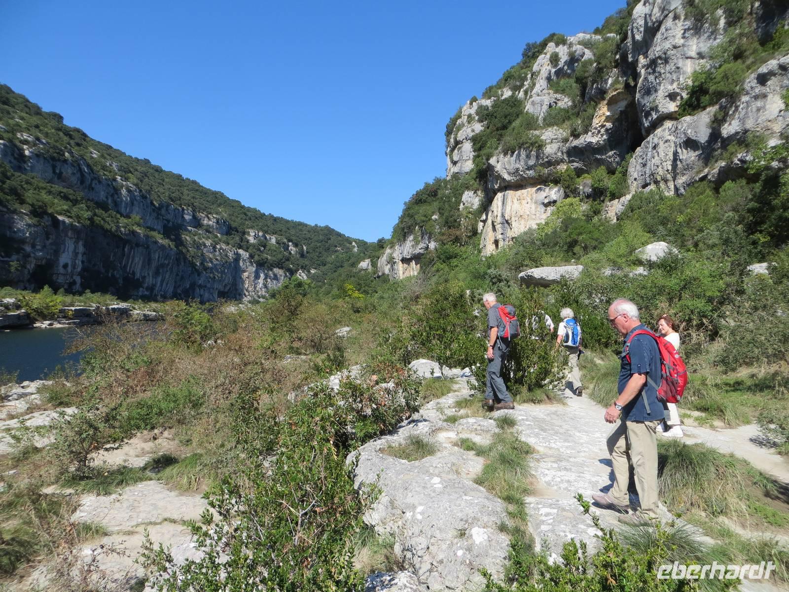 Von Chalon sur Saone ging es die Route Soleil Richtung Süden; in Lyon wählten wir den Weg durch die Stadt. Nach reichlich vier Stunden erreichten wir St. Martin. In Sauze an der der Ardeche starteten wir unsere kleine Kennenlerntour. Direkt am Ufer der Ardeche ging es in die Schlucht. Nach einem Kilometer wurde es zunehmend enger im Tal, aber auch anstrengender. Über uns stiegen die Felsen hundert Meter auf. Teils im niedrigen Gebüsch, teils frei stiegen wir hinunter zum Fluss und erfreuten uns auf einer Kiesaufschüttung der Schlucht und das Wasserlaufs und erinnerten uns an vergangene Wandererlebnisse zwischen Irland und der Slowakei und so einstiger Fitness und Jugendlichkeit. Mit dem Bus ging es dann über die Panoramastraße entlang der Ardeche mit mehreren Fotostopps. Einzigartige Situation am Pont d' Arc - am knappen Aussichtspunkt vis a vis ergab sich die Chance zum Halt und für Fotos. In großer Runde fuhren wir über Vallon Pont d' Arc, Ales, Nimes nach Arles auf den letzten Kilometern mit etwas Camargue-Stimmung. Hier fanden wir recht bald unser Hotel Arles Plazza für die kommenden Nächte. (Wanderung 3 km, leicht)