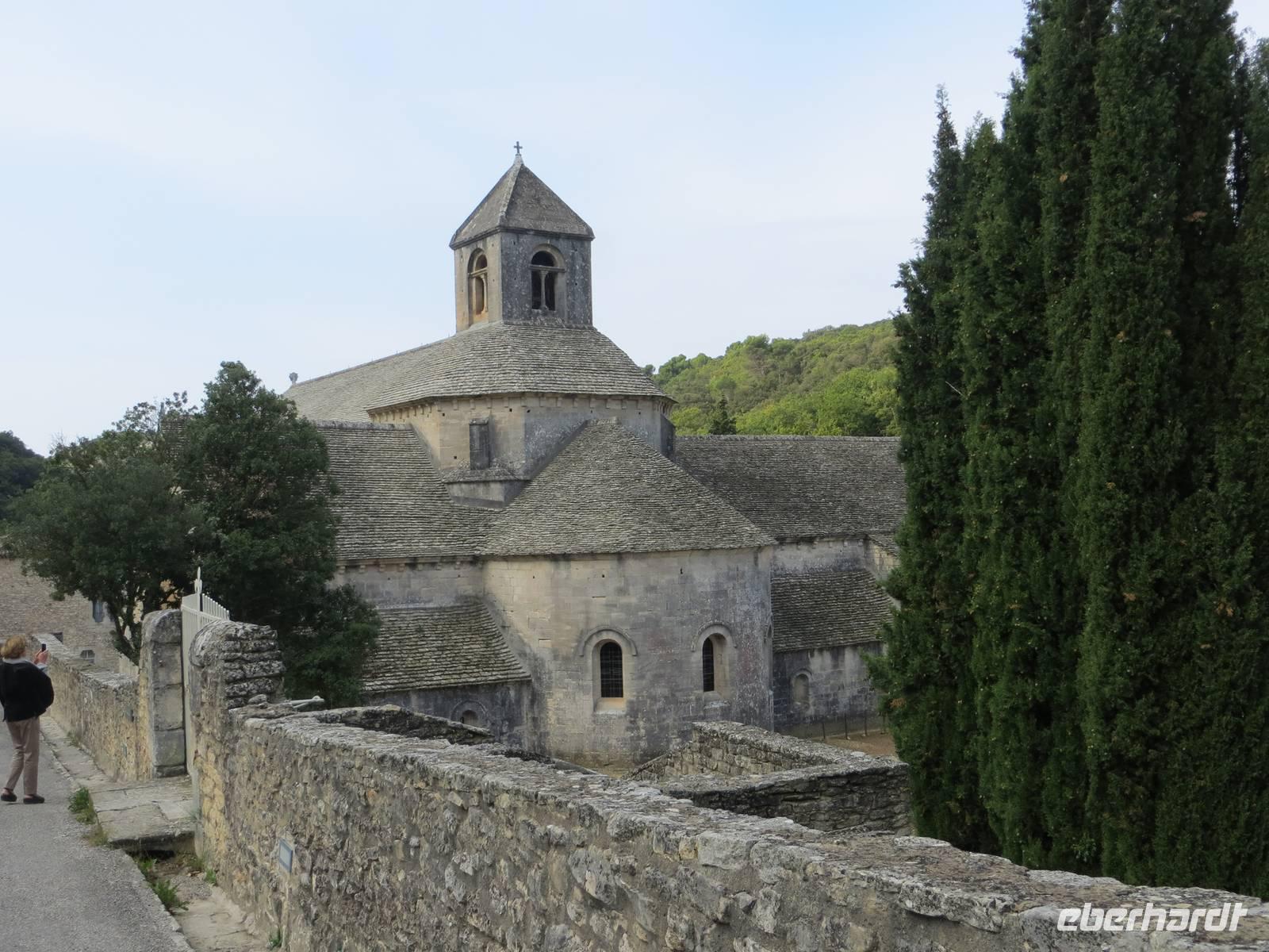 Erst seit dem 20. Jahrhundert ist das Zisterzienserkloster Senanque an das Straßennetz angeschlossen; für Busse heißt dies einem Einbahnstraßennetz zu folgen. So starteten wir die Tour am Kloster Senanque und schickten unseren Bus schon auf der Umfahrungsstrecke nach Gordes. Wir erreichten kurz vor zehn Uhr das Klostergelände, es war Sonntag - die Glocke rief zur Hl.Messe und zweihundert Gläubige in der Kirche bereits versammelt. Wir betraten die romanische Kirche gerade rechtzeitig um die kleine Prozession der Zisterziensermönche zu sehen und den Beginn der Messer zu verfolgen. Vor Beginn der Wanderung war dann noch Zeit für die Suche nach den besten Fotomotiven am Kloster, wenn auch der Lavendel ringsum schon abgeerntet war. Leicht aufwärts folgten wir einem Weg und konnten vom Hügel noch besser die Lage des Klosters im Tale erkennen. Bald schon ging es durch alte und wiedererrichtete Trockenmauern hindurch, hinter denen sich einige Borries - kegelartige Häuschen aus geschichteten Steinen - verbargen, nach Gordes. Eines der schönsten Dörfer Frankreichs liegt unterhalb einer alten Burganlage auf einem Felsensporn. Heut wird das gut rekonstruierte Dorf durch Künstler, vor allem aber durch Touristen bestimmt. Am Nachmittag besuchten wir die provencialische Hauptstadt Avignon. Jeder hatte ausreichend Freiraum zum Bummeln in den Gassen, einem Besuch im Papstpalast , dem Kleinen Palais mit Gemäldegalerie oder einem Gang zur „Brücke von Avignon", der Brücke St. Benezet.(Wanderung 4 km, leicht)