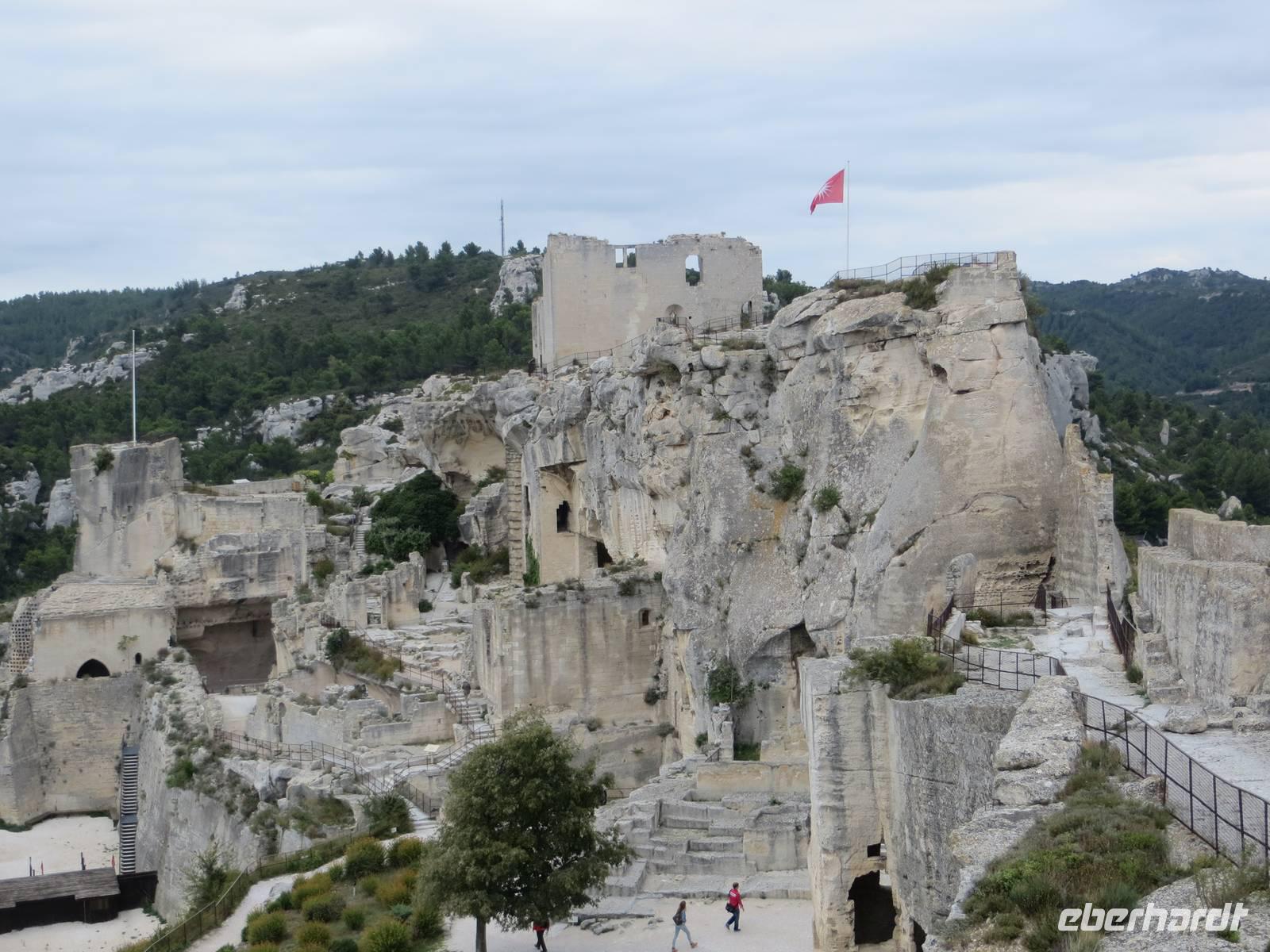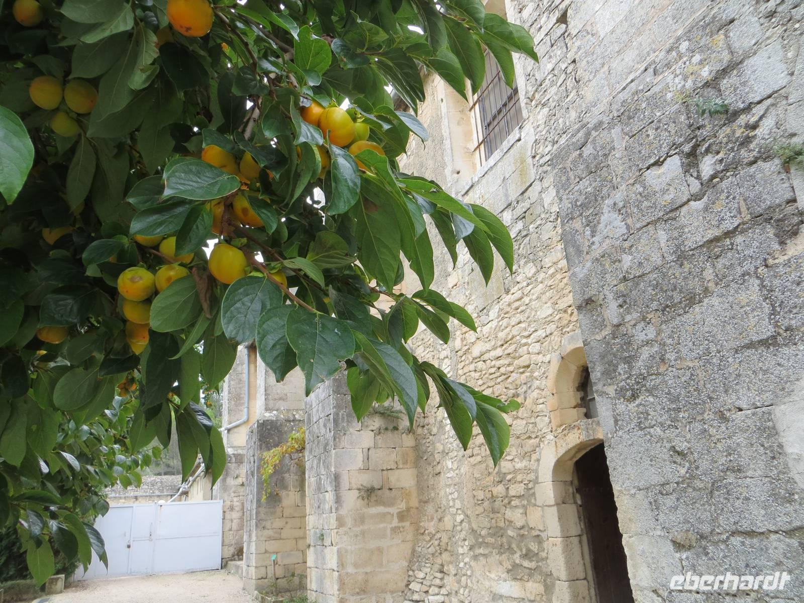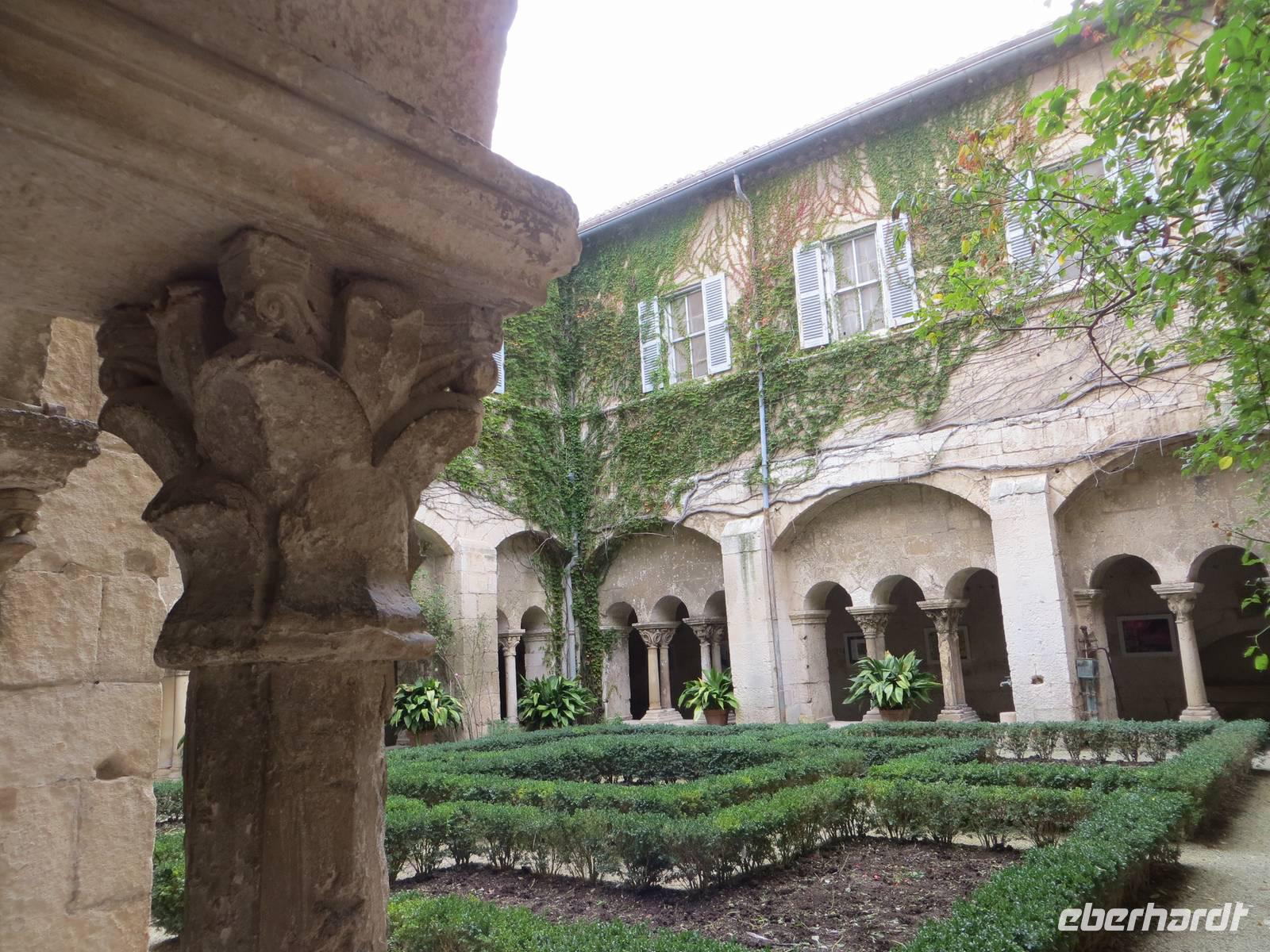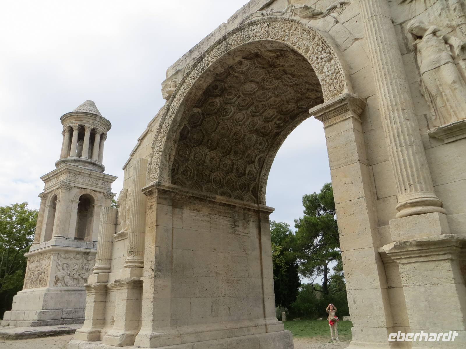 Am Vormittag erwartete uns eine der größten Burganlagen Frankreichs, Le Baux, die sich seit 1641 im Besitz der Grimaldis, des monegassischen Fürstenhauses, befindet. Von unten betrachtet, glaubt man kaum, in welcher Größe diese Burganlage den Felsen einnimmt. Mit Audioguide bewaffnet reichte kaum die Zeit, um all die historischen Texte zu hören, zu schauen und zu fotografieren. Auch das sich an den Felsen anpassende Dorf ist hübsch anzuschauen und ein Blick in die Ebene und in den Höhenzug der Alpilles ist wichtig für den Landschaftseindruck. Gegen Mittag erreichten wir am Stadtrand von St. Remy das kleine Kloster St. Paul, wo 1889/90 Vincent van Gogh sich aufhielt und den damaligen Auffassungen entsprechend psychiatrisch behandelt wurde. Bereits auf dem Zugang zum kleinen Museum wurde mit Bildern van Gogh in der Landschaft auf hier entstandene Gemälde aufmerksam gemacht: der Olivenhain direkt im Olivenhain, die Iris über Irispflanzen; natürlich auch der Sternenhimmel bei St. Remy, das bekannte Selbstbildnis und andere. Im Klostergebäude mit schönem Kreuzgang ist das einstige Zimmer van Goghs aufgebaut - ein perfekter Eindruck über das Schaffen des großen Impressionisten. Auf dem Feld des van Gogh im Klostergelände weitere Bilder im Klostergarten und zwei riesige Sharoni / Khaki ?-Bäume. Anschließend besichtigten wir „Les Antiques" - Mausoleum und Triumphtor vor den Toren von Glanum - der alten Römerstadt - entstanden vor mehr als zweitausend Jahren, als die „Provincia" zum Römischen Reich gehörte.