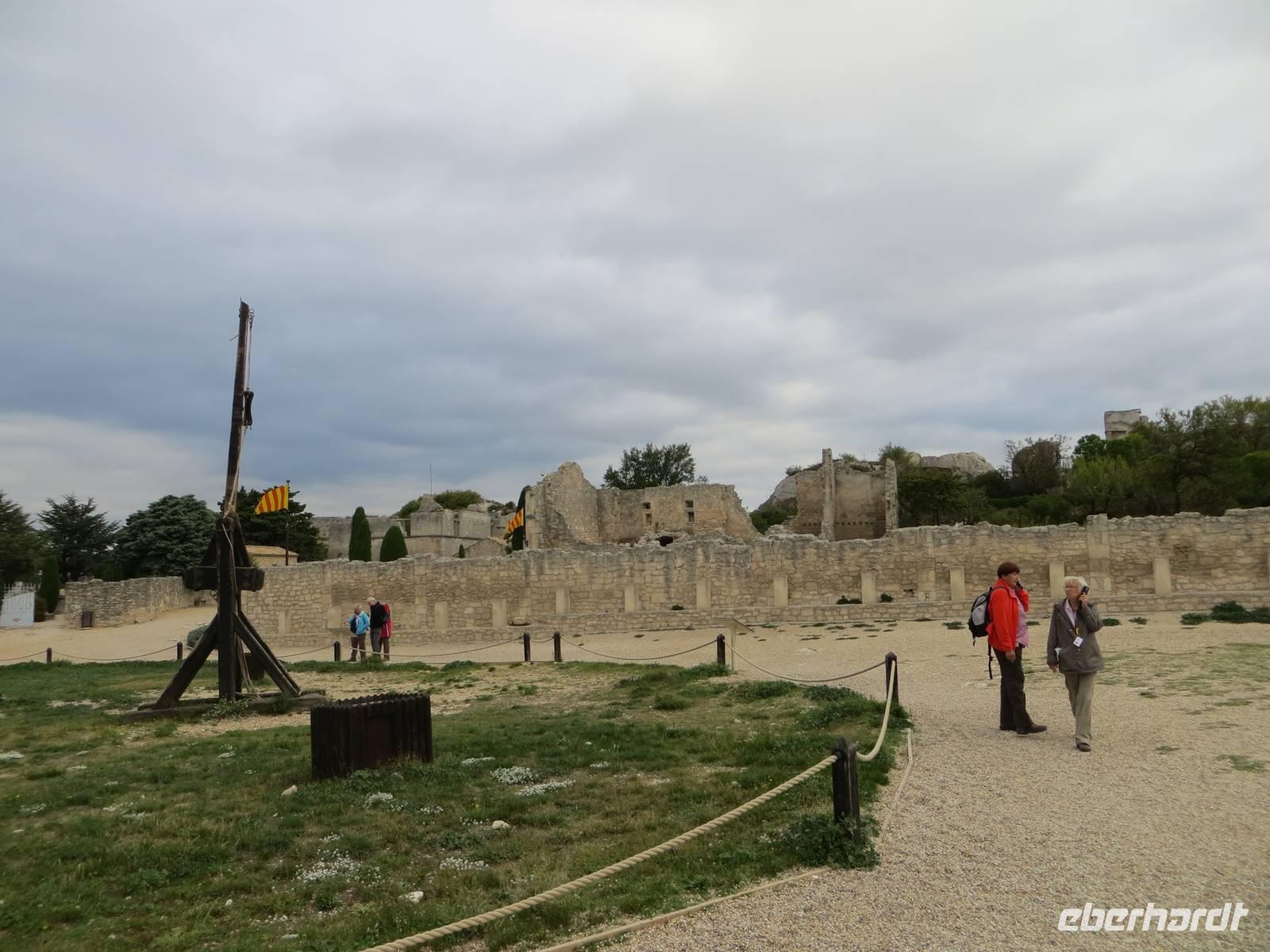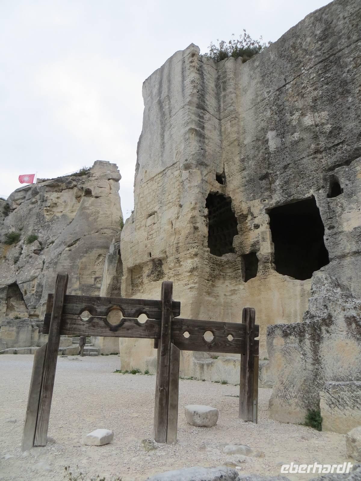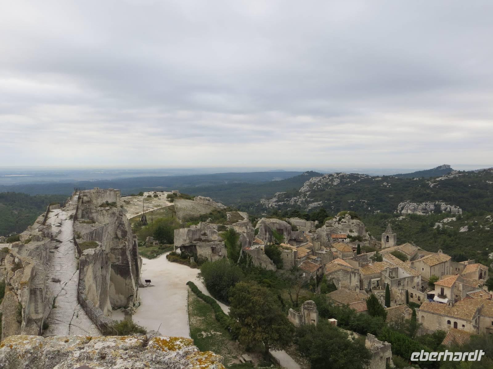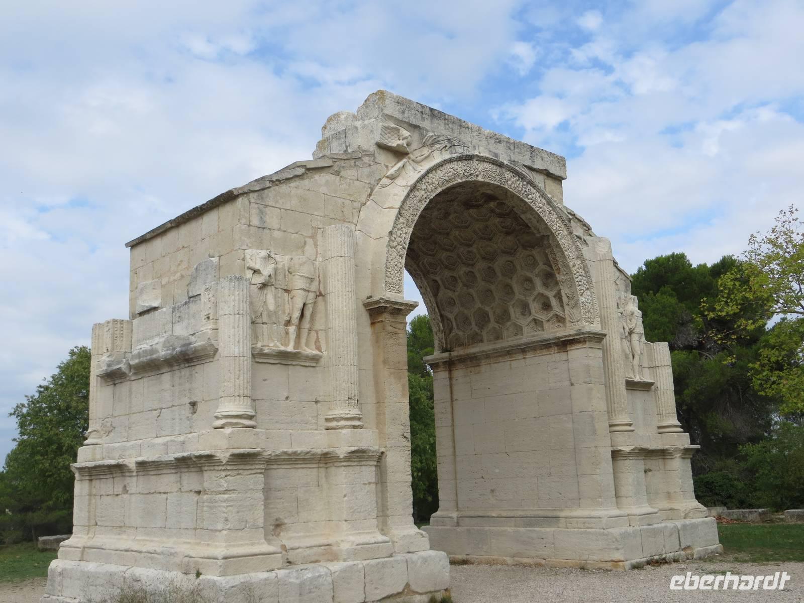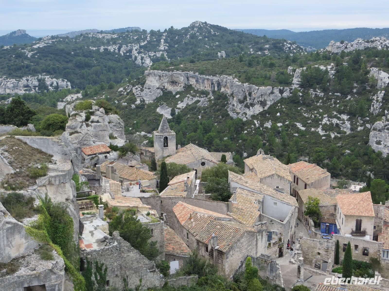 Am Vormittag erwartete uns eine der größten Burganlagen Frankreichs, Le Baux, die sich seit 1641 im Besitz der Grimaldis, des monegassischen Fürstenhauses, befindet. Von unten betrachtet, glaubt man kaum, in welcher Größe diese Burganlage den Felsen einnimmt. Mit Audioguide bewaffnet reichte kaum die Zeit, um all die historischen Texte zu hören, zu schauen und zu fotografieren. Auch das sich an den Felsen anpassende Dorf ist hübsch anzuschauen und ein Blick in die Ebene und in den Höhenzug der Alpilles ist wichtig für den Landschaftseindruck. Gegen Mittag erreichten wir am Stadtrand von St. Remy das kleine Kloster St. Paul, wo 1889/90 Vincent van Gogh sich aufhielt und den damaligen Auffassungen entsprechend psychiatrisch behandelt wurde. Bereits auf dem Zugang zum kleinen Museum wurde mit Bildern van Gogh in der Landschaft auf hier entstandene Gemälde aufmerksam gemacht: der Olivenhain direkt im Olivenhain, die Iris über Irispflanzen; natürlich auch der Sternenhimmel bei St. Remy, das bekannte Selbstbildnis und andere. Im Klostergebäude mit schönem Kreuzgang ist das einstige Zimmer van Goghs aufgebaut - ein perfekter Eindruck über das Schaffen des großen Impressionisten. Auf dem Feld des van Gogh im Klostergelände weitere Bilder im Klostergarten und zwei riesige Sharoni / Khaki ?-Bäume. Anschließend besichtigten wir „Les Antiques" - Mausoleum und Triumphtor vor den Toren von Glanum - der alten Römerstadt - entstanden vor mehr als zweitausend Jahren, als die „Provincia" zum Römischen Reich gehörte.