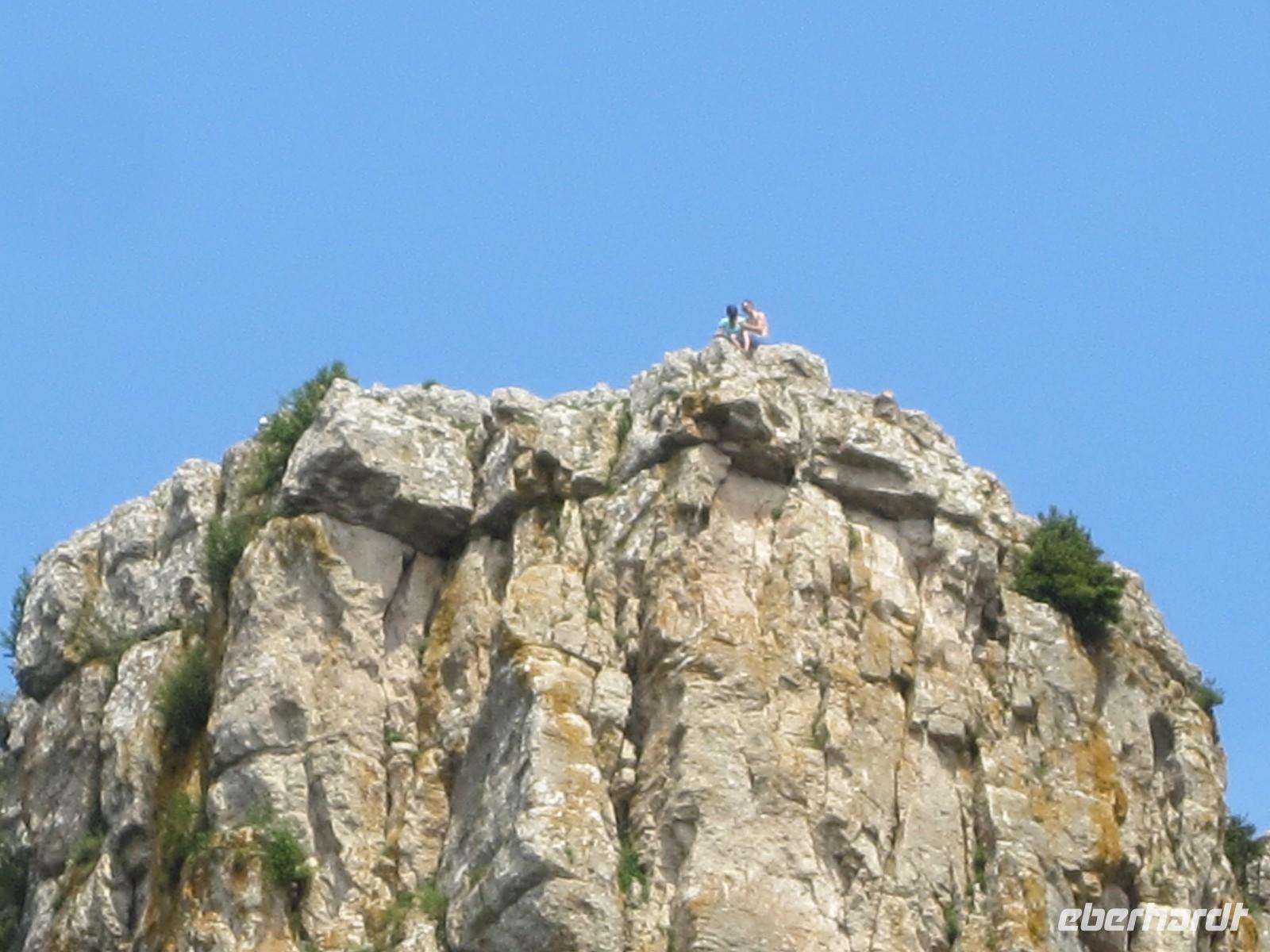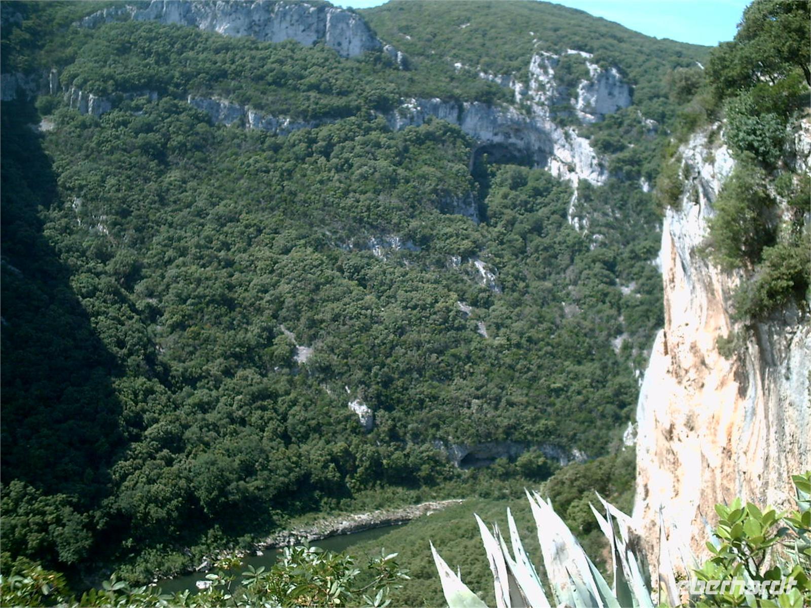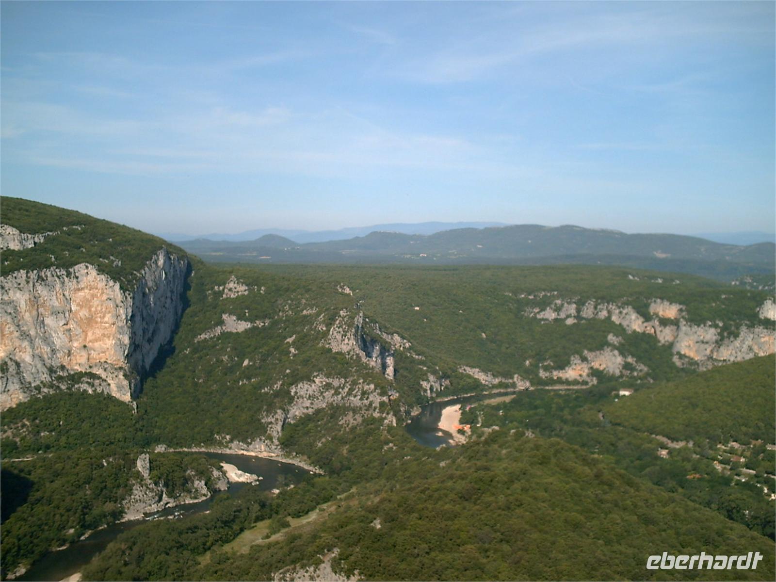Der Ausblick von einem schönen Aussichtspunkt in die atemberauschenden Täler der Ardèche und die vielen Kajaks auf dem Fluss läßt alle verzaubern.