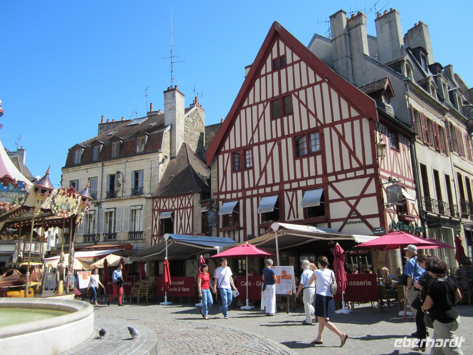 Der heutige Ausflug “Herzöge Burgunds” führt uns nach Dijon, der Stadt, die wir durch den berühmten Senf kennen. Durch die Weinberge geht es diesmal über die “Route des Grands Crus”. Vorbei am Renaissance-Schloß “Clos du Vougeot”, wo ein Fotostopp eingelegt wird, geht es weiter in die historische und heutige Hauptstadt des Burgund. Von hier aus wurde im 14./15. Jahrhundert bereits ein mächtiges Reich regiert, das stets unabhängig vom französischen König sein wollte. Die stolzen Herzöge des Burgunds waren dem französischen König und dem deutschen Kaiser gleichgestellt und förderten die schönen Künste.Diese Stadt erscheint uns ur-französisch. Sie ist einfach bezaubernd.