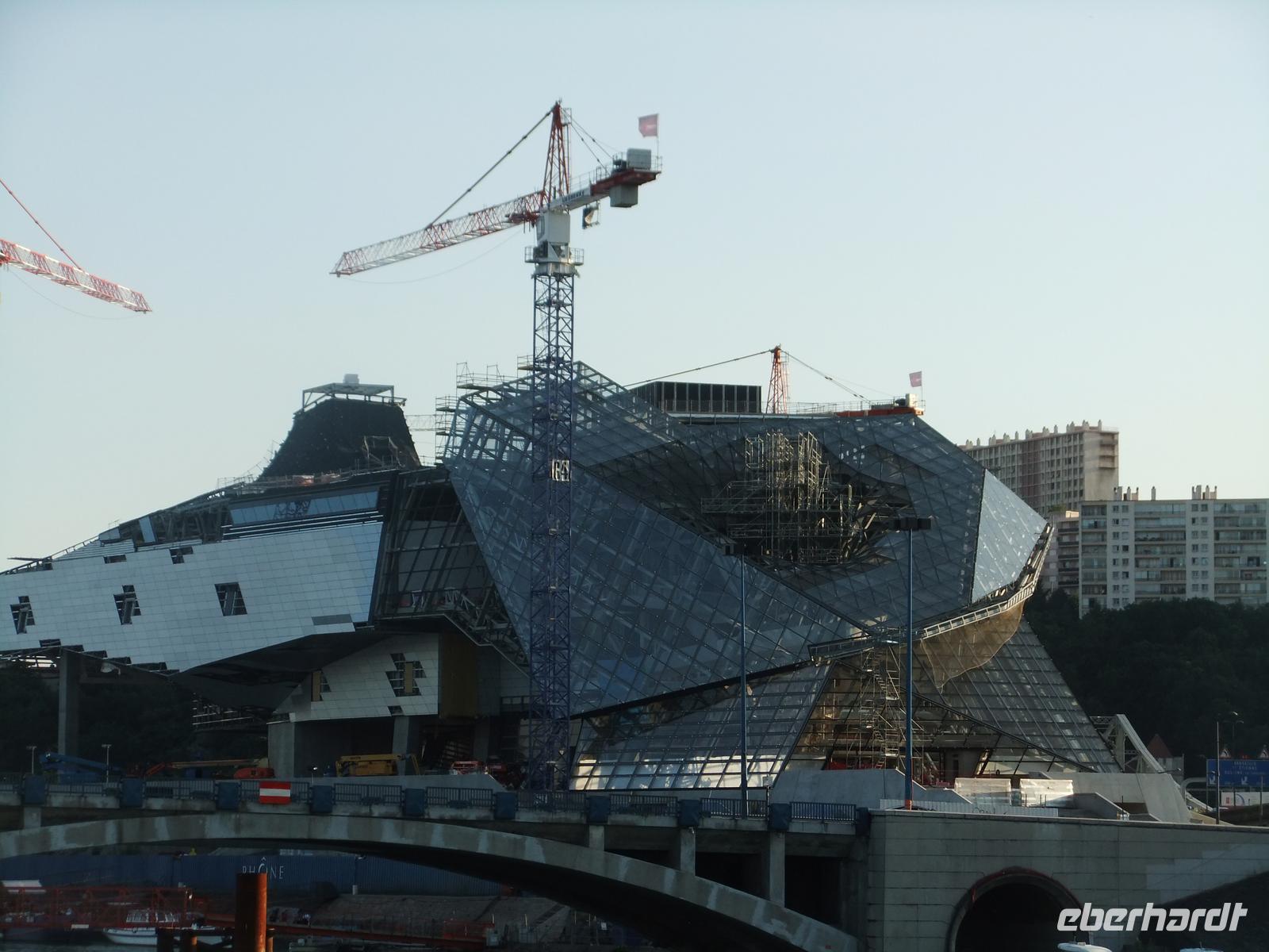 Das Auslaufen auf Lyon ist ein erstes großes Erlebnis. Vom Rhone fährt das Schiff zum Zusammenfluss mit der Saone, wo ein bizarres Gebäude im Bau ist, das Museum des Zusammenflusses. Auf der Saone-Seite haben sich auf ehemaliger Industriebrache Experimentalbauten junger Architekten angesiedelt. Wir fahren am Fourvière-Hügel vorbei, von dem aus zu Römerzeiten die Stadt ihren Ausgang nahm und dem mittelalterliche Handwerkerviertel Vieux Lyon zu dessen Füßen. Später wurde dann die Halbinsel auf der rechten Seite zwischen Saone und Rhone besiedelt, bevor auch der Rhone übersprungen wurde und die Stadt sich weiter nach Osten ausdehnte. Ab das alles werden wir noch später kennenlernen. Während wie schlafen, fährt das Schiff auf der Saone nach Norden