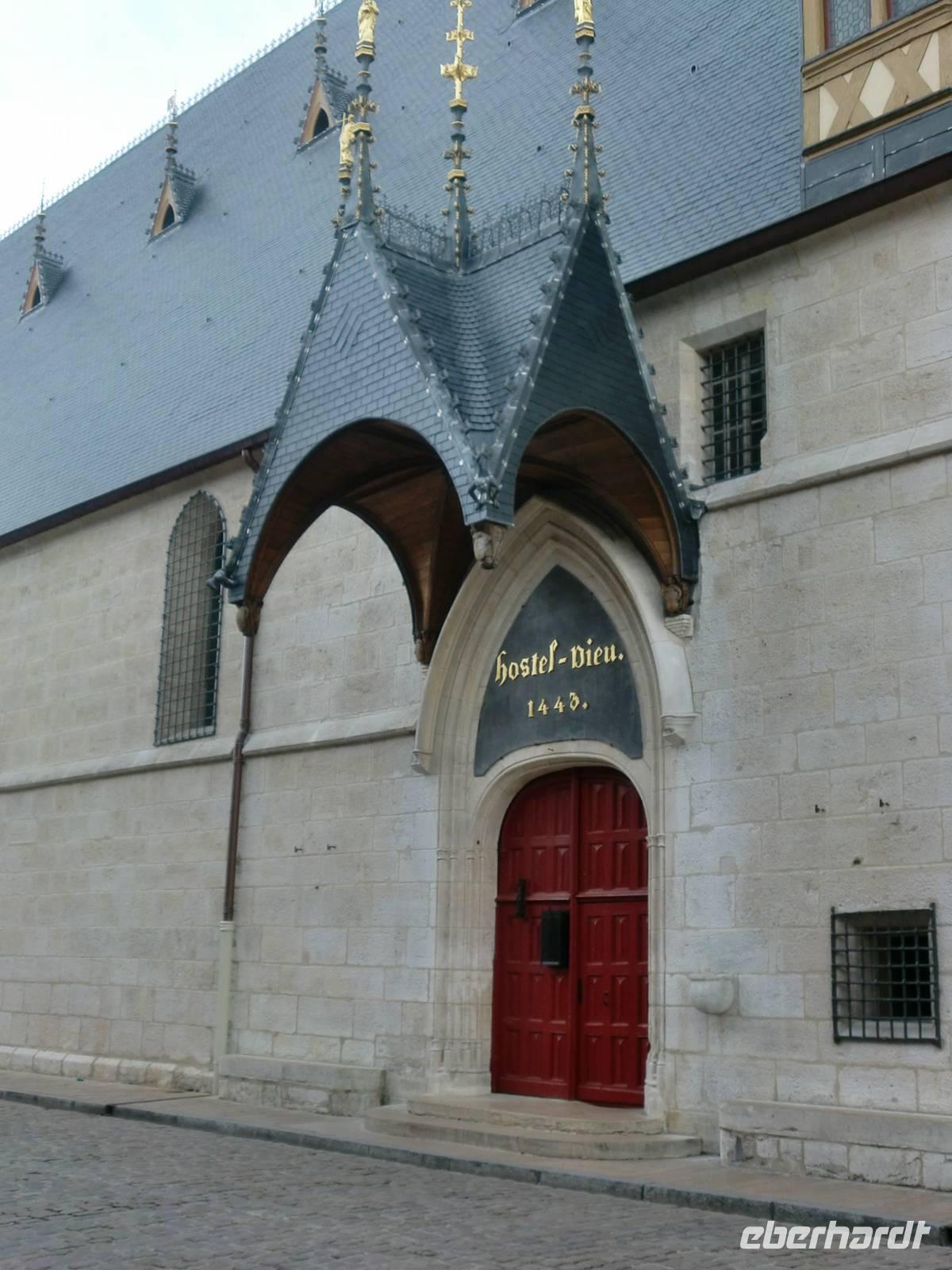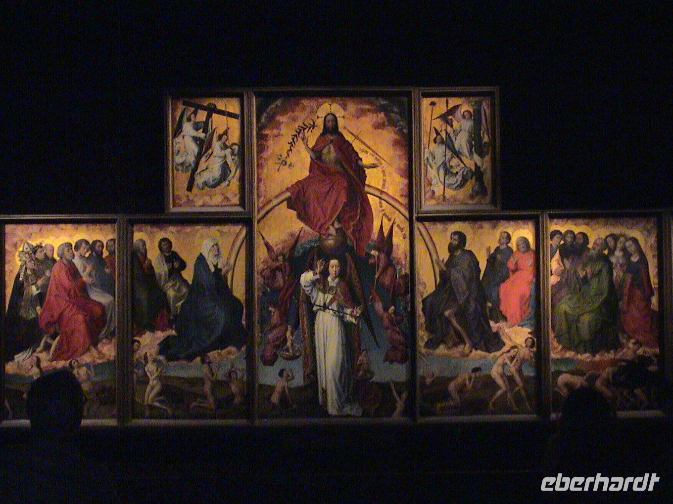 Vor Dijon war Beaune Hauptstadt der Bourgogne. Dieses Zentrum des Weinhandels konnte am Nachmittag besucht werden. Ein Ort, der von einem Mauerring umschlossen ist und im dem uralte Weinkeller zu Kostproben einladen. Das schönste ist allerdings das ehemalige Krankenhaus Hotel Dieu. Es wurde im 15.Jhdt. von Nicolas Rolin, 4 Jahrzehnte Kanzler des Herzogs und einer der reichsten Männer Burgunds, und seiner Frau gestiftet und bestand in dieser Form bis 1971. Der Vergleich der Säle der Armen und der Reichen zeigt, dass Zweiklassenmedizin nicht Erfindung der Neuzeit ist. Einer der schönsten Flügelaltäre des Abendlandes, der Weltgerichtsaltar von Roger van der Weyden, diente der Erbauung der Kranken und der Ermahnung zu wohlgefälligen Lebenswandel. Das Schiff war inzwischen weitergefahren und nahm die Ausflügler in Tournus mit seiner berühmten Abtei St.-Philibert wieder auf, um nach Lyon weiterzufahren.