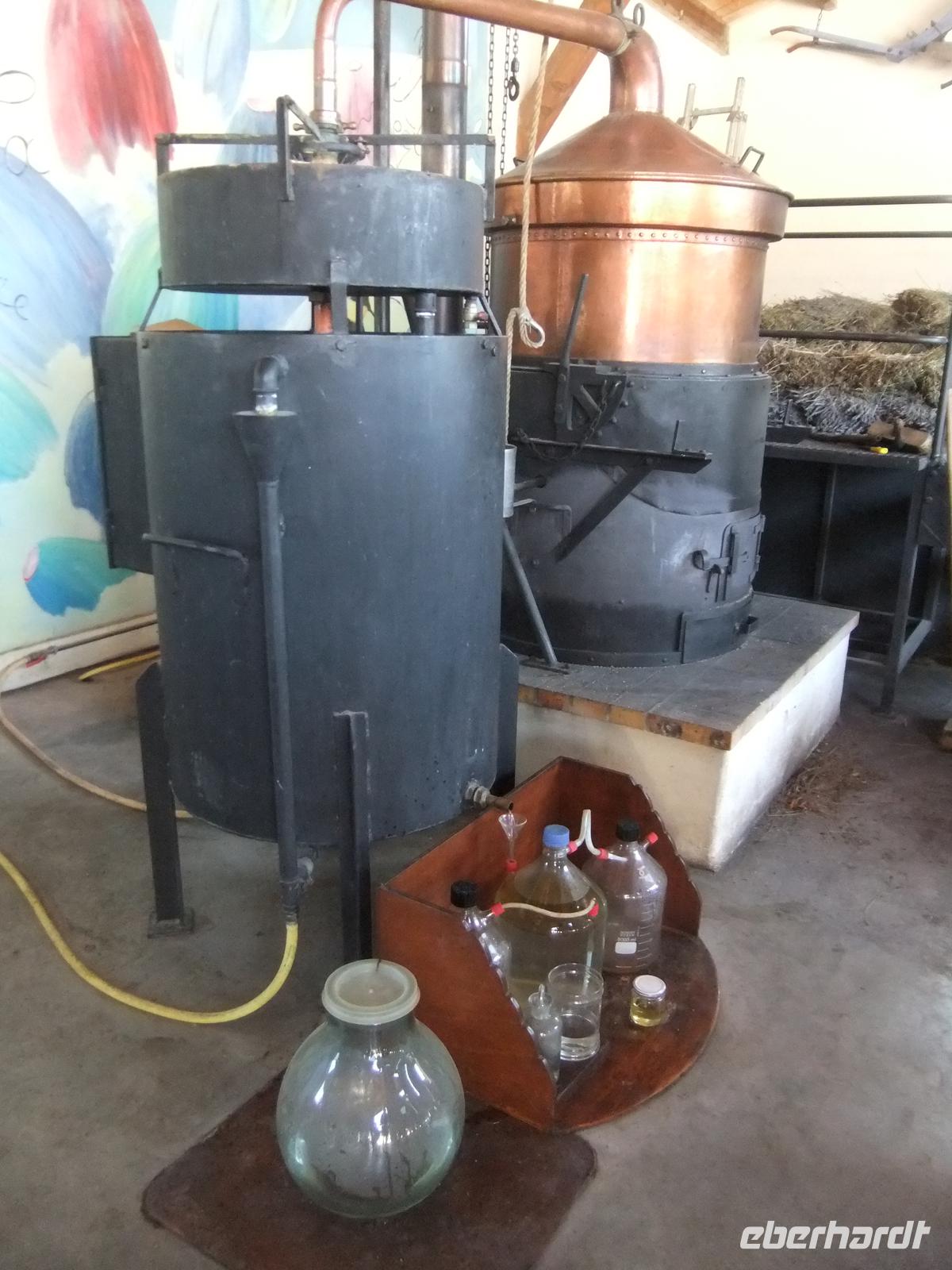 Auf einer Hochebene von ca. 350 m zeigten sich die Lavendelfelder in voller Blüte. Eigentlich ist es der ertragreichere und intensivere duftende Lavandin, der vor allem als Heilmittel eingesetzt wird, währende der echte oder feine Lavendel erst in Höhe ab 600...800 m wächst, vor allem auf der anderen Rhoneseite. Wir erfahren viel über Herstellung und Anwendung des Lavendelöls in einem gut ausgestatteten Museum. Dann bringt uns der Bus hinunter zum Pont d'Arc, einem riesigen, durch den Fluss Ardeche geschaffenes Felsentor. Bunte Kajaks tummeln sich auf dem klaren Wasser; in dem sich Schwimmer bewegen. Ganz in der Nähe ist unter ca. 600 Karsthöhlen der Umgebung die berühmte Chauvethöhle, erst 1994 entdeckt, mit ca. 470 Darstellungen von Tieren und Symbolen, deren älteste auf 35.000 Jahre bestimmt wurden. Im Gegensatz zur viel jüngeren Schwester, der Höhle von Lascaux, sind es statt Pferden hier vorwiegend Bilder von Wollnashörnern, Höhlenlöwen, Mammuts, Höhlenbären, Rentieren und Riesenhirschen. Wie die Lascaux-Höhle wurde für die Chauvethöhle eine exakte Nachbildung als Besucherhöhle gebaut. Gerade heute wurde sie erstmalig Journalisten vorgestellt. Sicher wird Chauvet II wie bereits schon Lascaux II einmal Bestandteil einer Eberhardt-Frankreichreise sein.