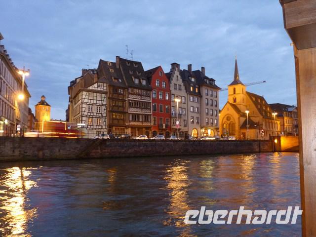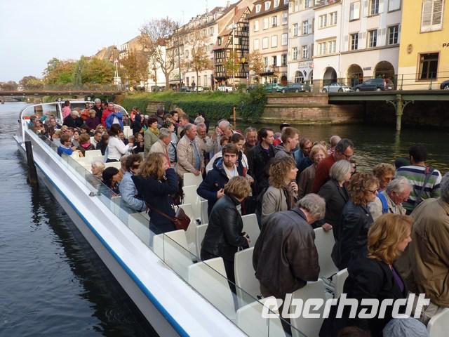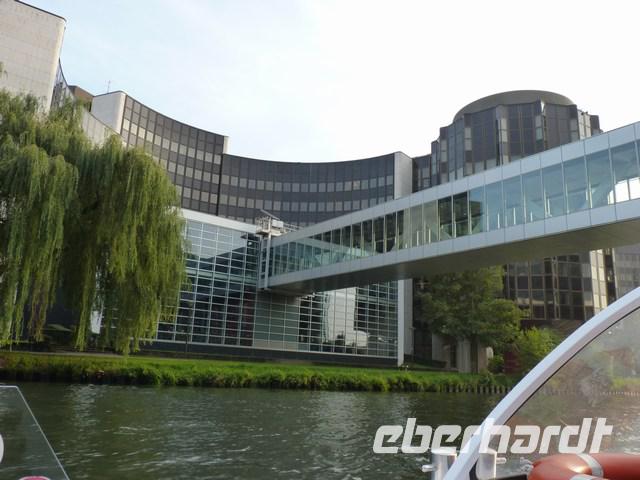diesmal zur Barrage Vauban und den alten Stadtbefestigungen und das malerische Viertel Petite France. Am erzbischöflichen Palais Rohan, unmittelbar neben dem Münster, besteigen wir ein Ausflugsboot. Ein sehr guter Kommentar erklärt noch einmal die Gebäude, die vom Wasser aus zu sehen sind. Das Boot fährt bis zu einem Becken der Ill, wo Europa-Parlament, Europarat, Europäischer Gerichtshof und Arte ihren Sitz haben, 200 Jahre nach der ersten europäischen Behörde zu Regulierung der Rheinschifffahrt. Die Stadt Strasbourg, deren Bürger in 150 Jahren viermal die Staatsangehörigkeit wechseln mussten, ist heute ein Symbol des geeinten Europas.