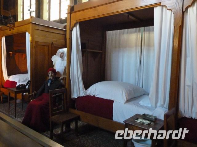 Der Vergleich der Säle der Armen und der Reichen zeigt, dass Zweiklassenmedizin nicht Erfindung der Neuzeit ist. Einer der schönsten Flügelaltäre des Abendlandes, der Weltgerichtsaltar von Roger van der Weyden, diente der Erbauung der Kranken und der Ermahnung zu wohlgefälligen Lebenswandel.