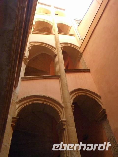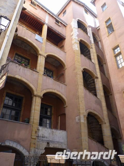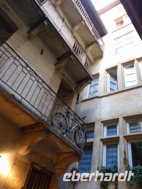 Über verwinkelte Gänge (Traboule) kann man von einer Straße zur anderen „traboulieren", wie früher als die kostbaren Seidenstoffe transportiert wurden, ohne Regen ab zubekommen.