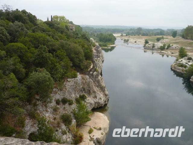Schon ca. 70 Jahre vor der Eroberung Galliens durch Julius Cäsar hatten die Römer das Gebiet des heutigen Südfrankreichs erobert und damit eine feste Landverbindung zu ihren den Puniern abgenommenen spanischen Besitzungen hergestellt. Zu ihren gewaltigen Bauten gehören neben den Arenen von Nimes und Arles und den Theatern in Orange und Arles auch eine 55 km lange Wasserleitung nach Nimes, die u.a. den Fluss Gardon überqueren musste. Die technischen Leistungen: konstantes Gefälle von 34 cm auf 1 km über die gesamte Länge und der Bau des riesigen Aquäduktes, für den Steine bis zu 6 t Gewicht 40 m hoch gehoben werden mussten, nötigen große Hochachtung vor den Baumeistern vor 2000 Jahren ab. Das Bauwerk ist 275 m lang, 49 m hoch und besteht aus 3 übereinander gebauten Brücken mit insgesamt 52 Bögen.