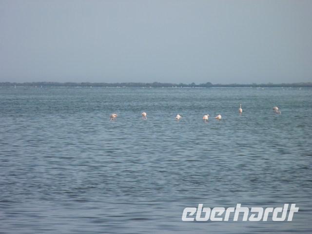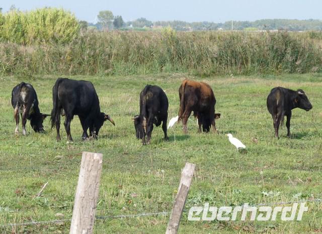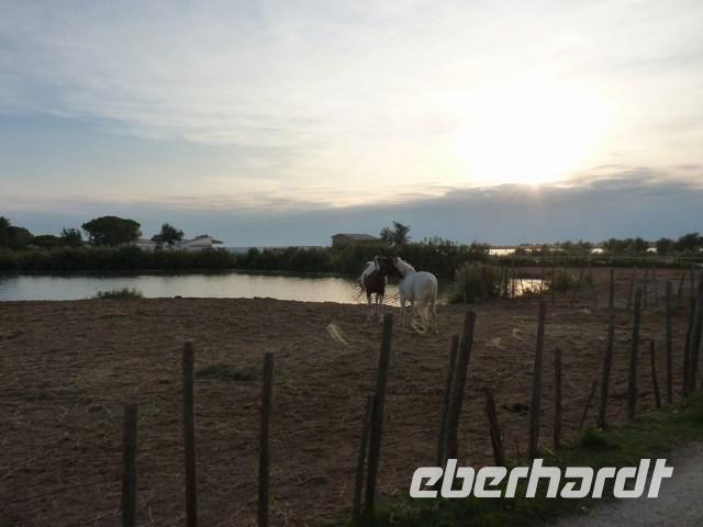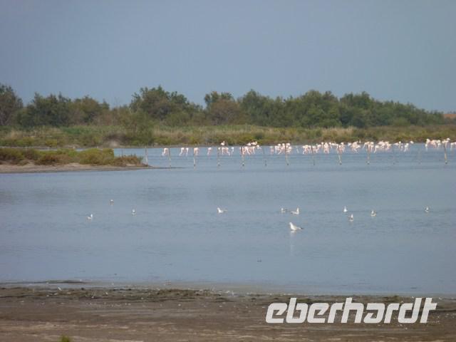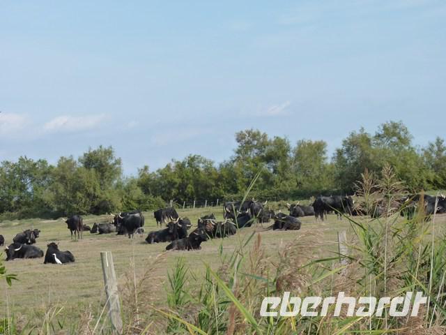 Die schwarzen Camargue-Stier, bestimmt für unblutige Wettkämpfe und auch den Kochtopf, die weißen Pferde und die unermüdlich im Wasser nach Krebstierchen fischenden rosa Flamingos sind die typischen Tiere der Camarque. Große Teile sind heute Naturschutzgebiet.
