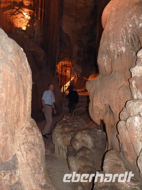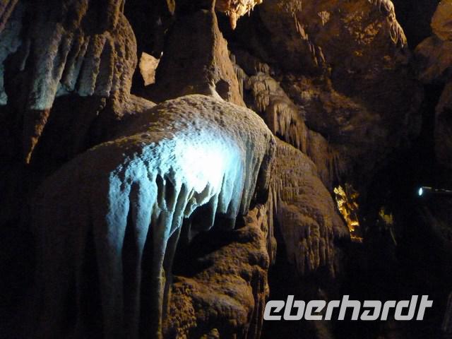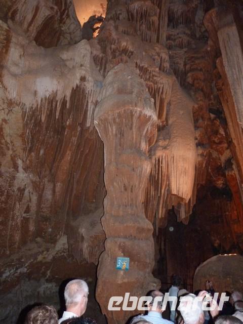 Eine andere Höhle konnte besichtigt werden, die Tropfsteinhöhle La Madeleine. Sie liegt an der ca. 30 km langen Panoramastraße, die am Rande der Ardecheschlucht gebaut wurde und von der aus immer wieder Aussichten auf die schöne Flusslandschaft der Ardeche möglich sind, die sich tief in das Kalkgestein eingefressen hat.