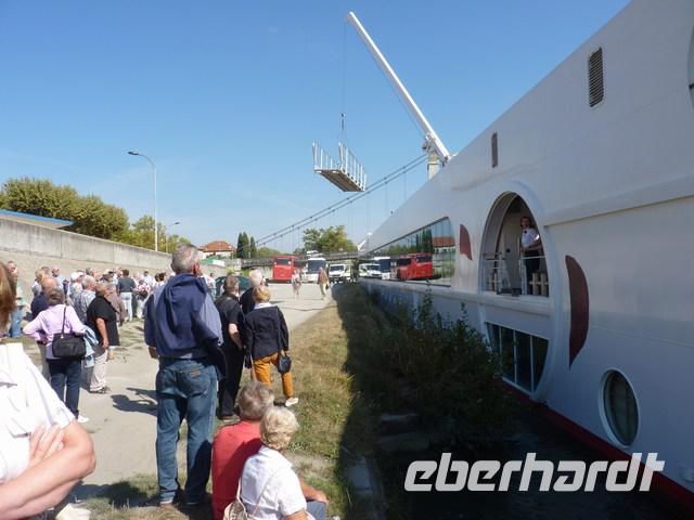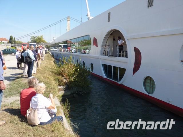 Die A Rosa wartet schon auf uns, 125 m lang, 11,4 m breit (das ist wichtig bei 11,6 m