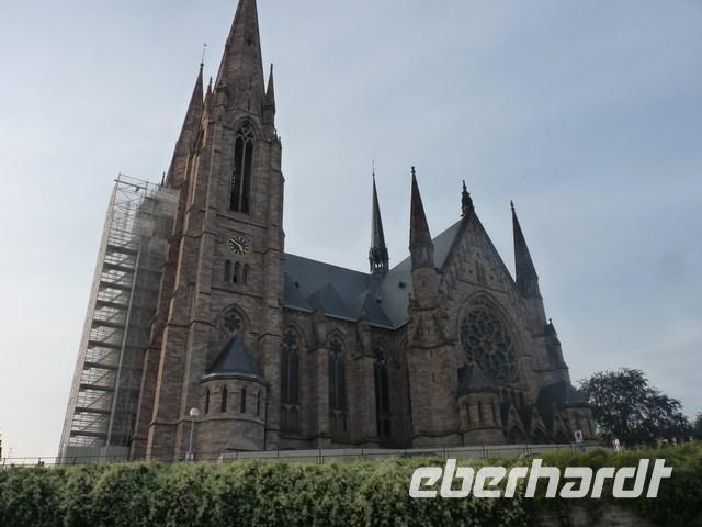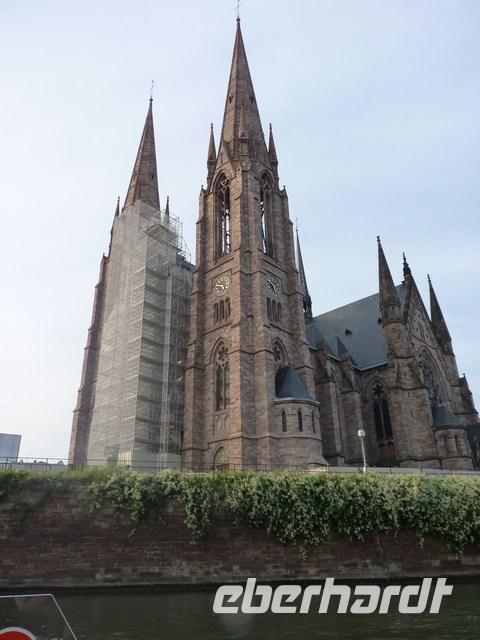 Wir kommen an den großen Platz Kléber mit dem Standbild des Generals vorbei, der Napoleons Truppen in Ägypten nach dessen Rückreise übernahm. Schnell an den Kaufhäusern vorbei geeilt, kommen wir in ein ruhigeres Viertel, aus dem sich die mächtige Münster der Protestanten erhebt.