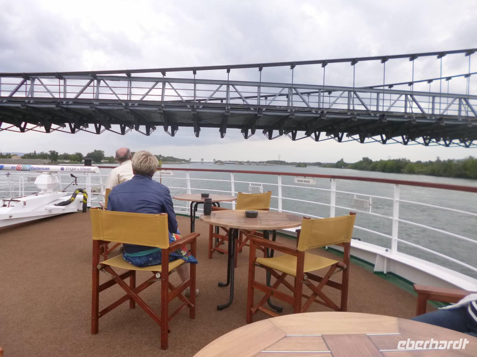An diesem Nachmittag und Abend auf der Rhône haben wir Zeit die vielseitigen Erlebnisse der vergangenen Tage zu verarbeiten. Was der Himmel bisher zurückgehalten hat, um uns die Ausflüge angenehm zu gestalten, lässt er an diesem Nachmittag auf die Erde herab. Es regnet, blitzt und donnert, was allerdings nicht weiter schlimm ist, denn wir sitzen im Trockenen.